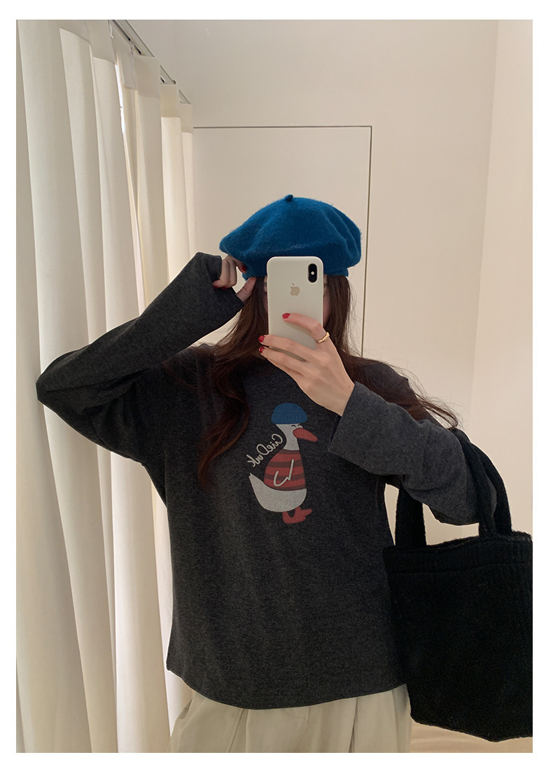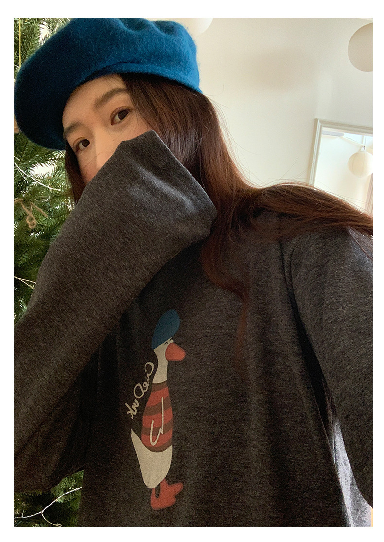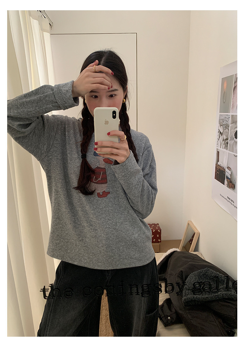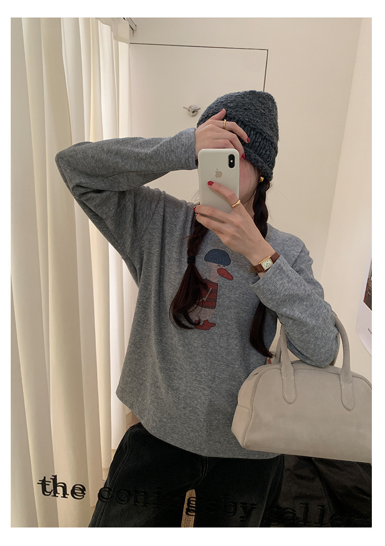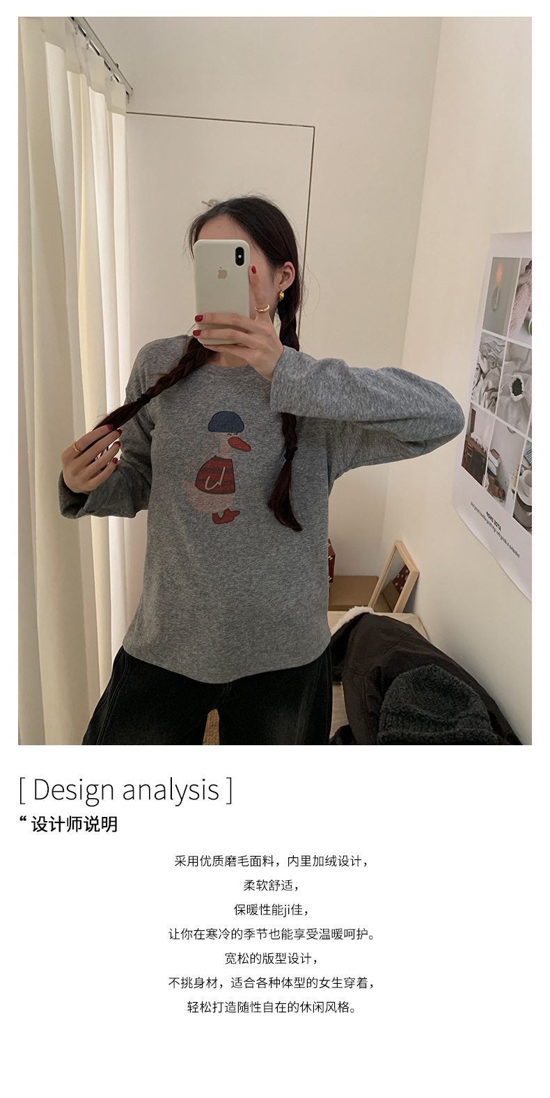 *o-ha-you*【FHZH1DC5041154】韓系磨毛加絨印花長袖T恤女冬季休閒寬鬆內搭上衣-2色