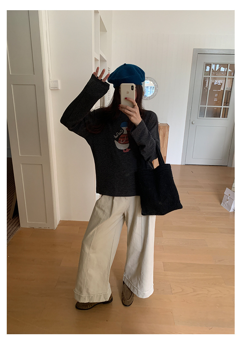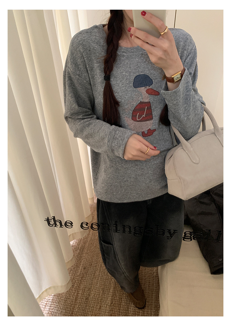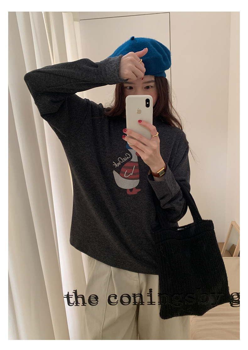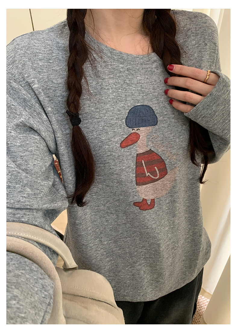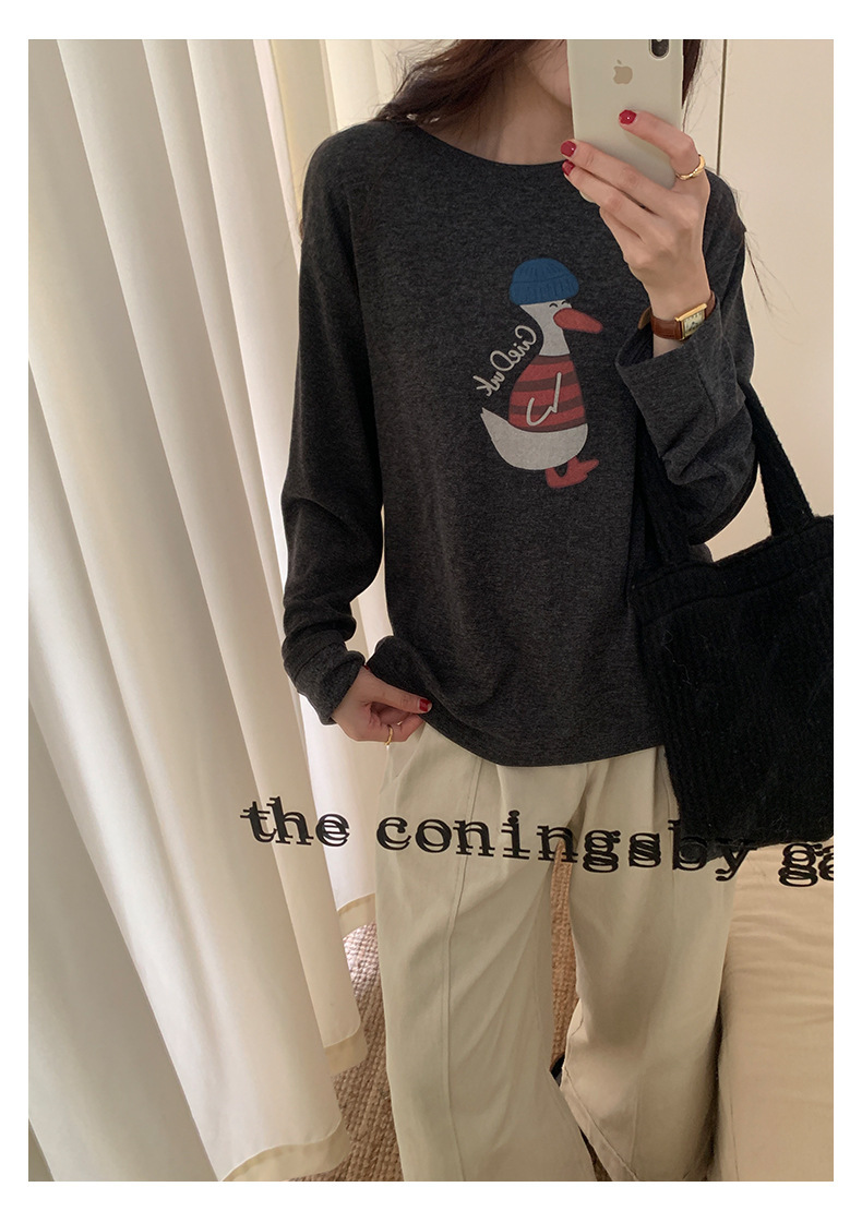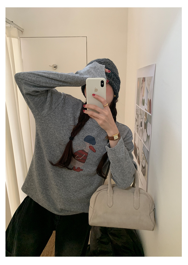 *o-ha-you*【FHZH1DC5041154】韓系磨毛加絨印花長袖T恤女冬季休閒寬鬆內搭上衣-2色