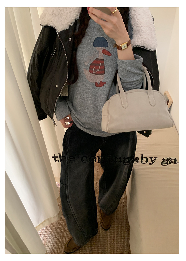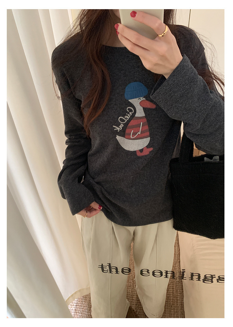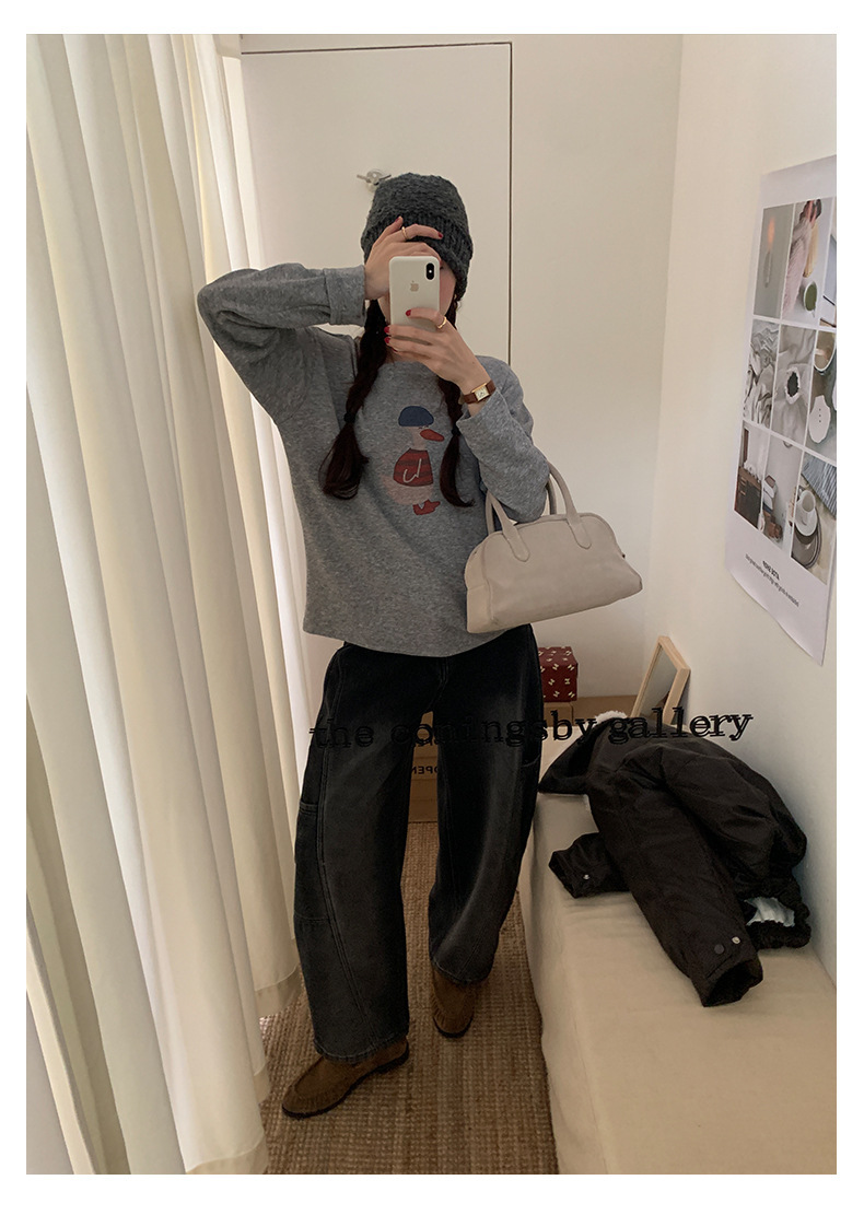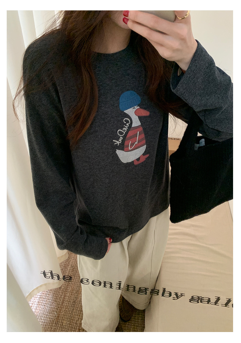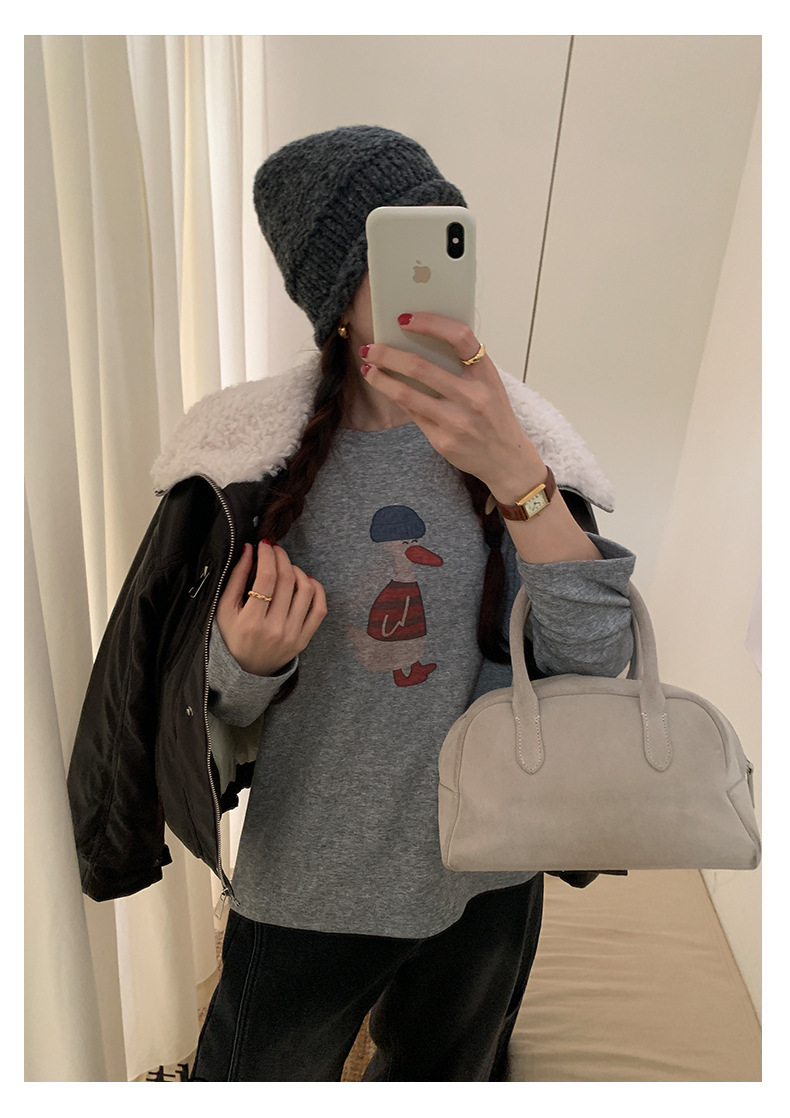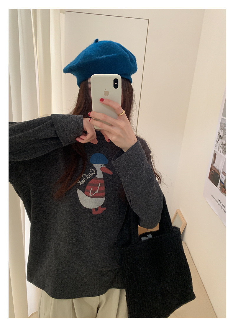 *o-ha-you*【FHZH1DC5041154】韓系磨毛加絨印花長袖T恤女冬季休閒寬鬆內搭上衣-2色
