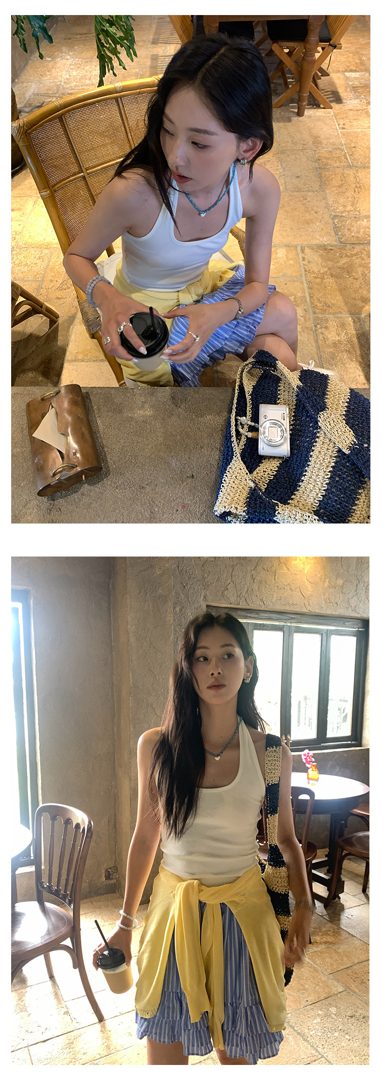 *o-ha-you*【FHZH1DD5020452】修身顯瘦掛脖羅紋無袖背心2025夏簡約時尚性感百搭-4色-如有需要請先諮詢
