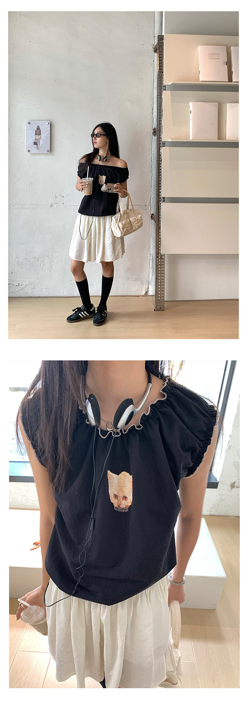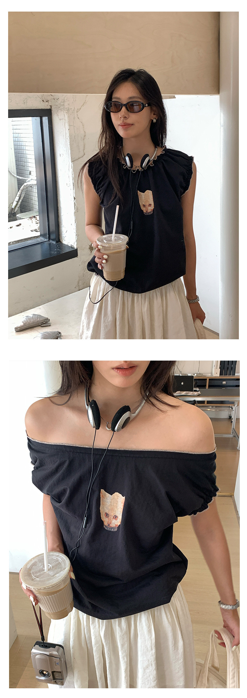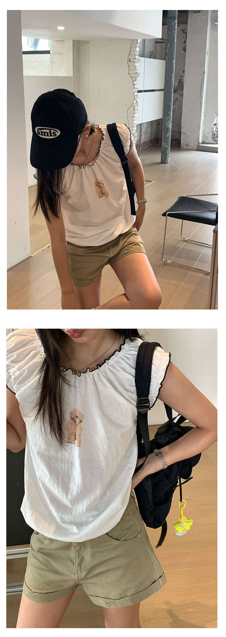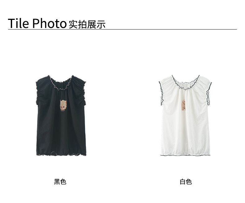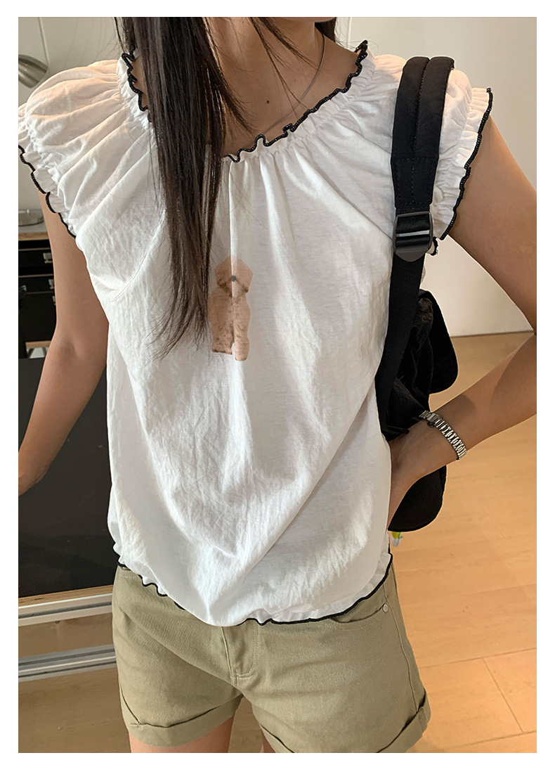*o-ha-you*【FHZH1DD5020681】韓版巨好看穿搭可愛甜美花邊寬鬆無袖短上衣印花背心-2色