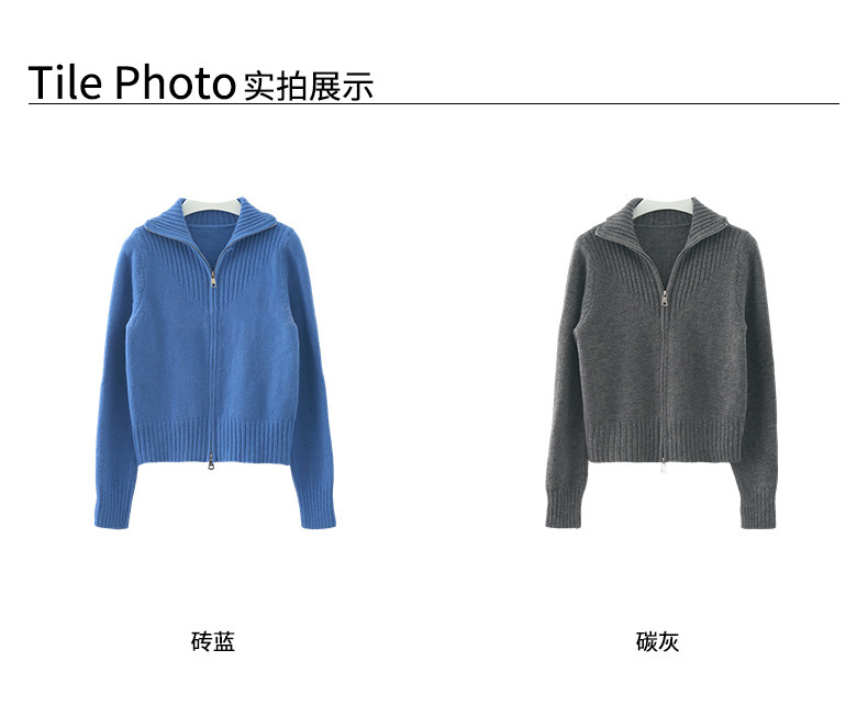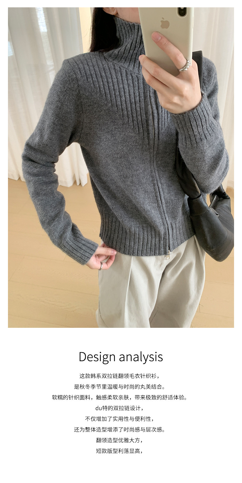 *o-ha-you*【FHZH1EA5041040】韓系雙拉鍊翻領毛衣針織衫女秋冬軟糯休閒外搭短版外套-2色