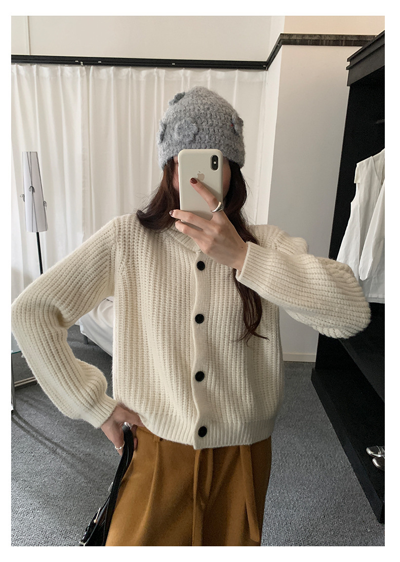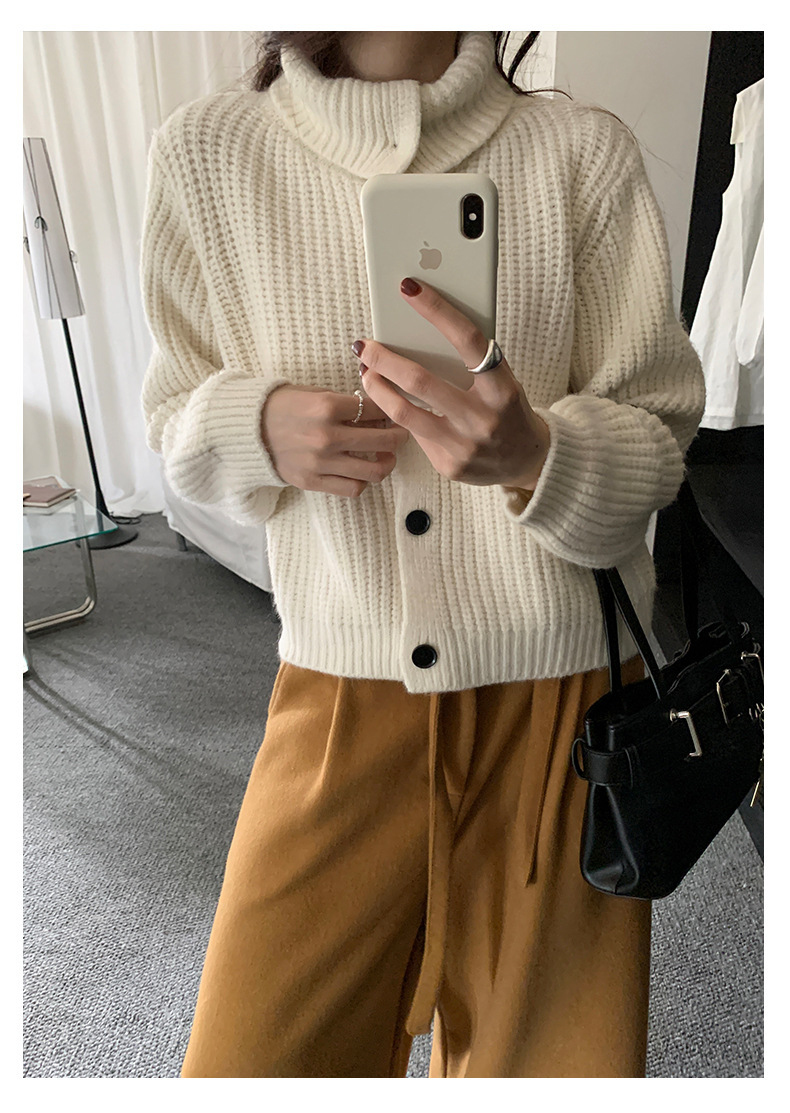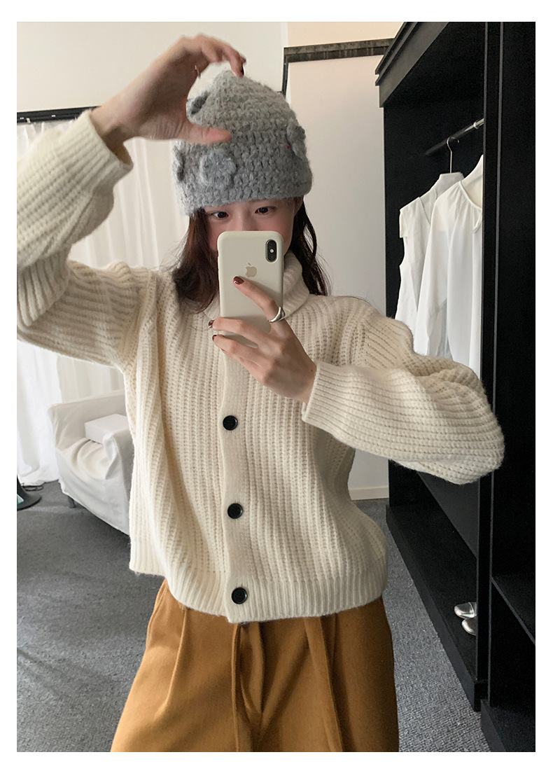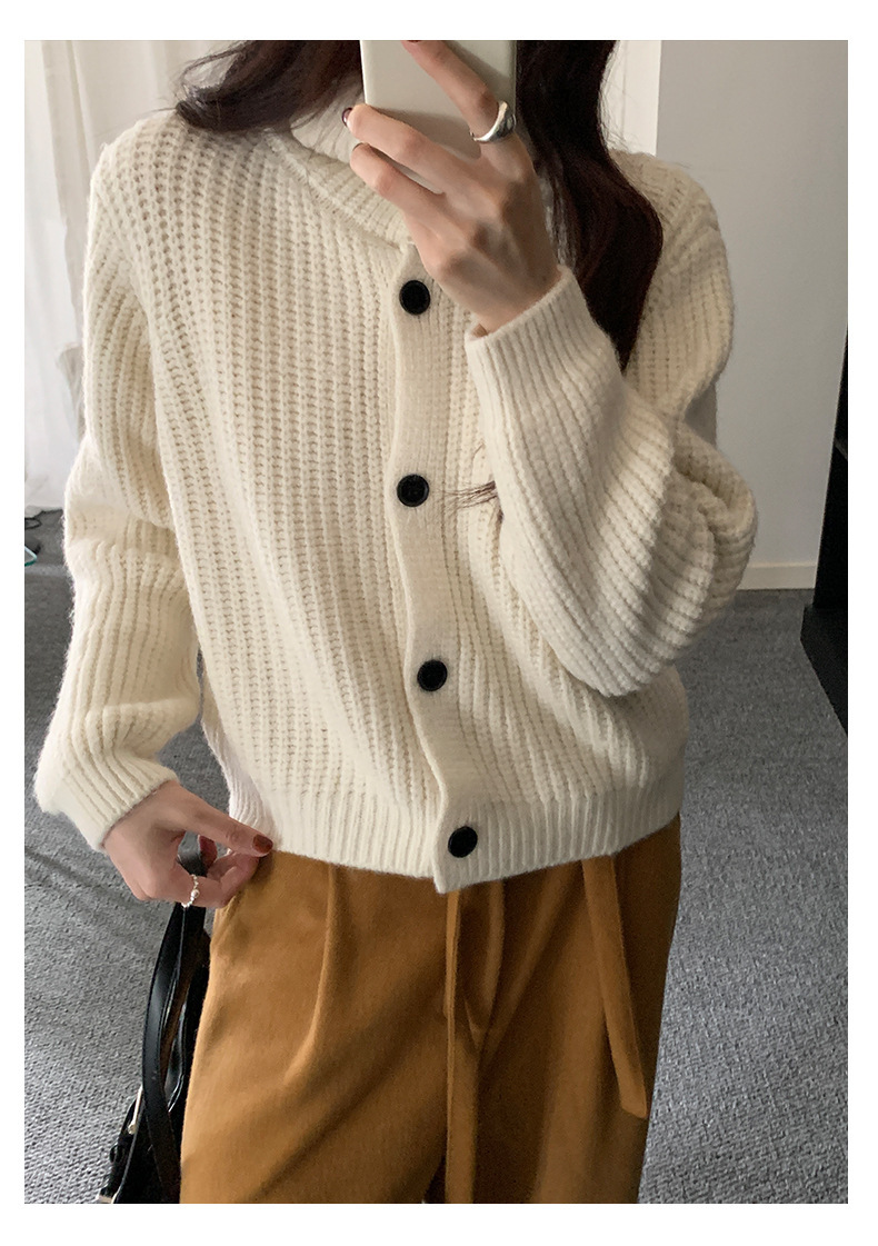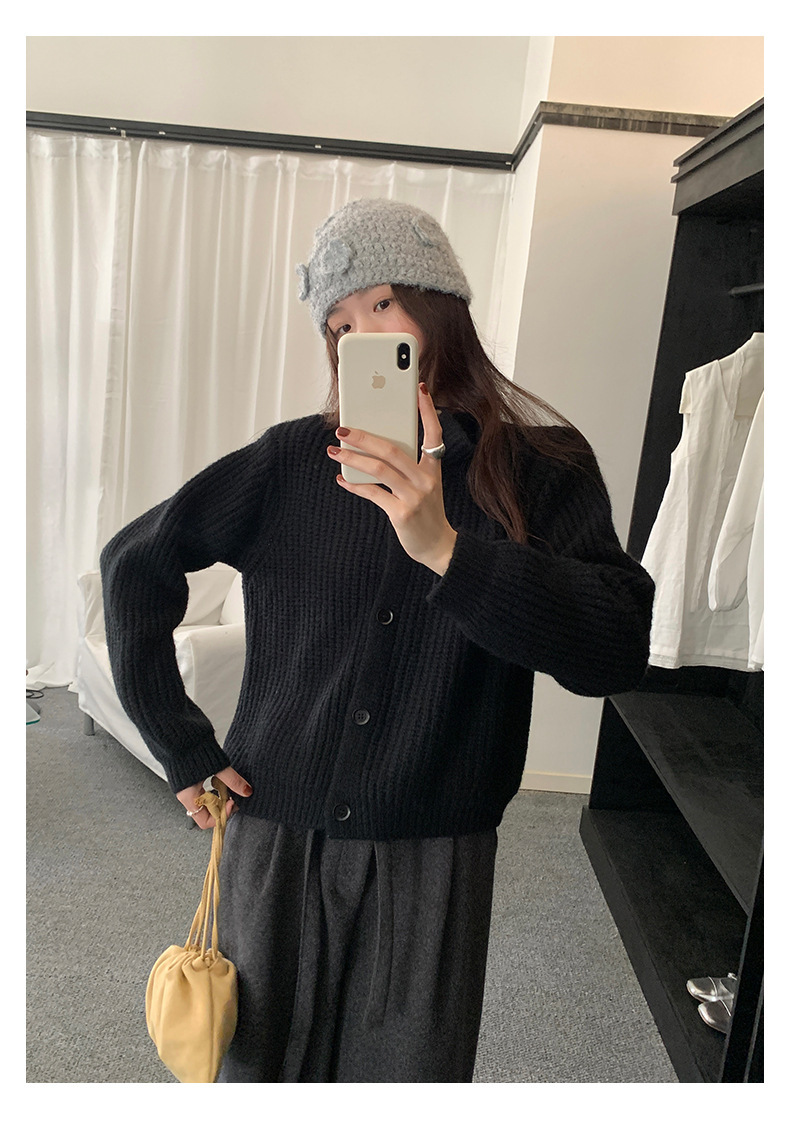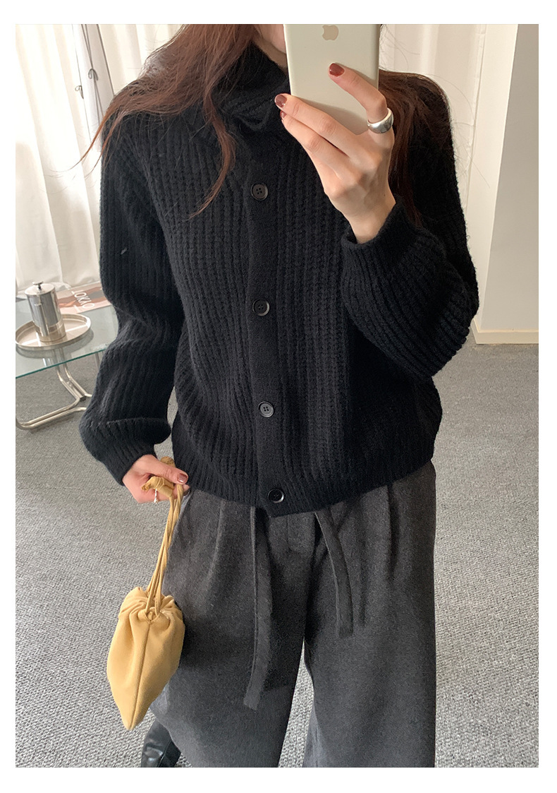 *o-ha-you*【FHZH1EA5041071】老錢風慵懶立領加厚毛針織開襟衫女秋冬寬鬆休閒毛衣外套-2色