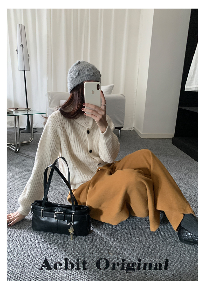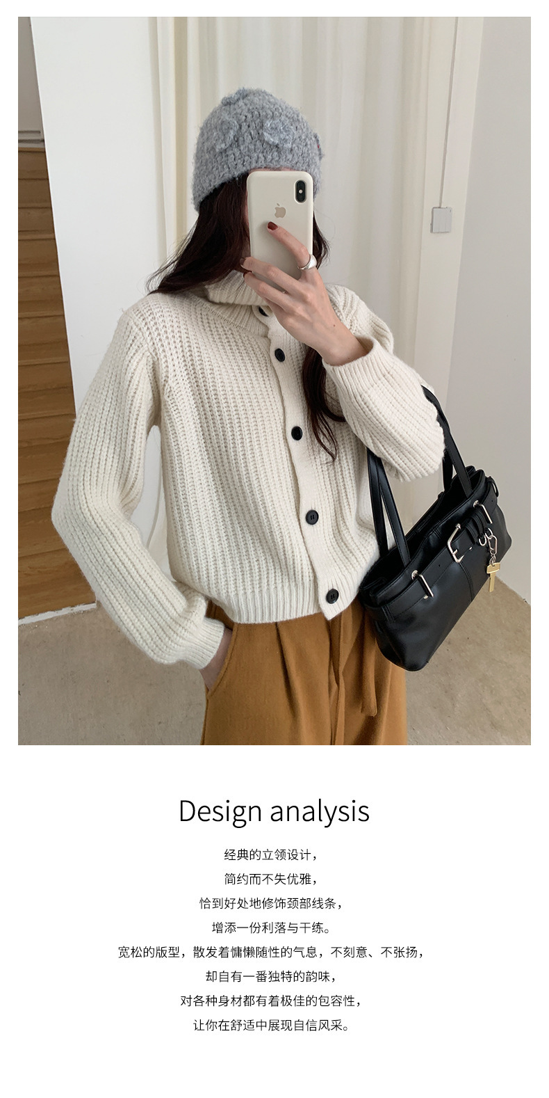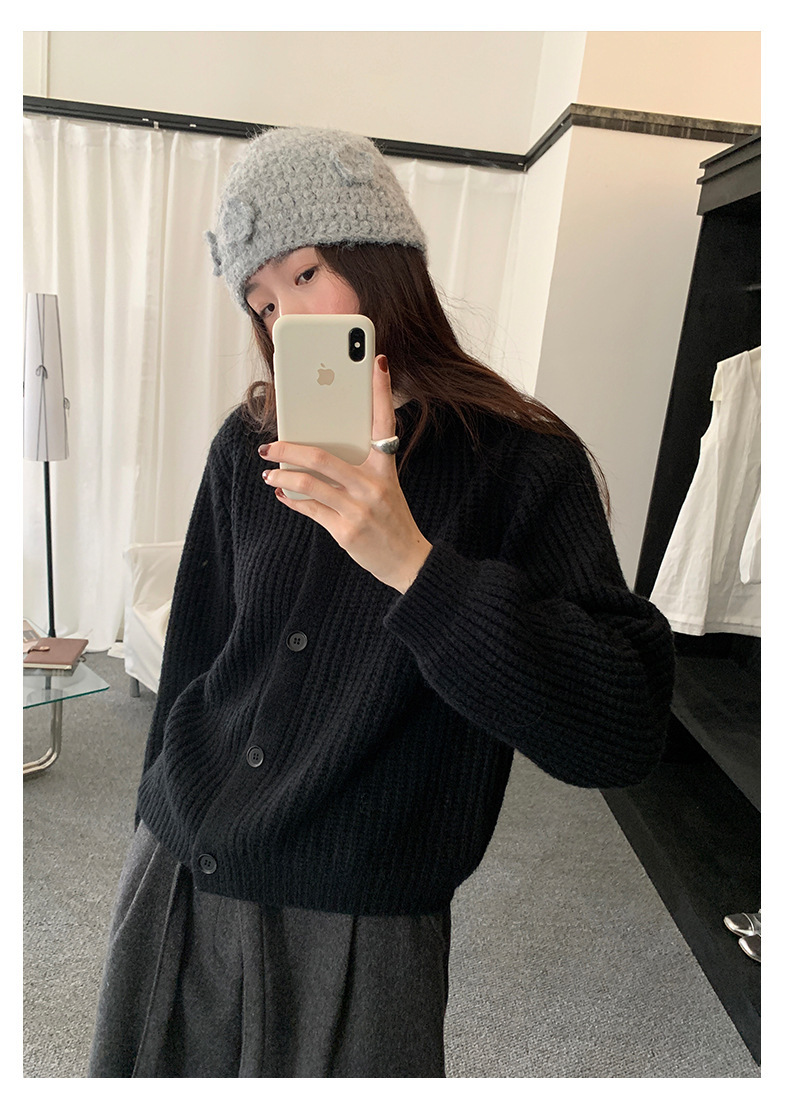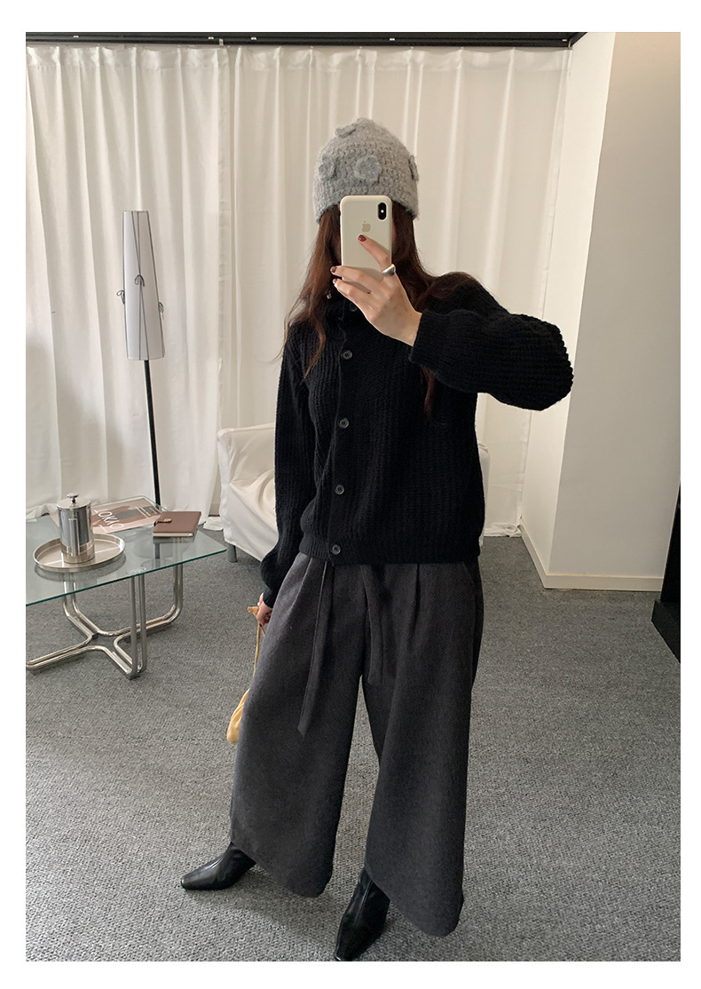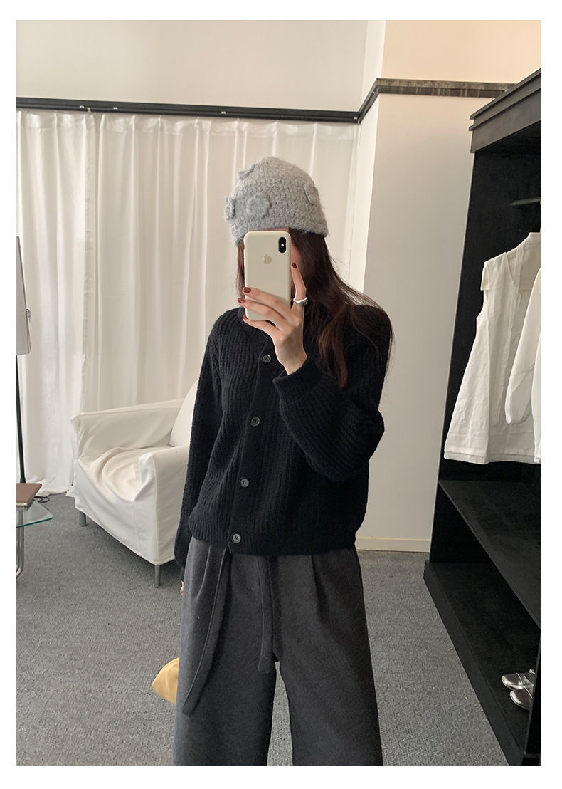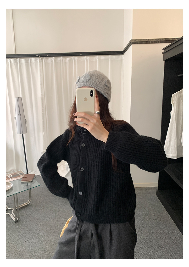 *o-ha-you*【FHZH1EA5041071】老錢風慵懶立領加厚毛針織開襟衫女秋冬寬鬆休閒毛衣外套-2色