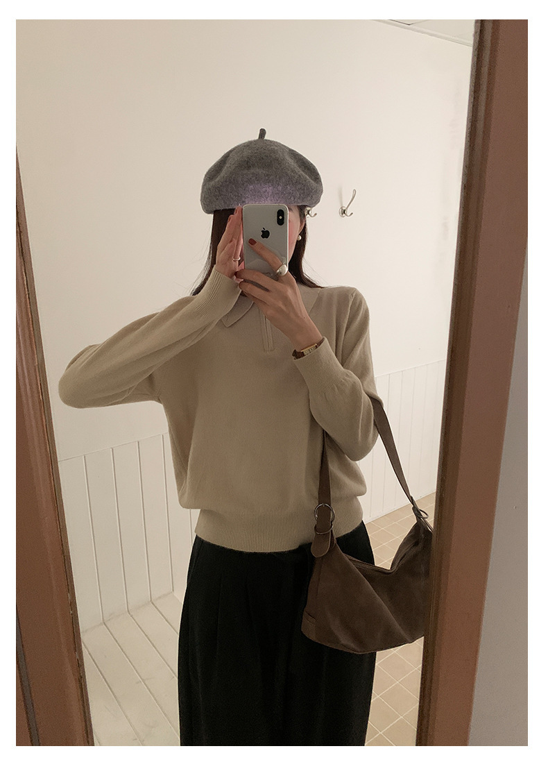 *o-ha-you*【FHZH1EB5041053】溫柔甜美POLO領毛針織衫女25年冬季新款氣質顯瘦長袖上衣-2色