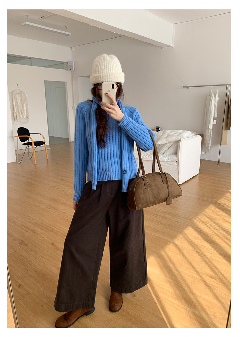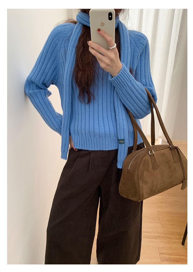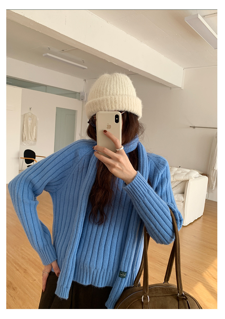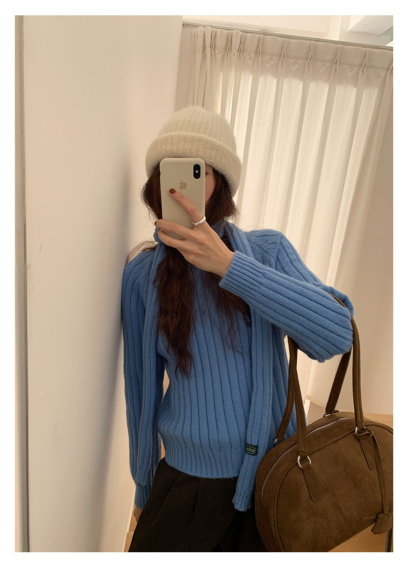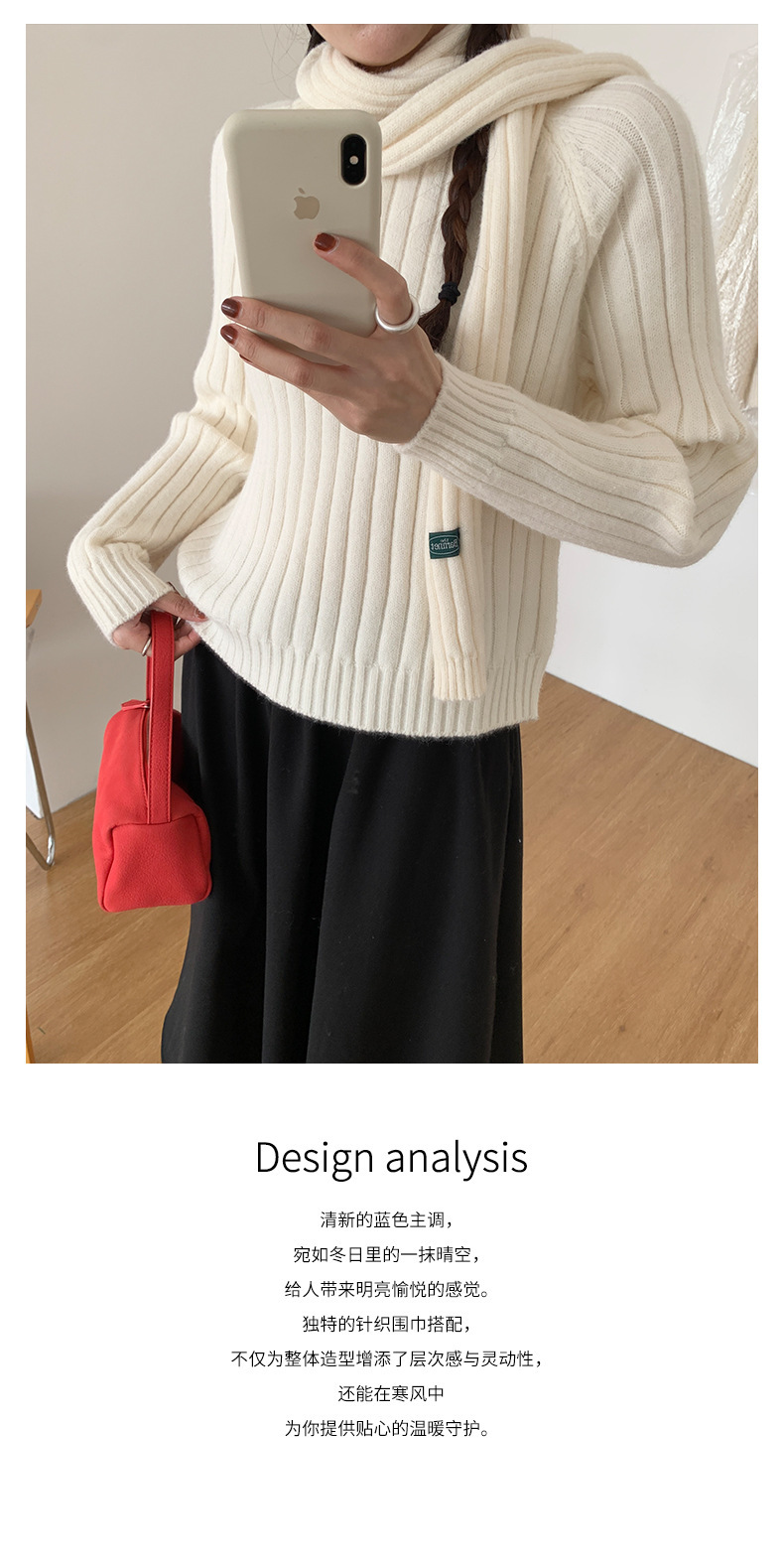 *o-ha-you*【FHZH1EB5041089】韓系圓領套頭毛衣女25秋冬保暖顯瘦針織圍巾兩件套上衣-2色