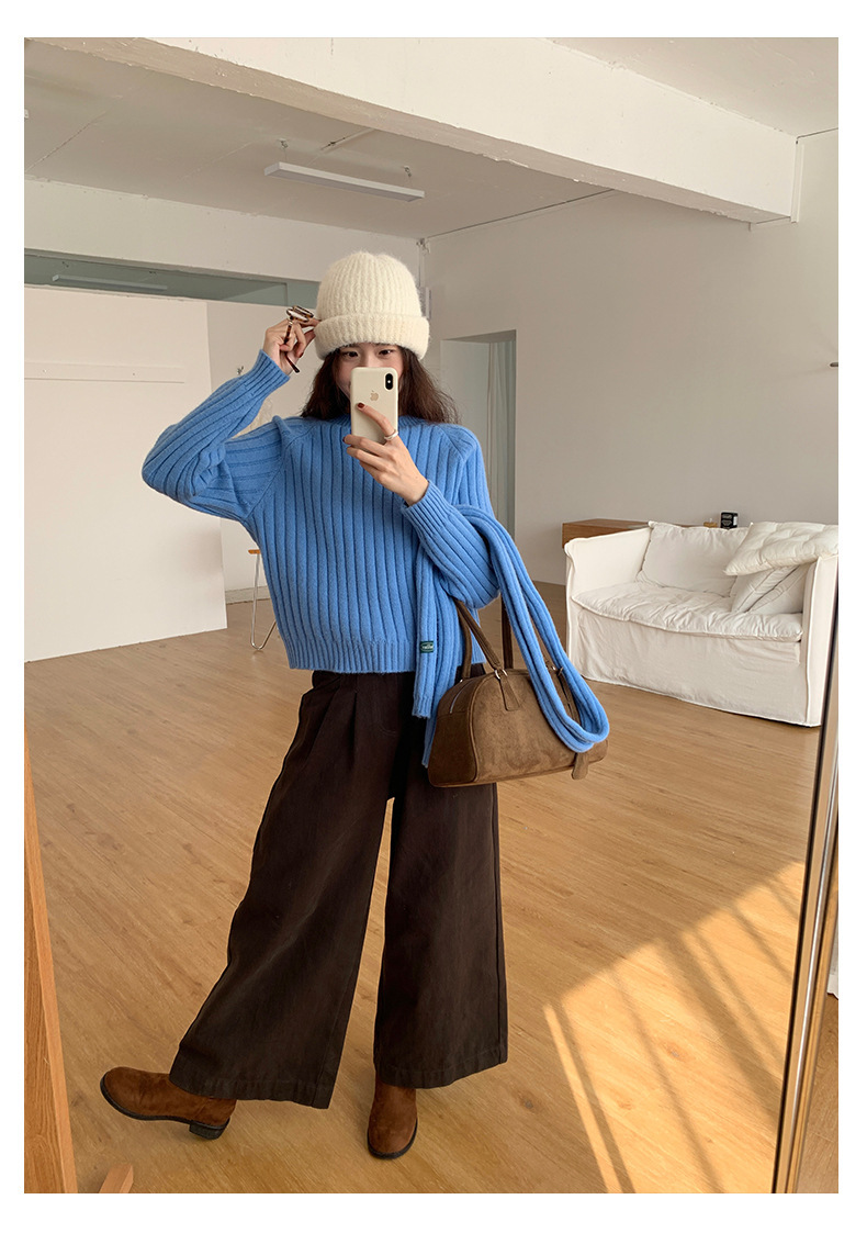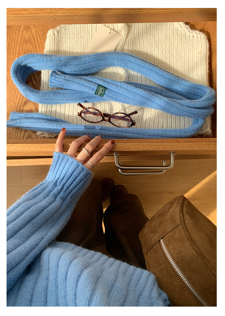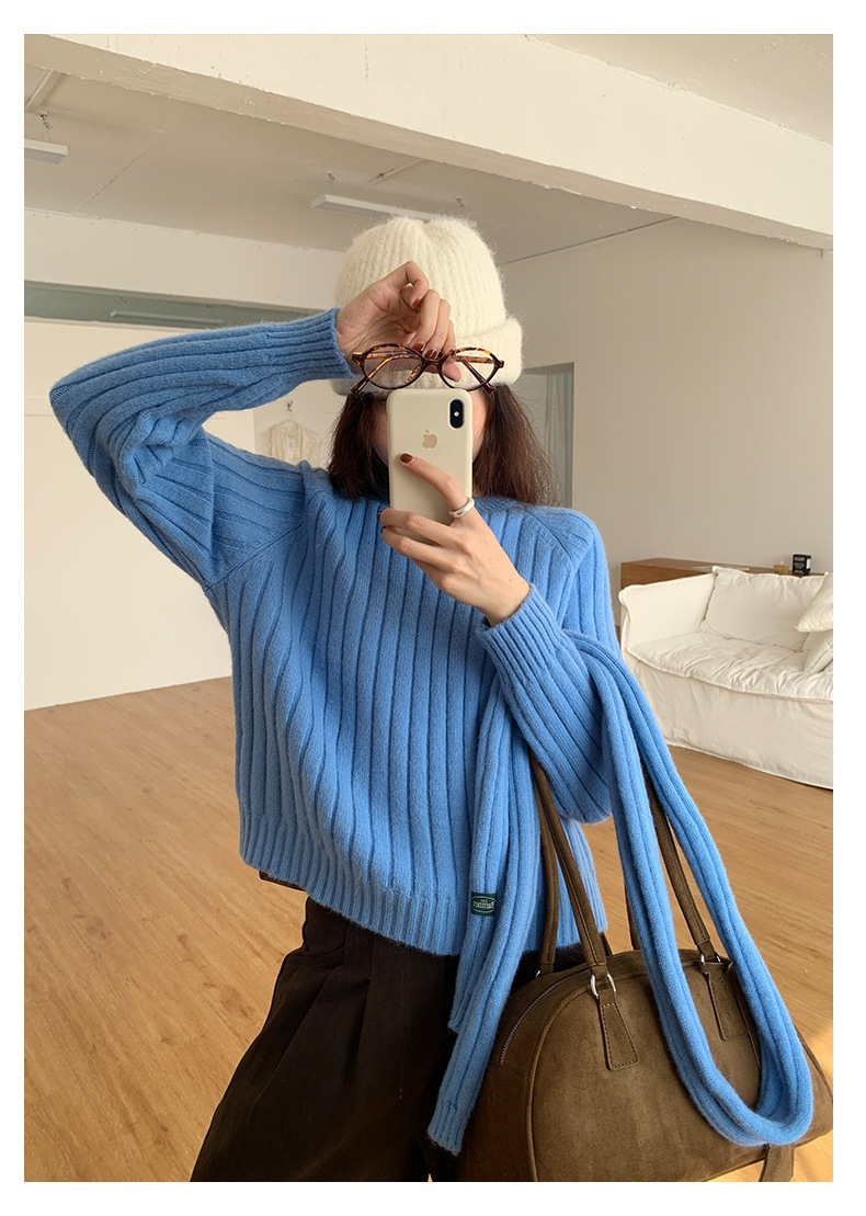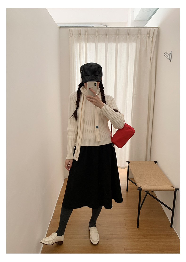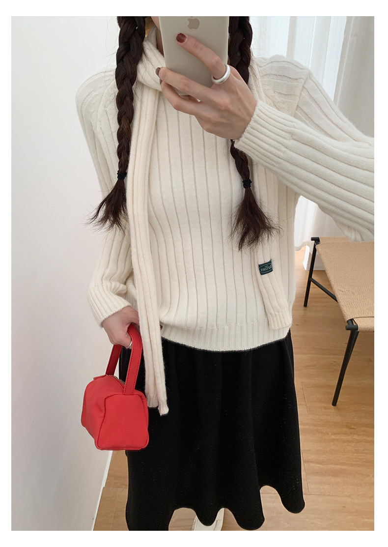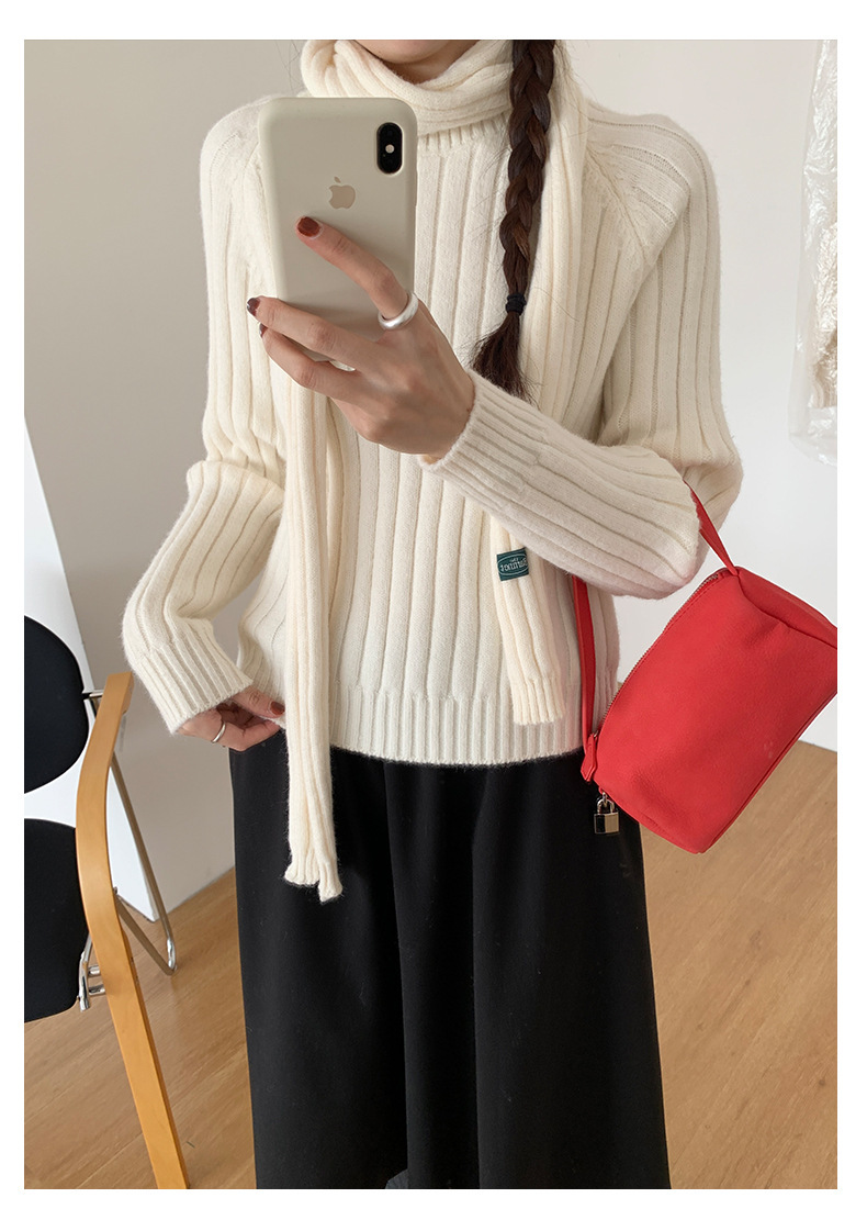 *o-ha-you*【FHZH1EB5041089】韓系圓領套頭毛衣女25秋冬保暖顯瘦針織圍巾兩件套上衣-2色