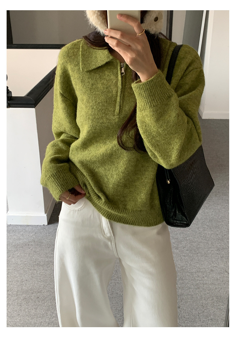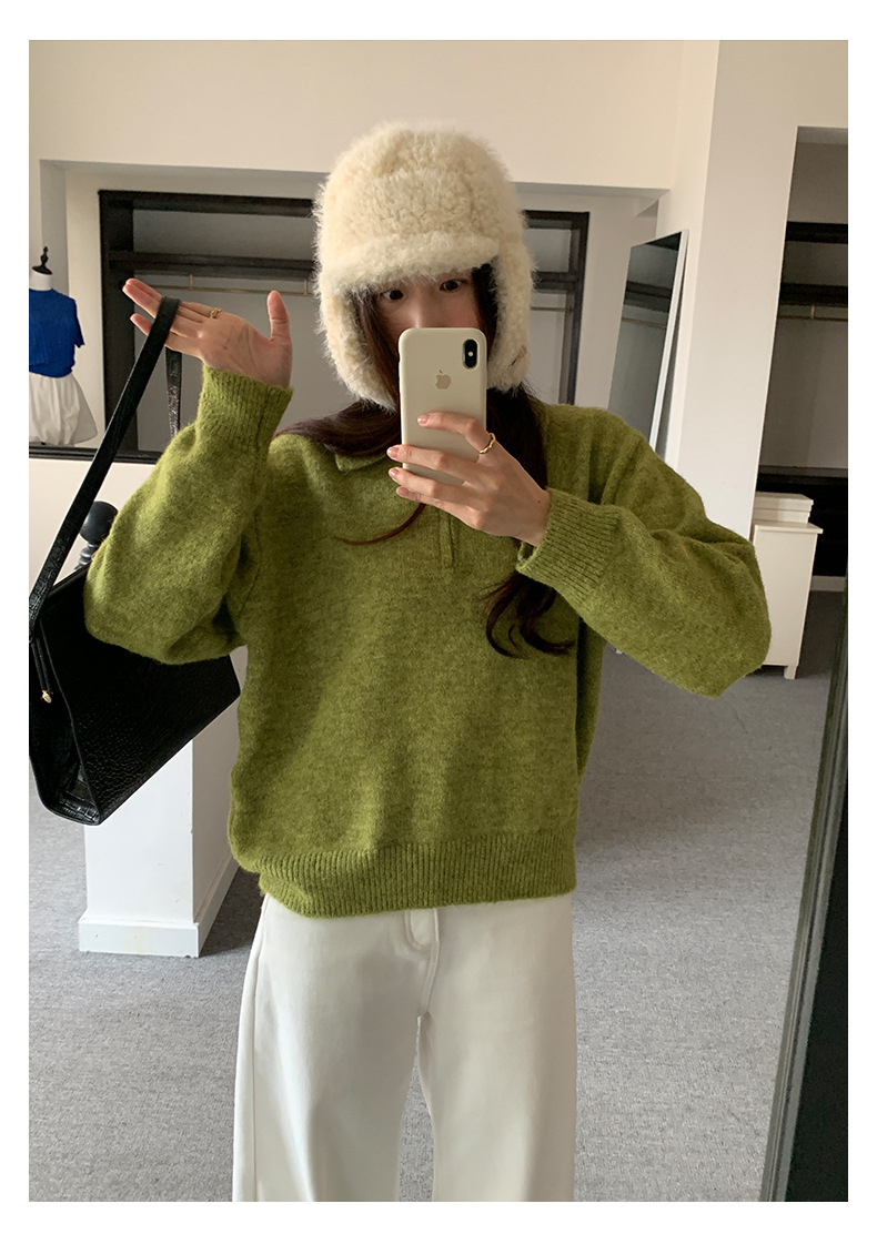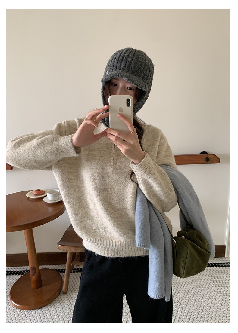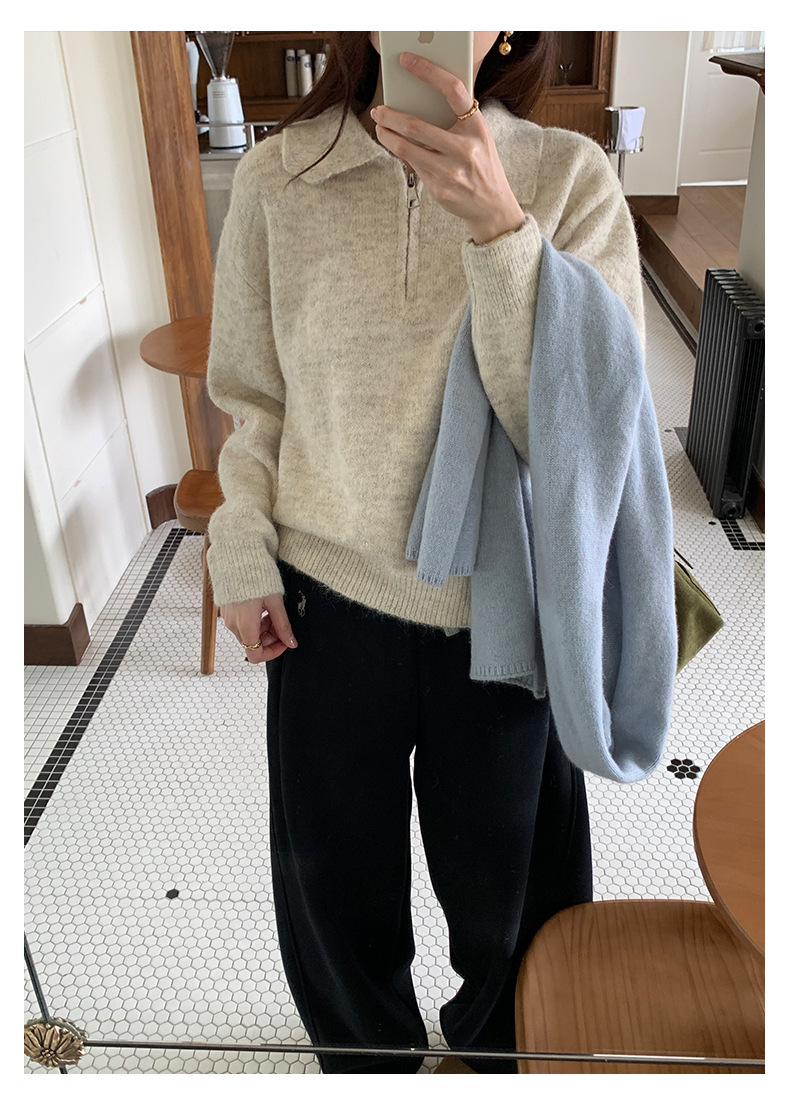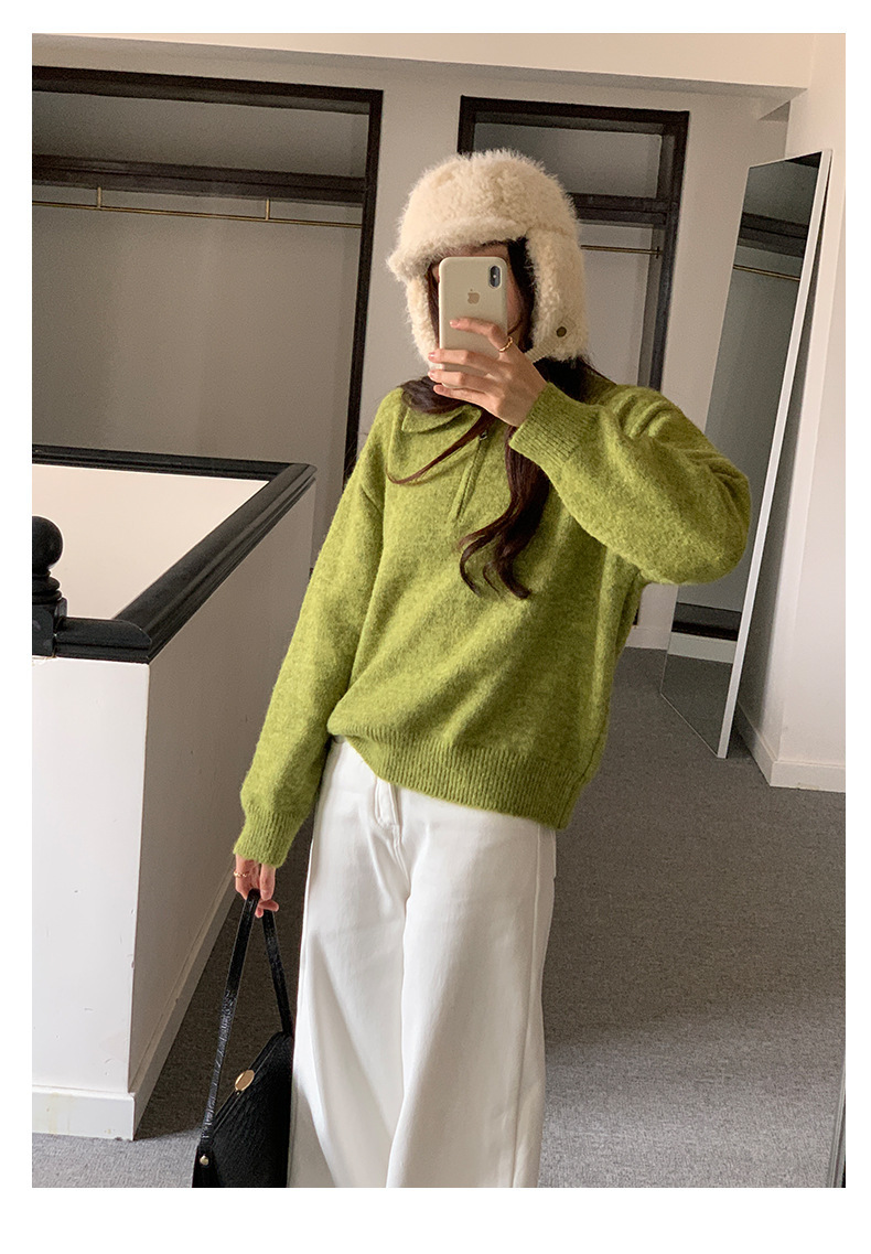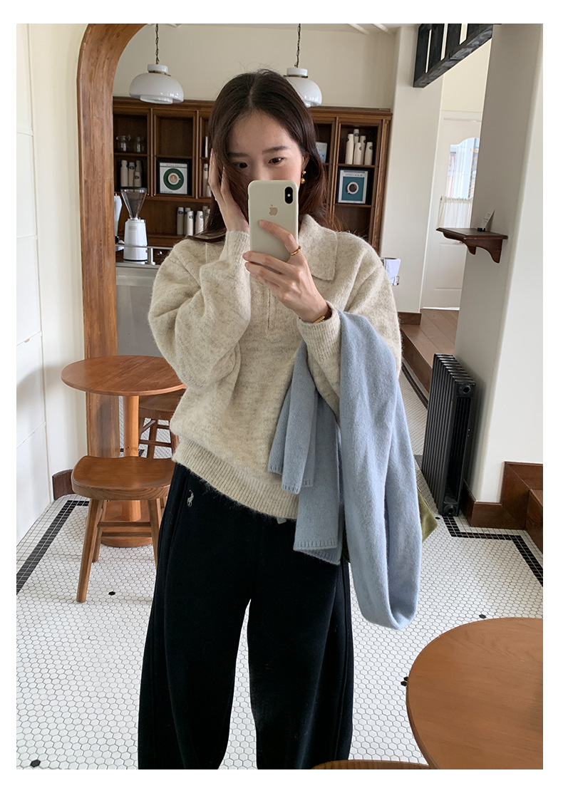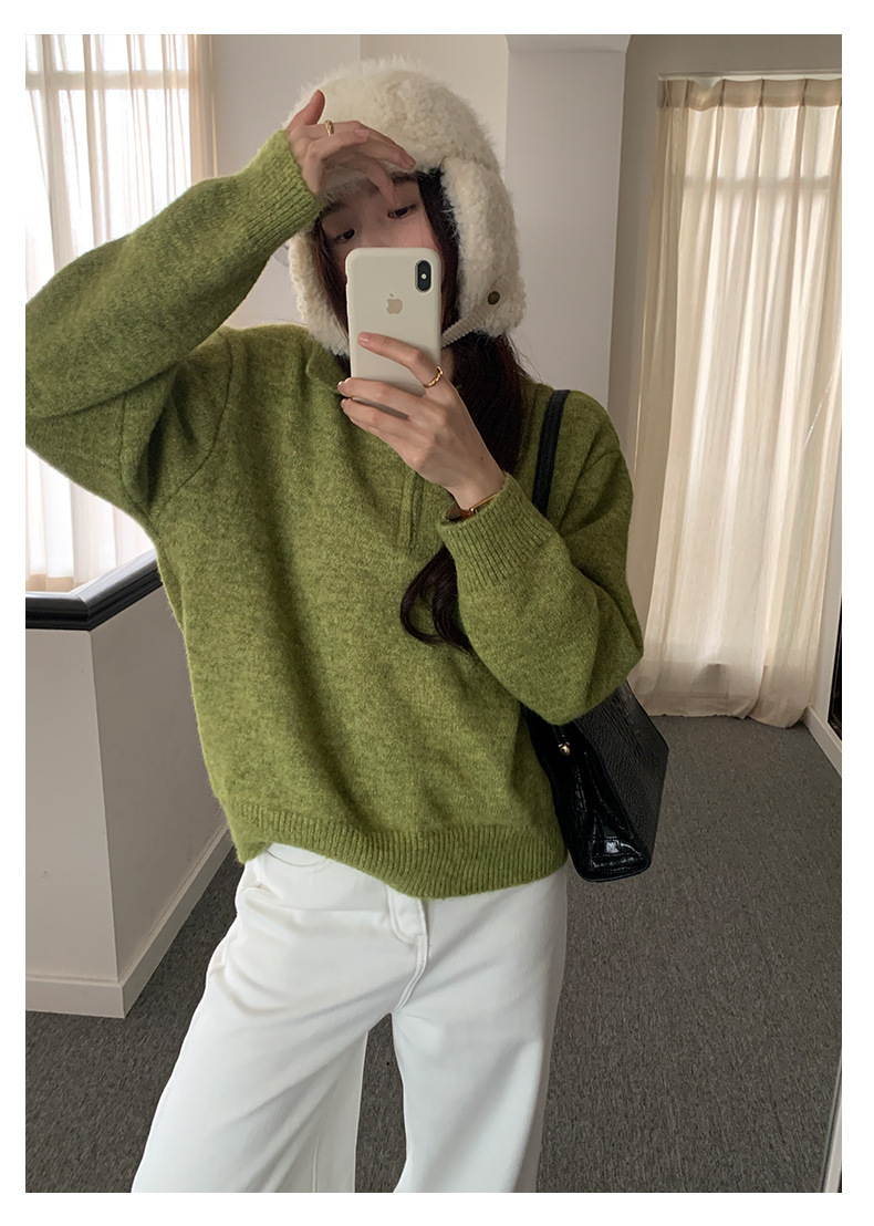 *o-ha-you*【FHZH1EB5041103】半開襟POLO領長袖套頭毛衣女25冬季休閒百搭針織衫上衣-2色