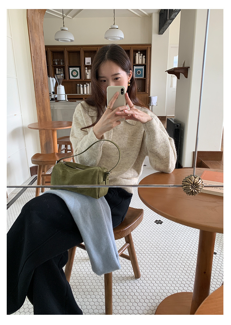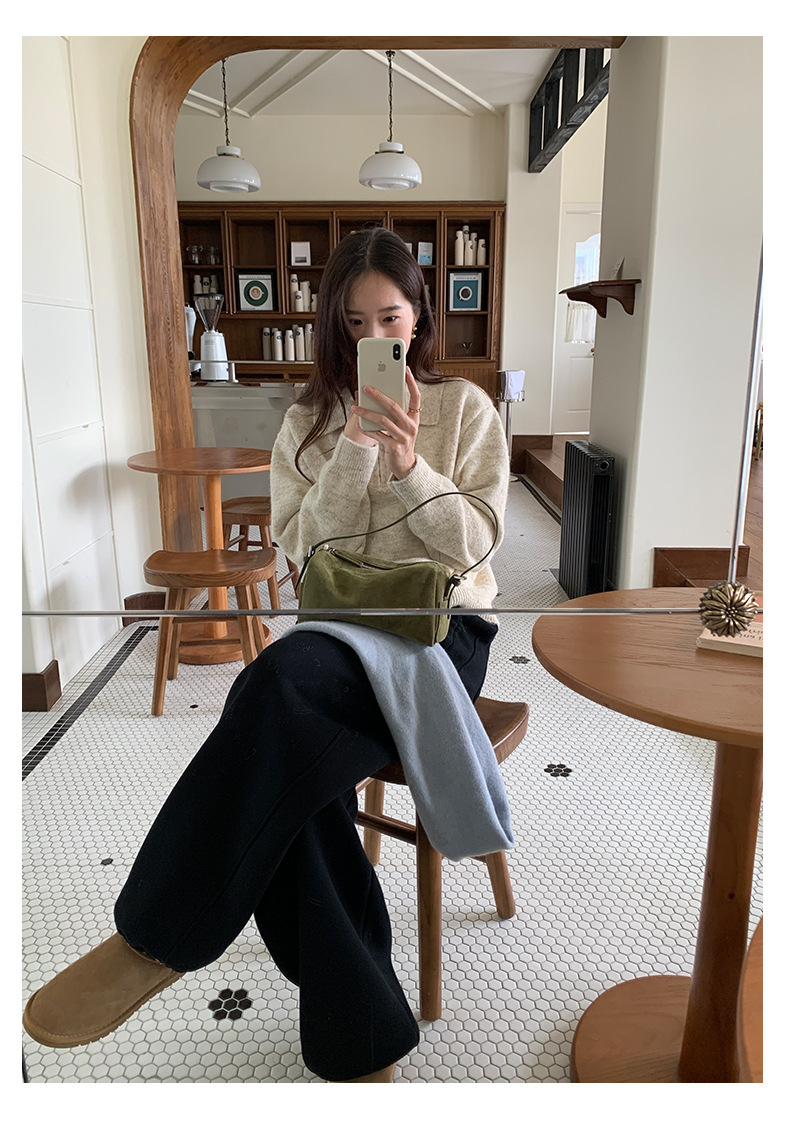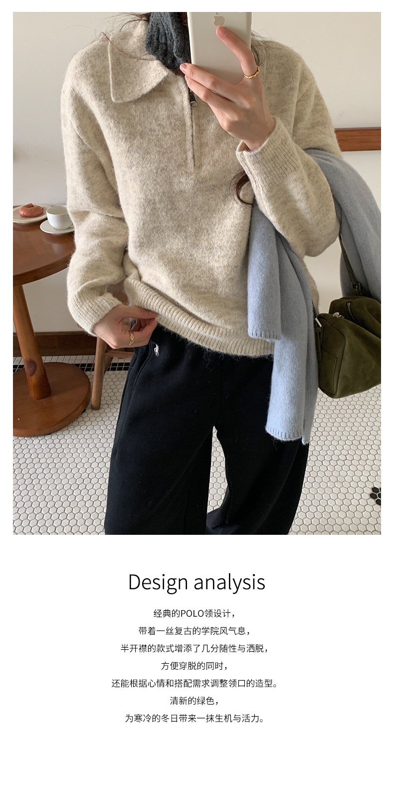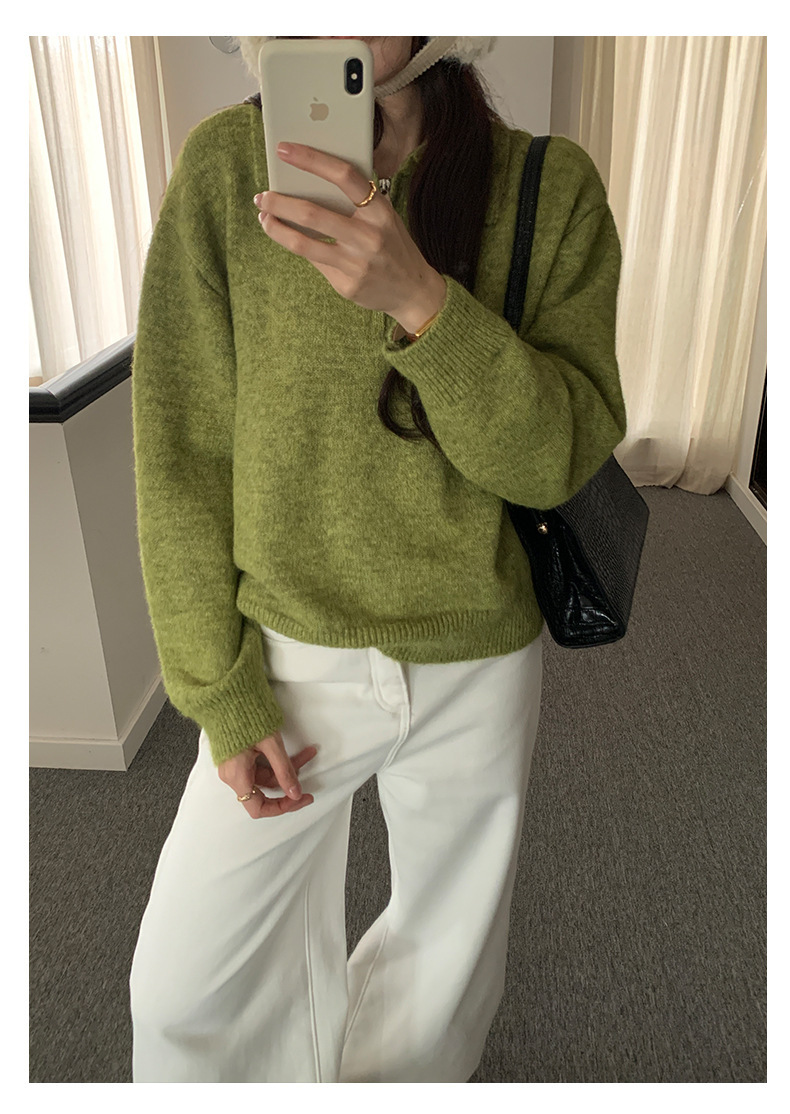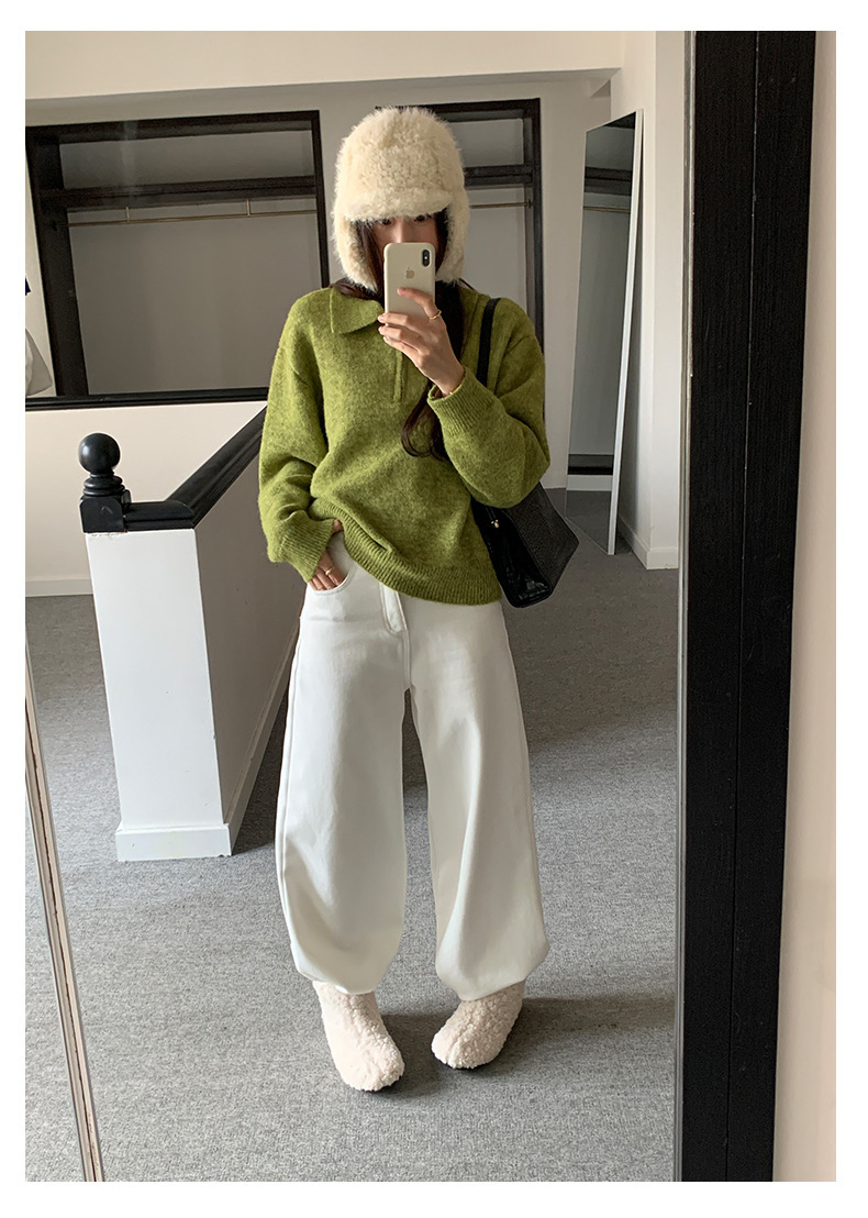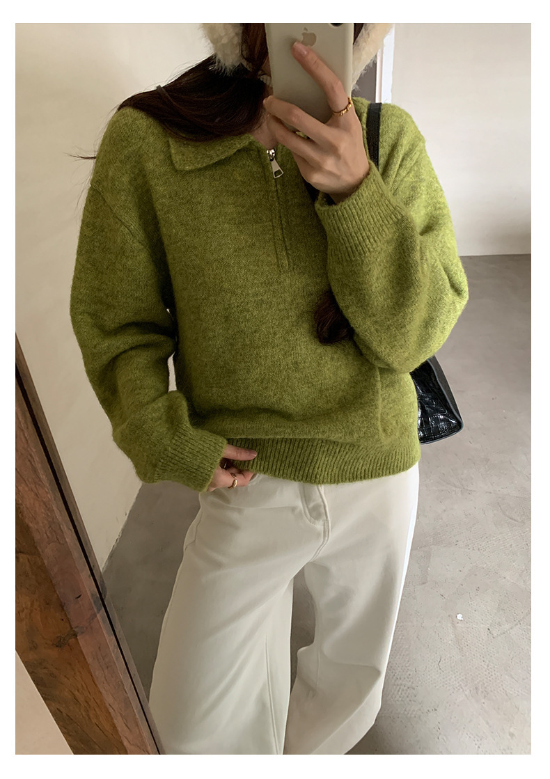 *o-ha-you*【FHZH1EB5041103】半開襟POLO領長袖套頭毛衣女25冬季休閒百搭針織衫上衣-2色