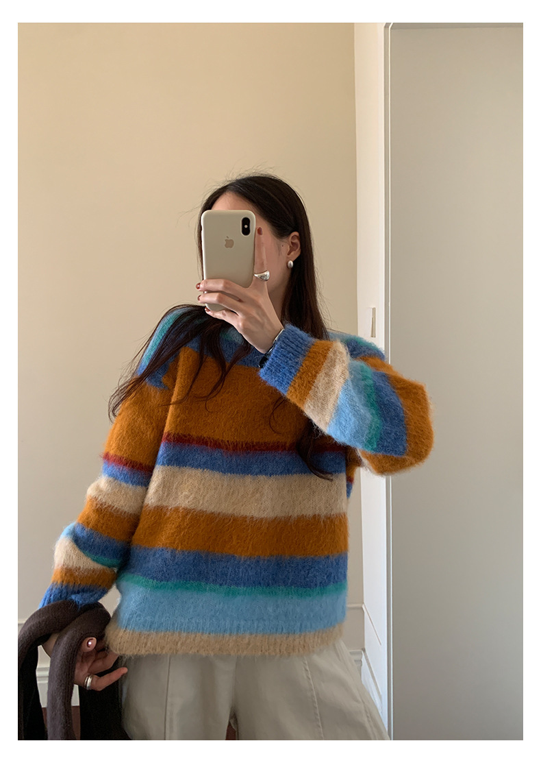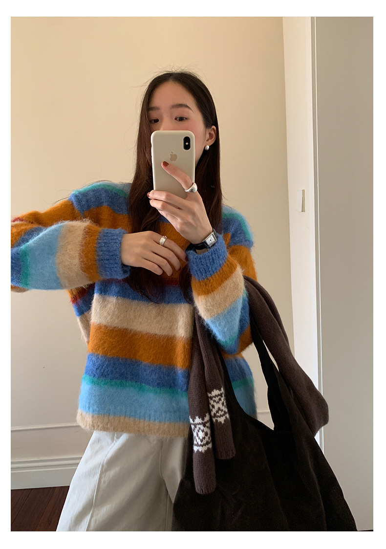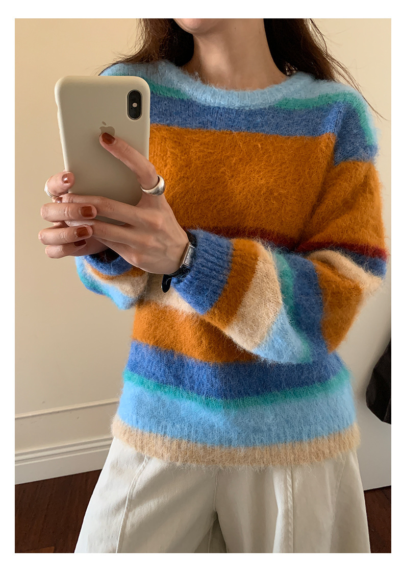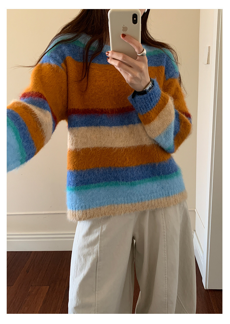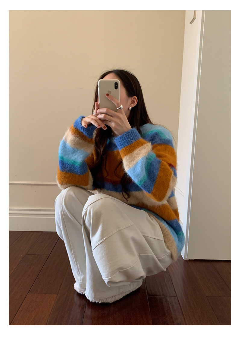*o-ha-you*【FHZH1EB5041120】多巴胺圓領彩色毛衣女25冬季韓版軟糯寬鬆長袖針織上衣