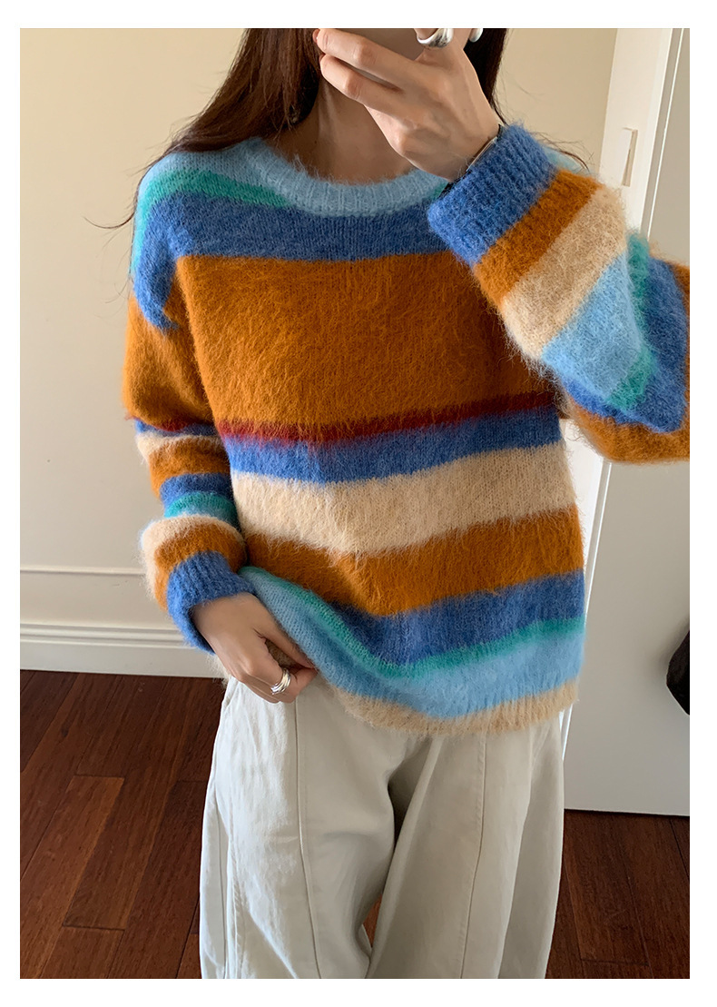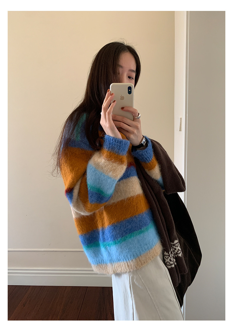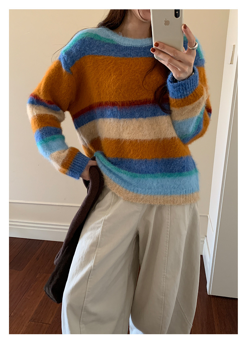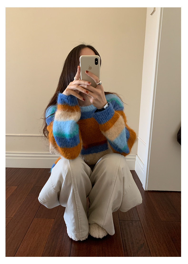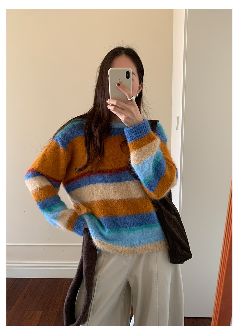 *o-ha-you*【FHZH1EB5041120】多巴胺圓領彩色毛衣女25冬季韓版軟糯寬鬆長袖針織上衣