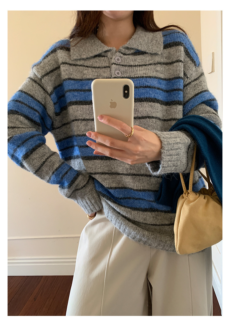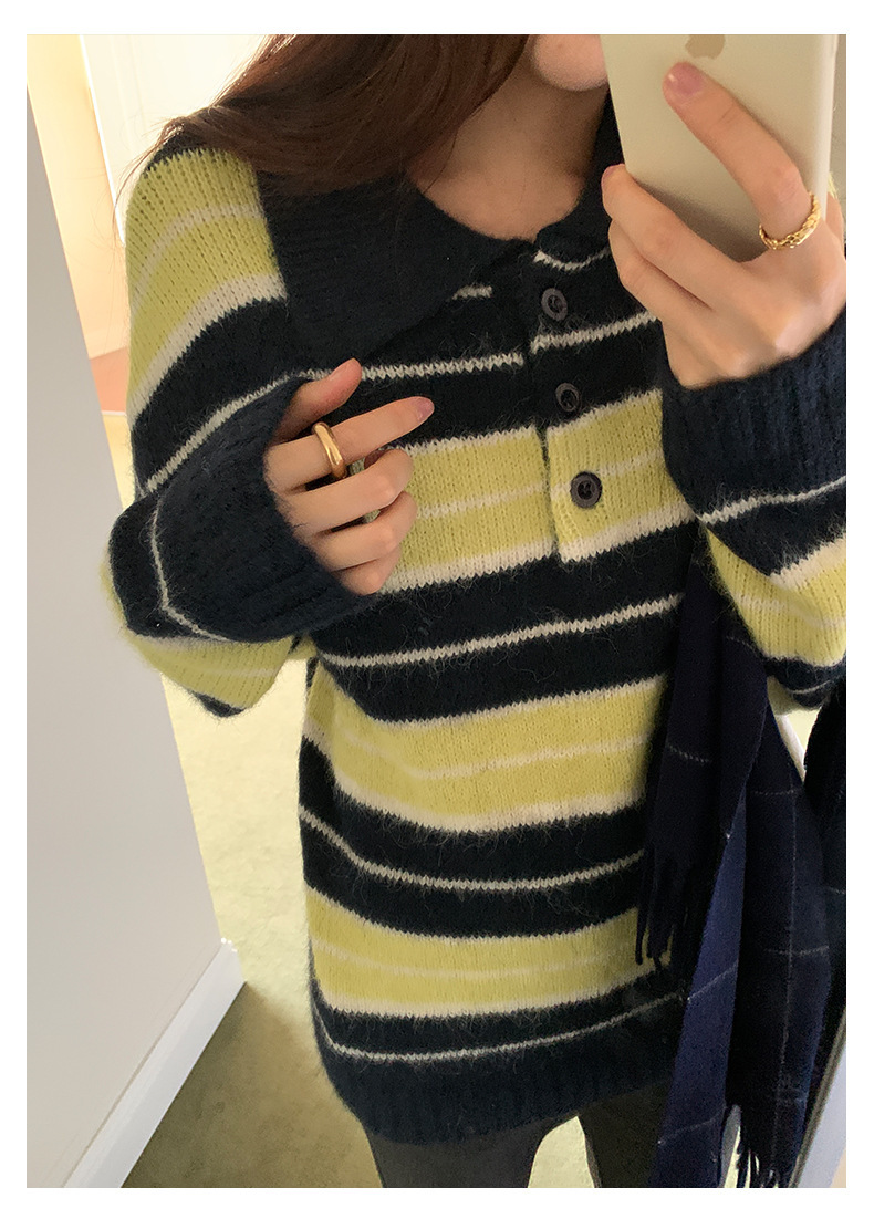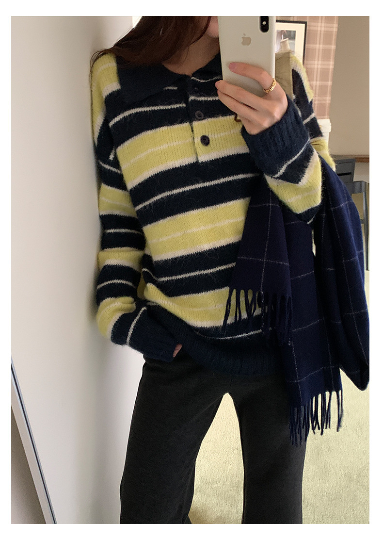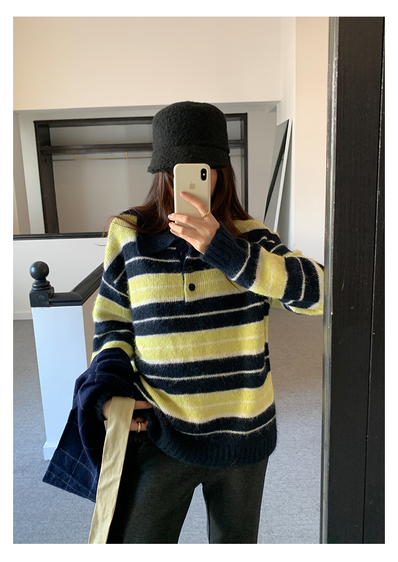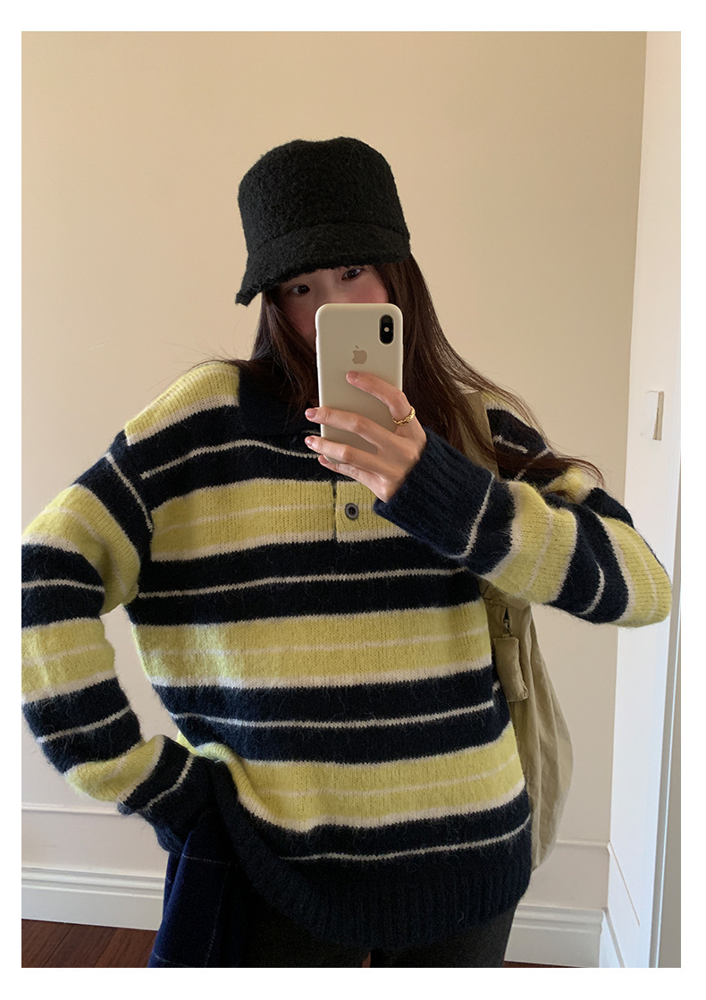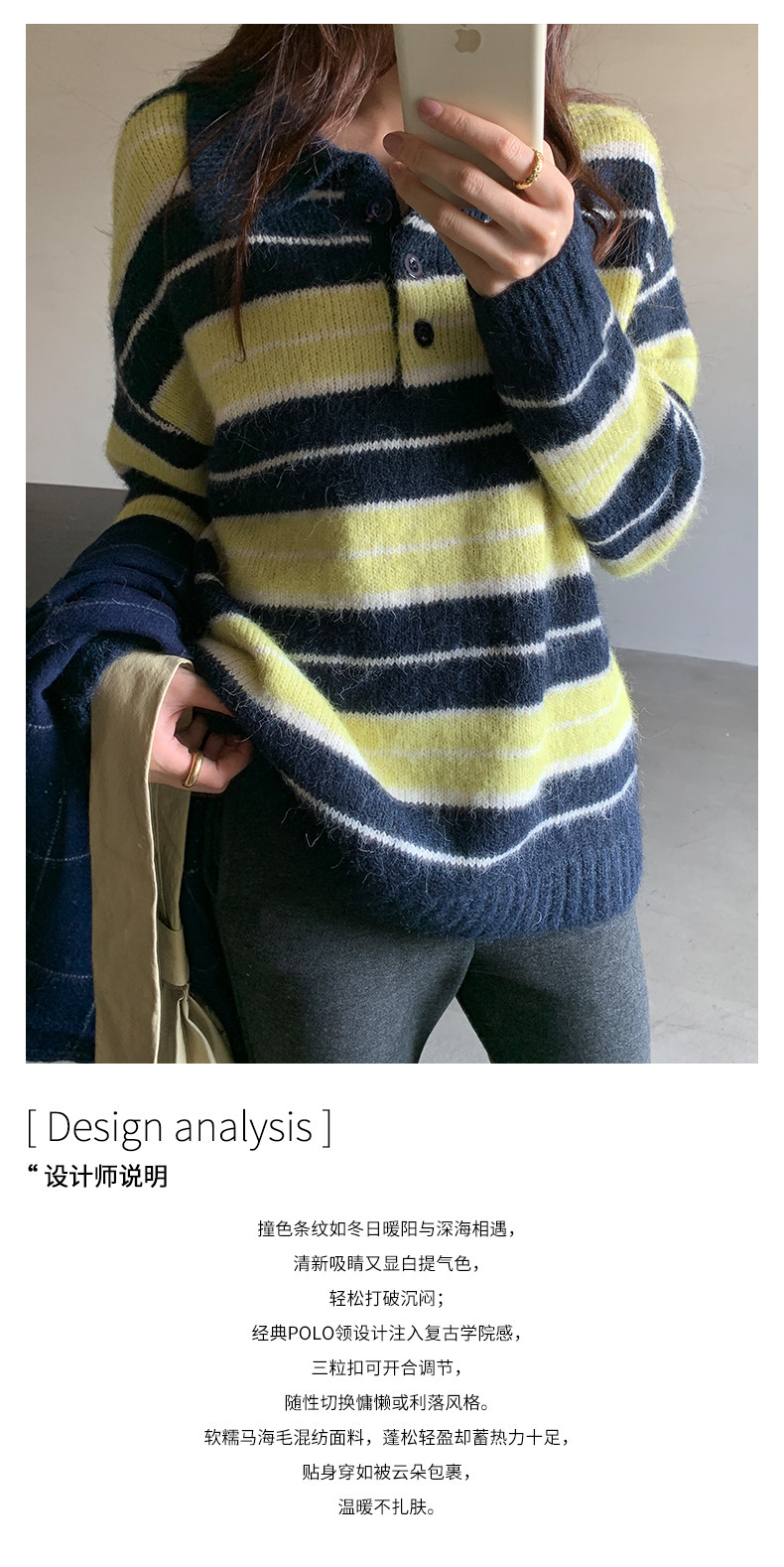 *o-ha-you*【FHZH1EB5041133】慵懶風POLO領撞色條紋毛衣女冬季軟糯休閒針織保暖上衣-2色