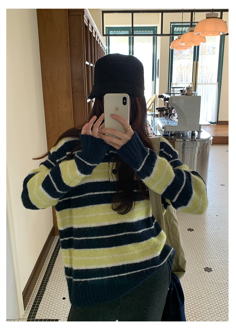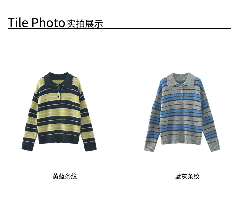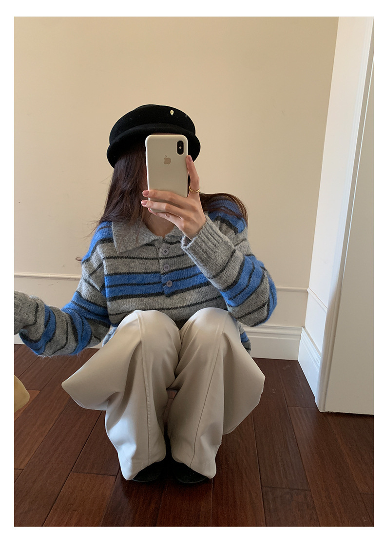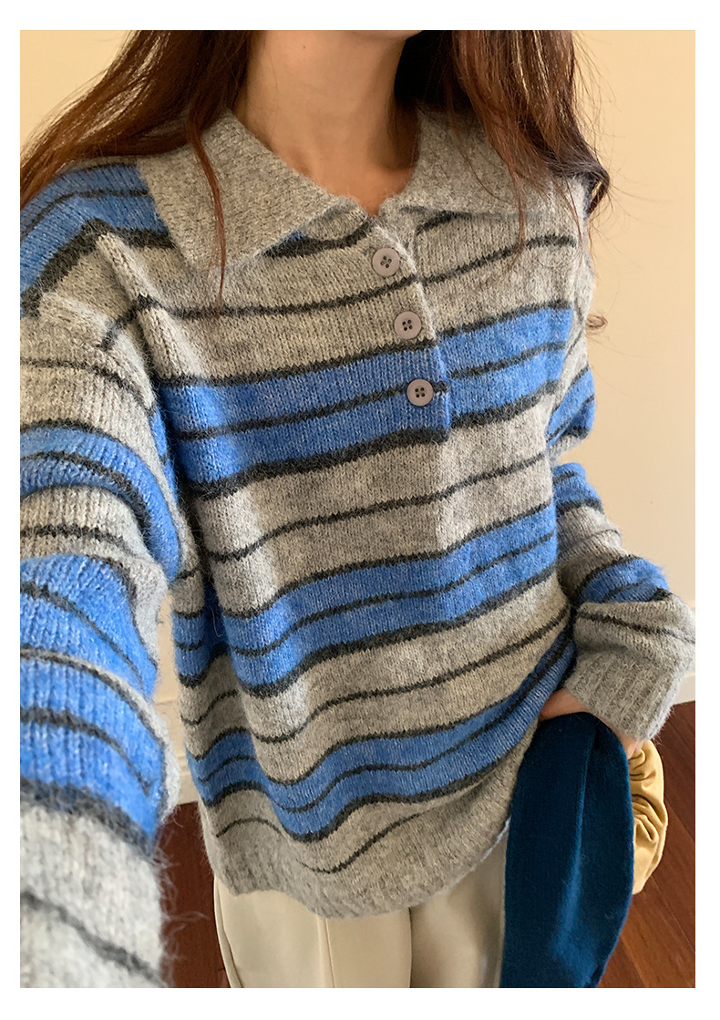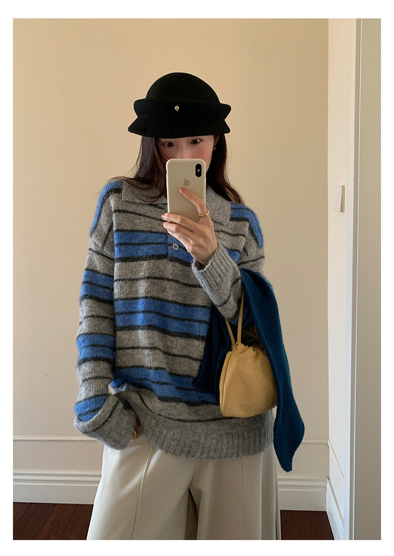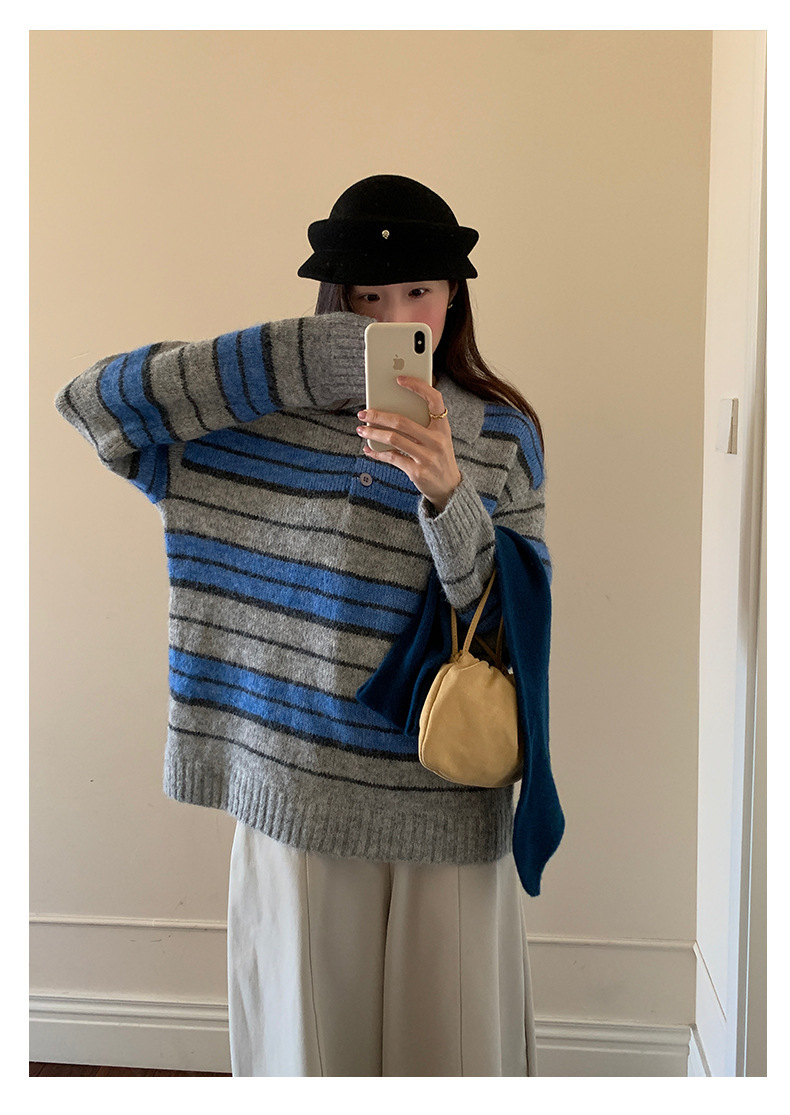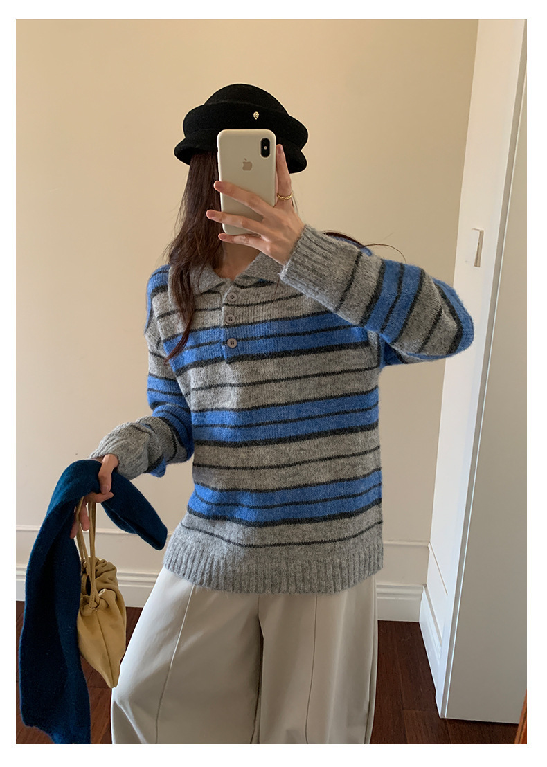 *o-ha-you*【FHZH1EB5041133】慵懶風POLO領撞色條紋毛衣女冬季軟糯休閒針織保暖上衣-2色