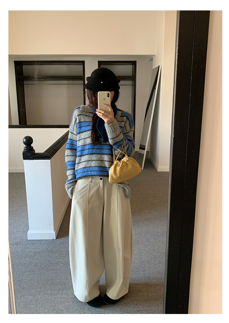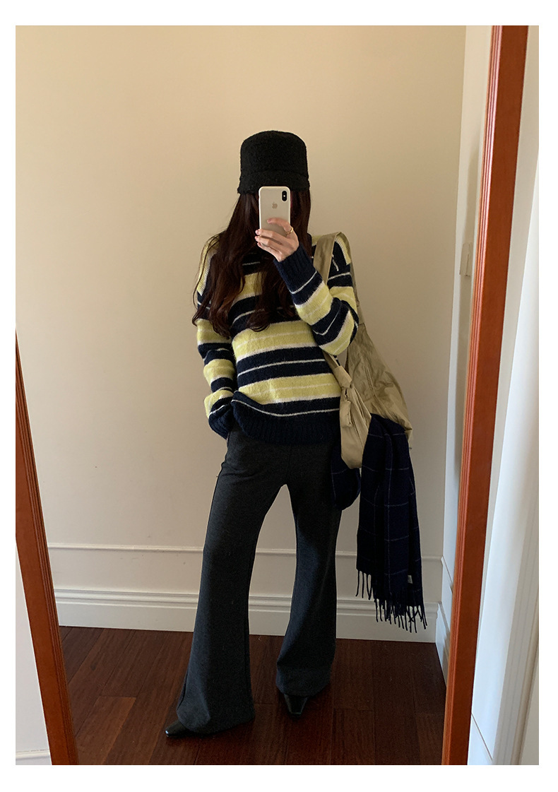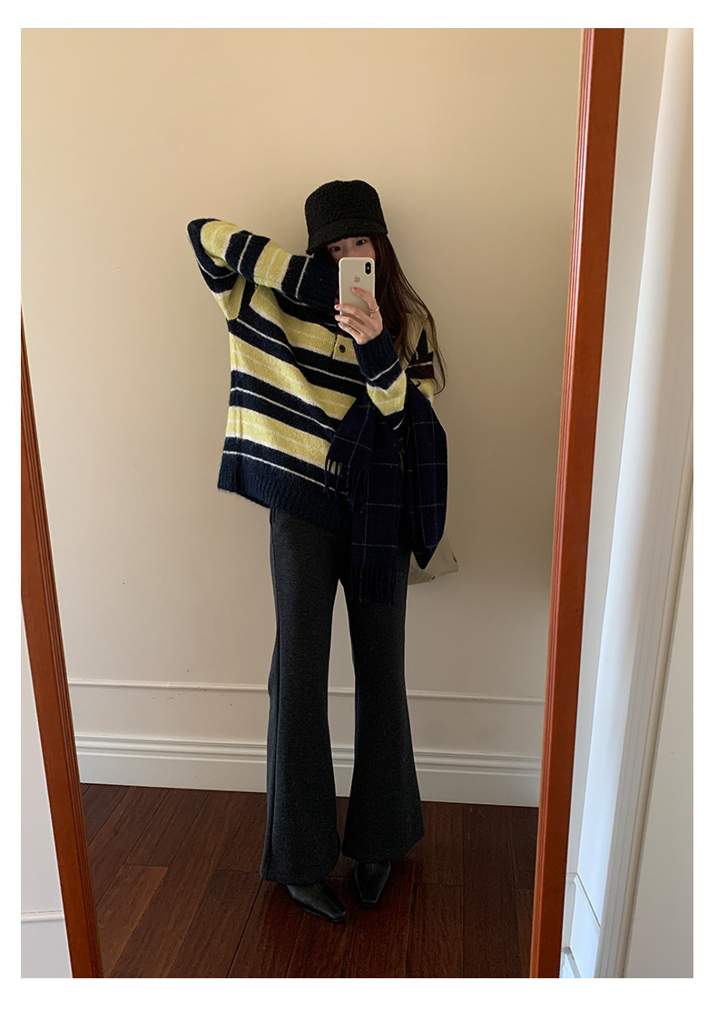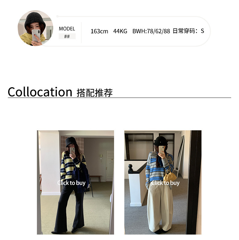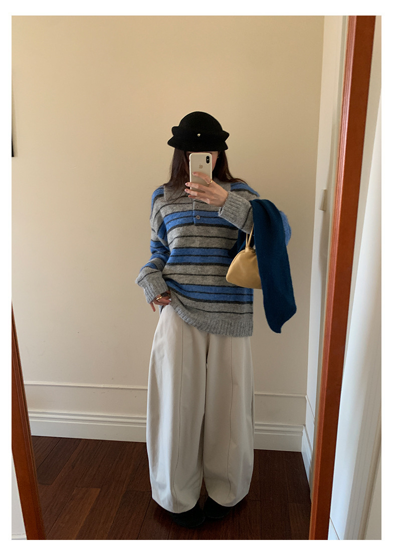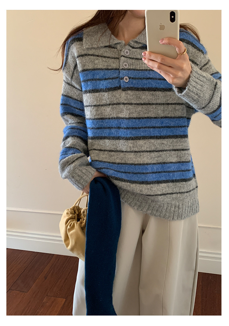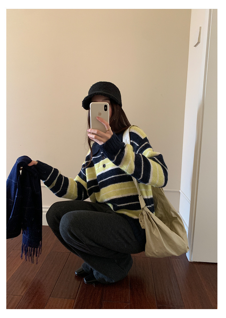 *o-ha-you*【FHZH1EB5041133】慵懶風POLO領撞色條紋毛衣女冬季軟糯休閒針織保暖上衣-2色