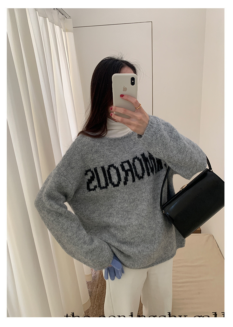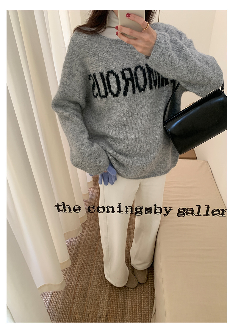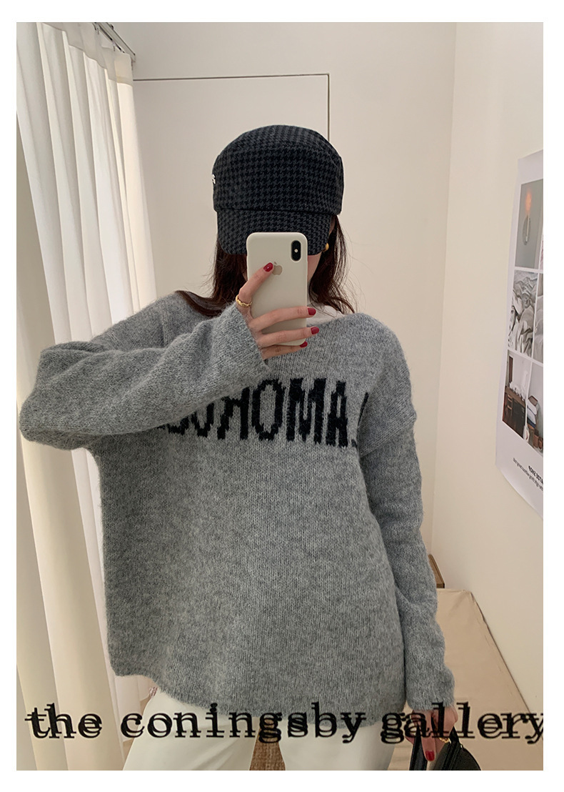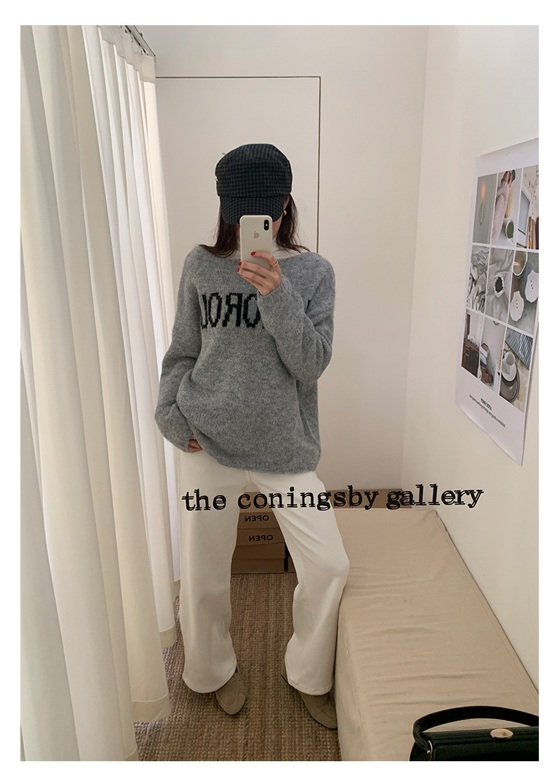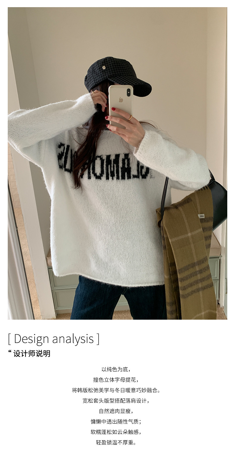 *o-ha-you*【FHZH1EB5041145】溫柔慵懶字母提花毛針織衫女冬季韓版套頭寬鬆氣質毛衣-2色