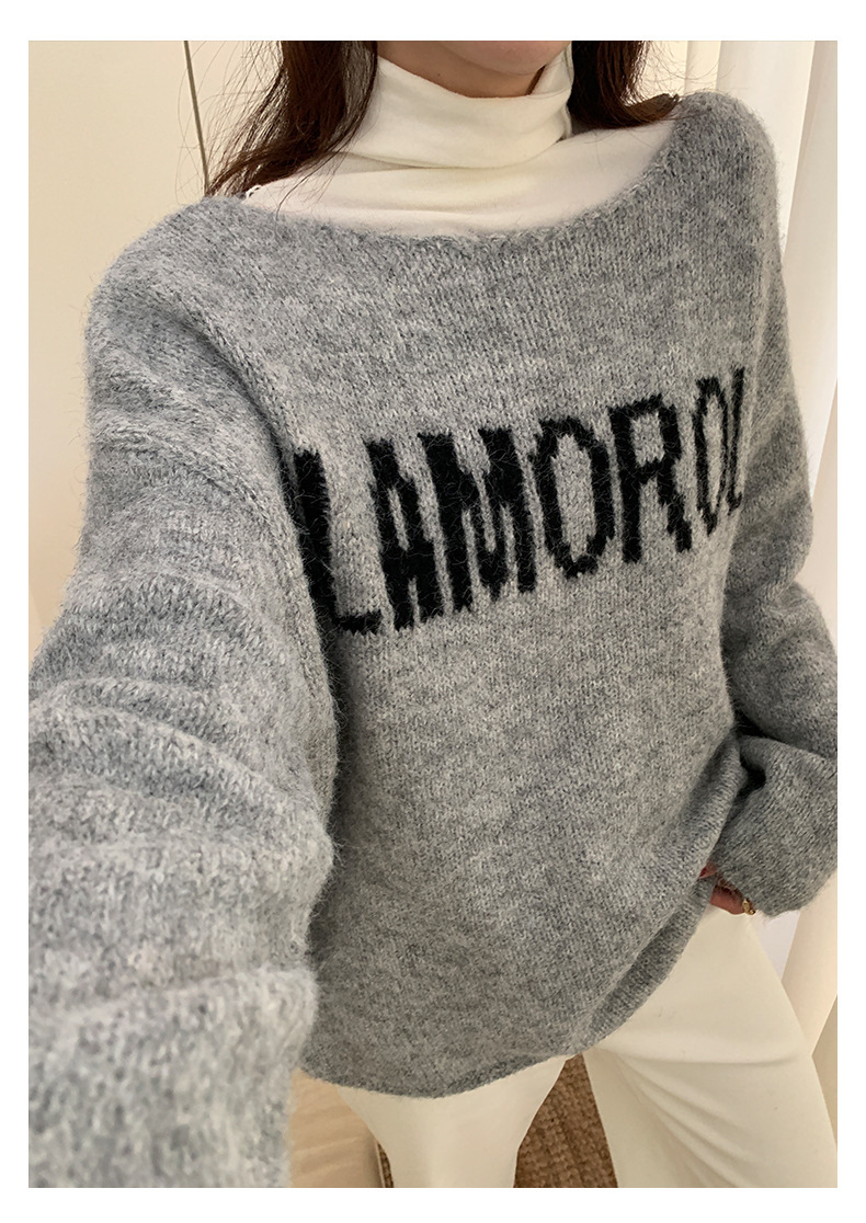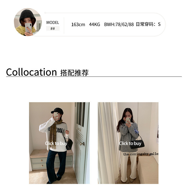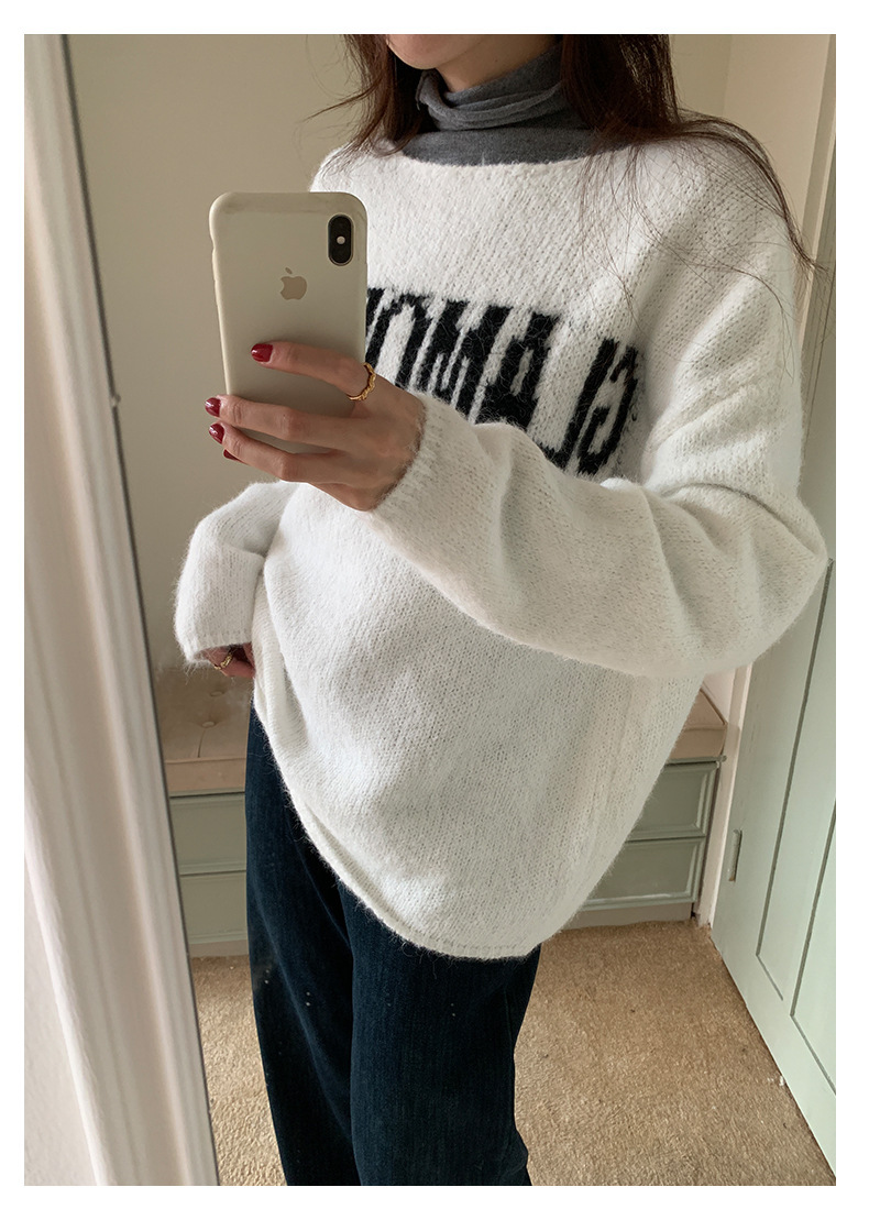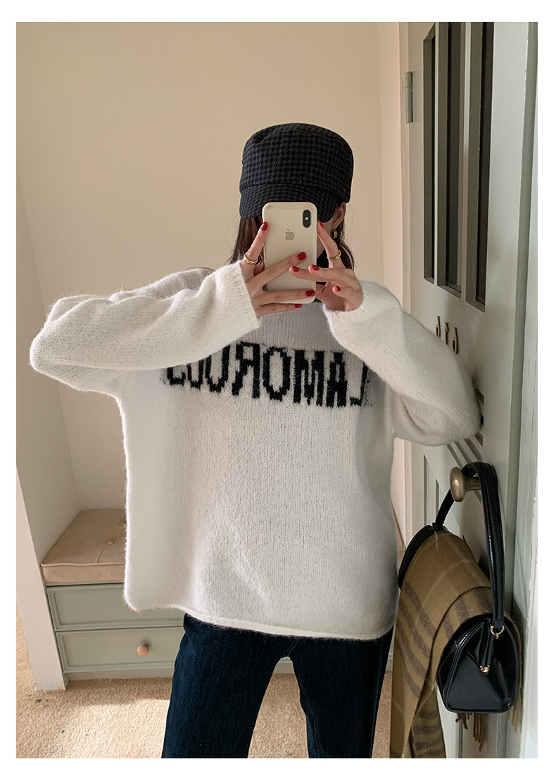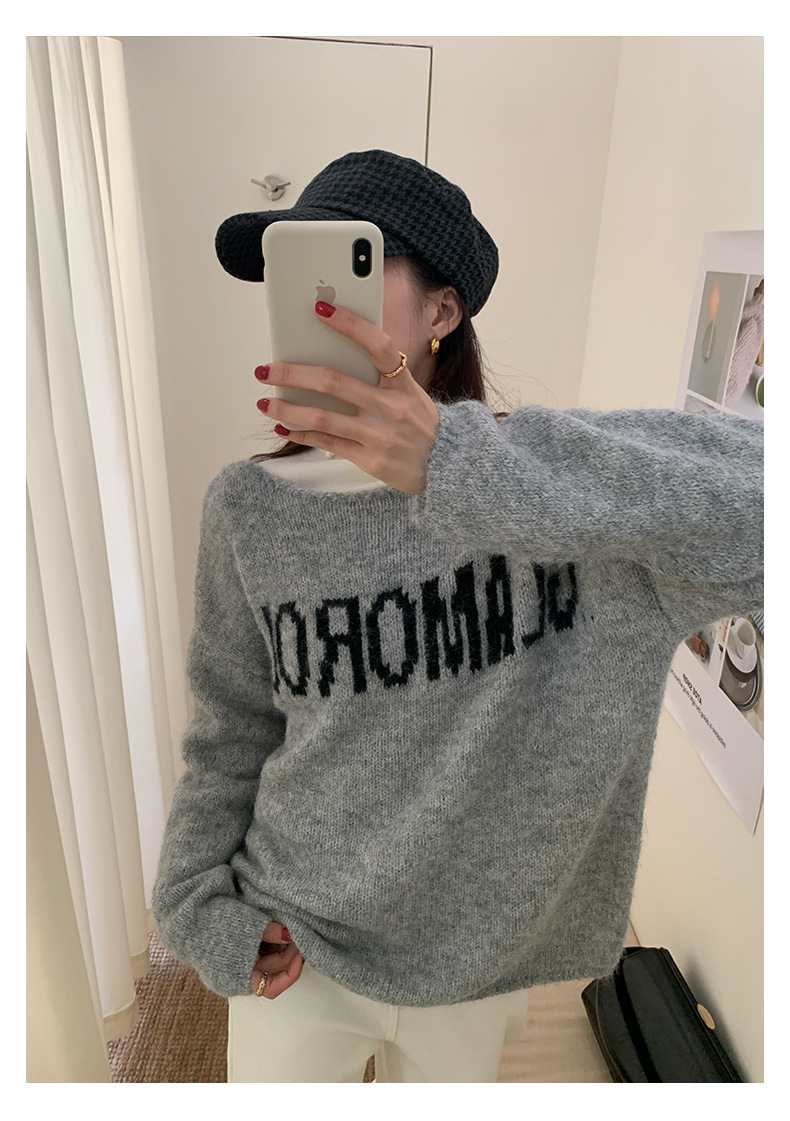 *o-ha-you*【FHZH1EB5041145】溫柔慵懶字母提花毛針織衫女冬季韓版套頭寬鬆氣質毛衣-2色