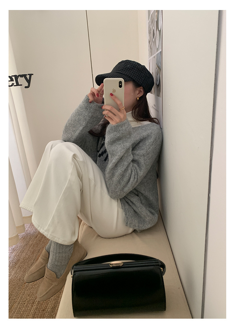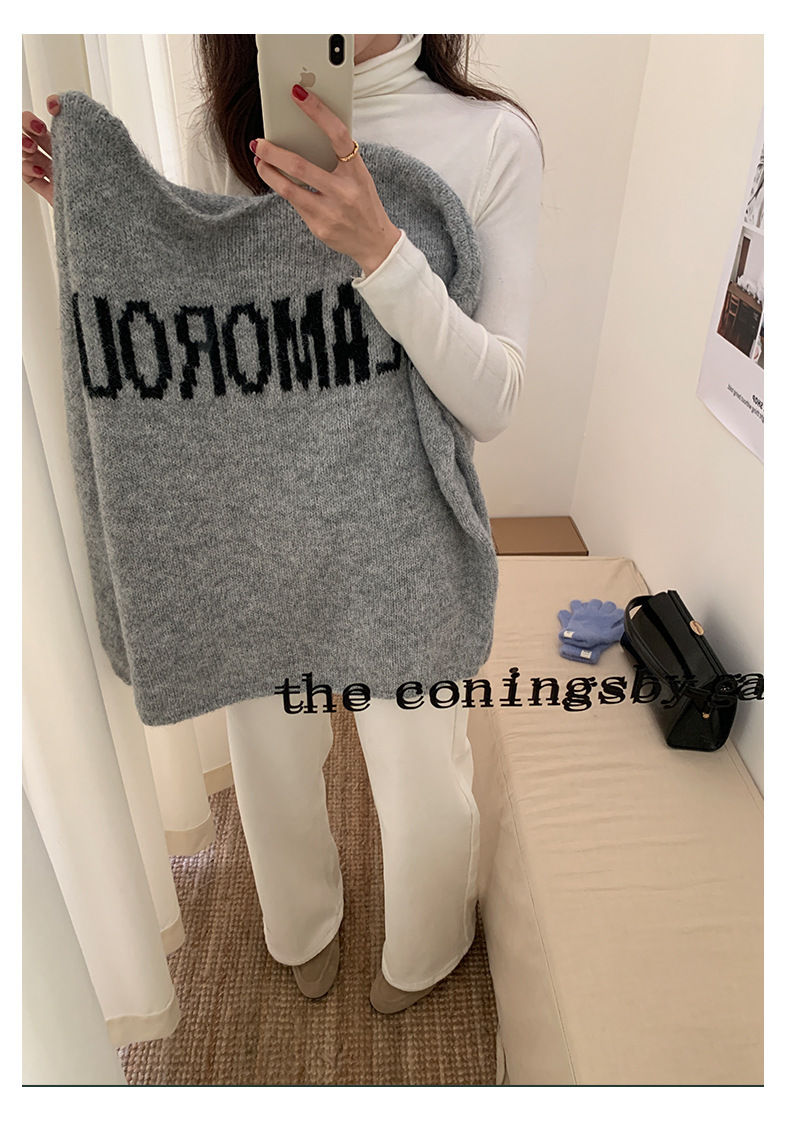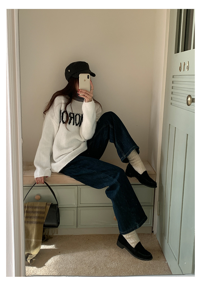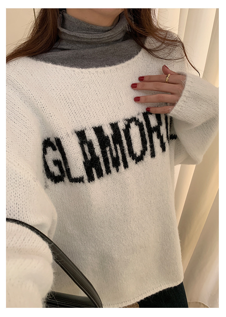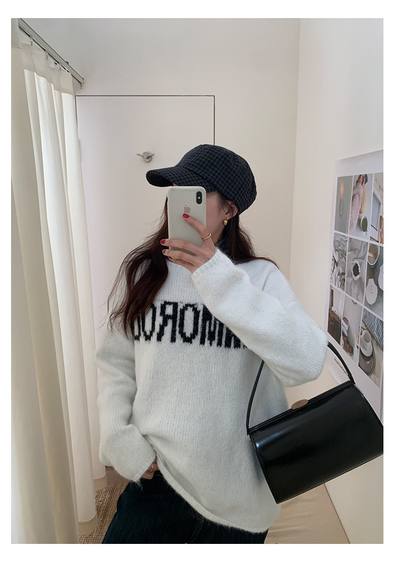 *o-ha-you*【FHZH1EB5041145】溫柔慵懶字母提花毛針織衫女冬季韓版套頭寬鬆氣質毛衣-2色