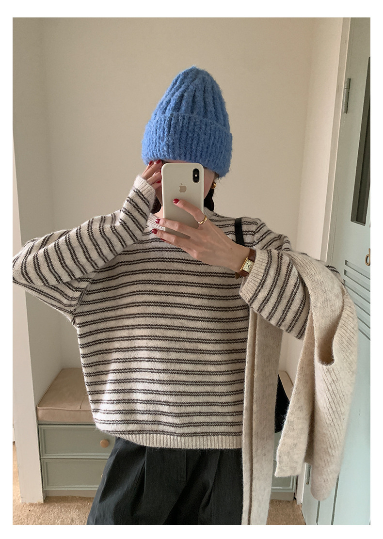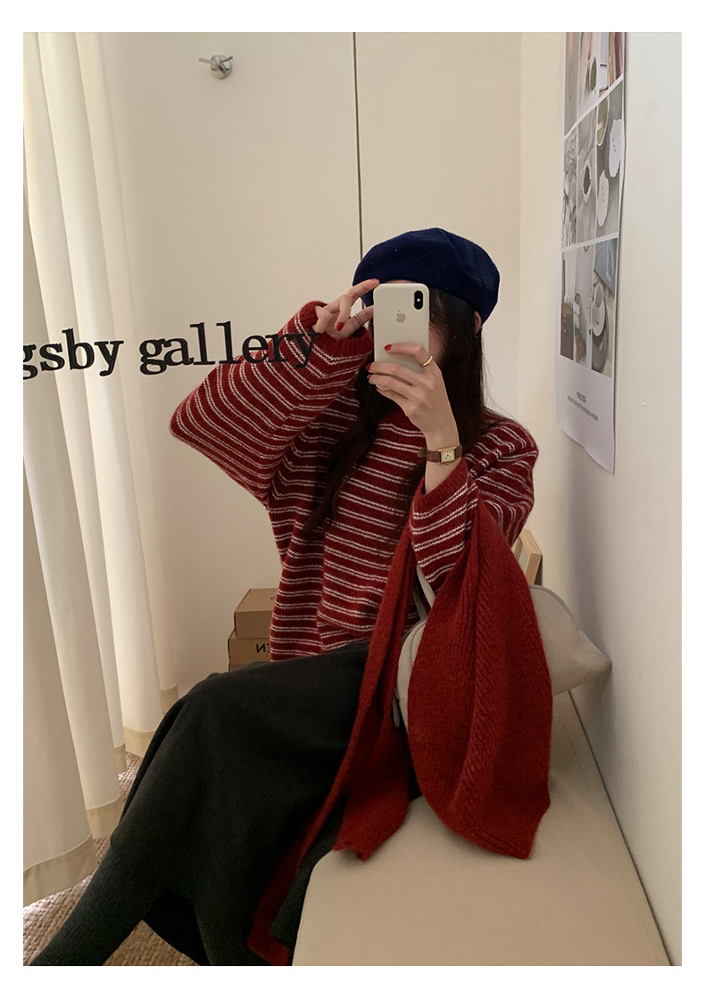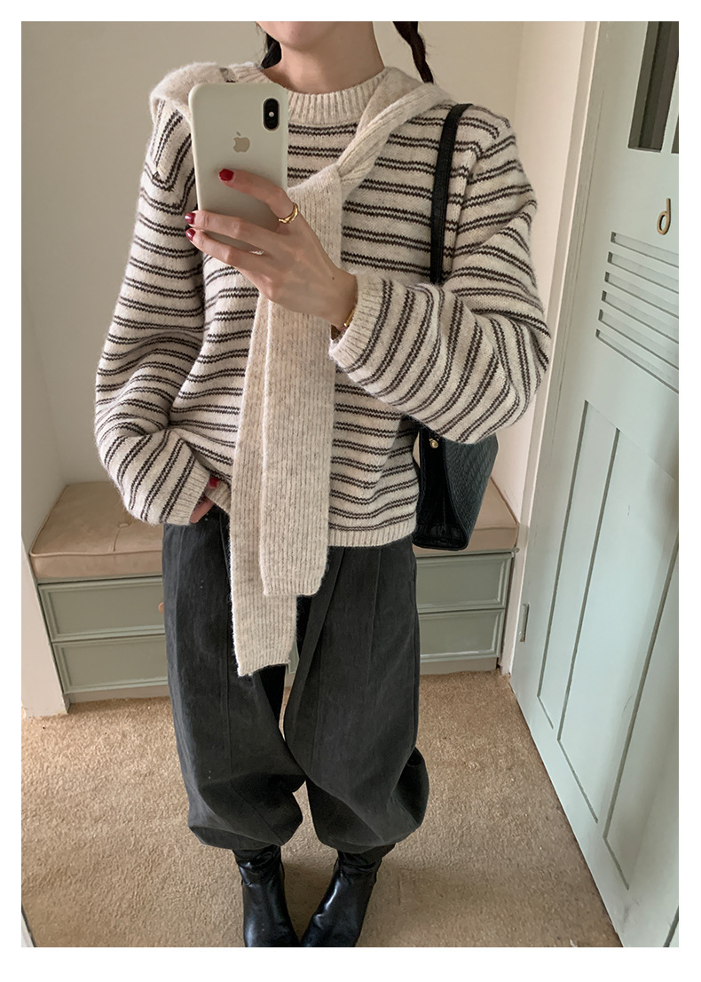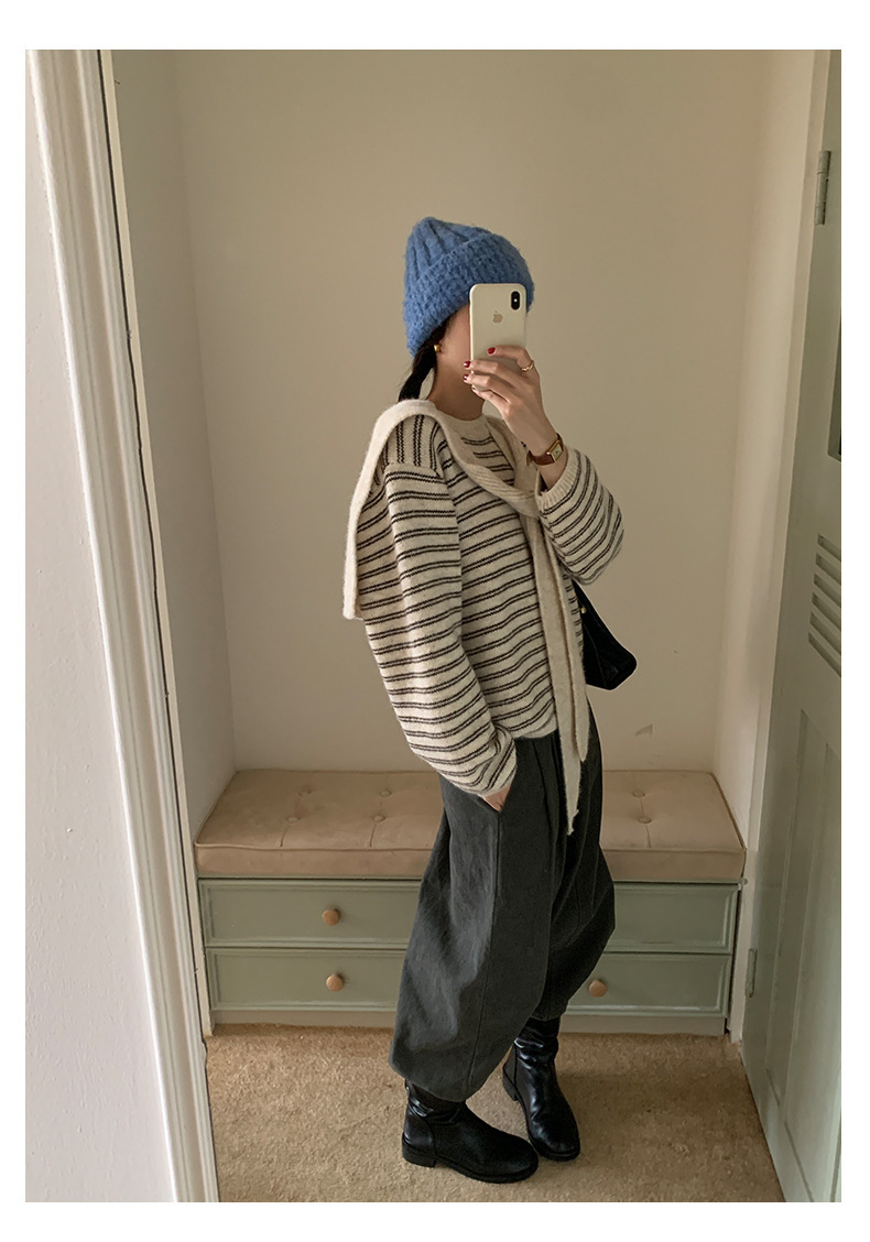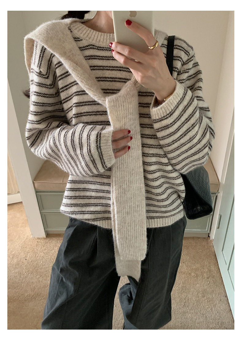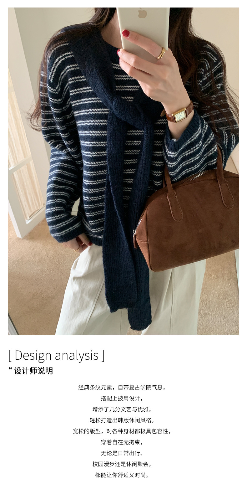*o-ha-you*【FHZH1EB5041159】學院風披肩條紋毛針織衫女25冬季韓版休閒寬鬆百搭毛衣-3色