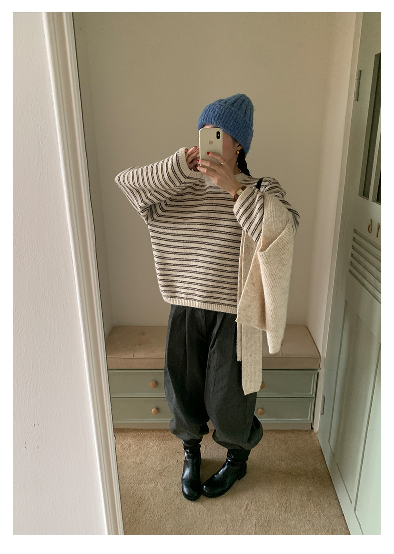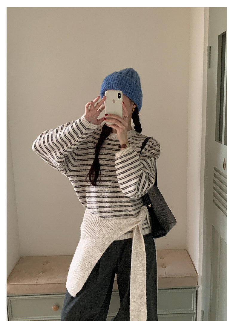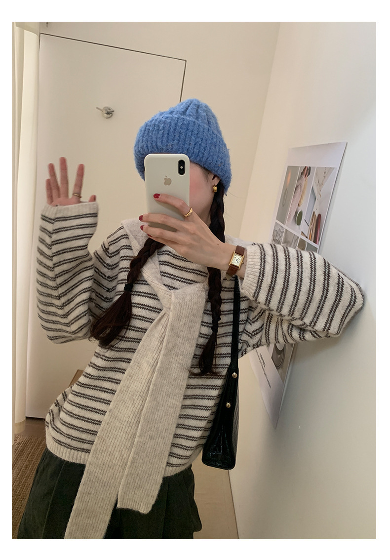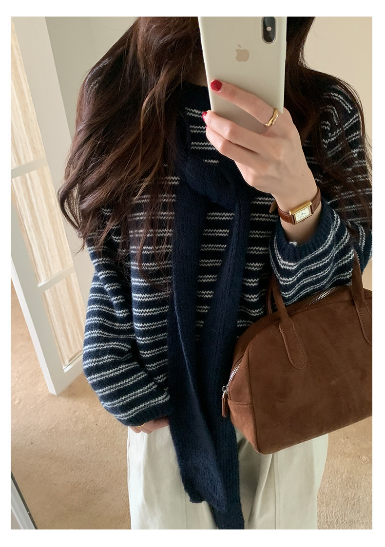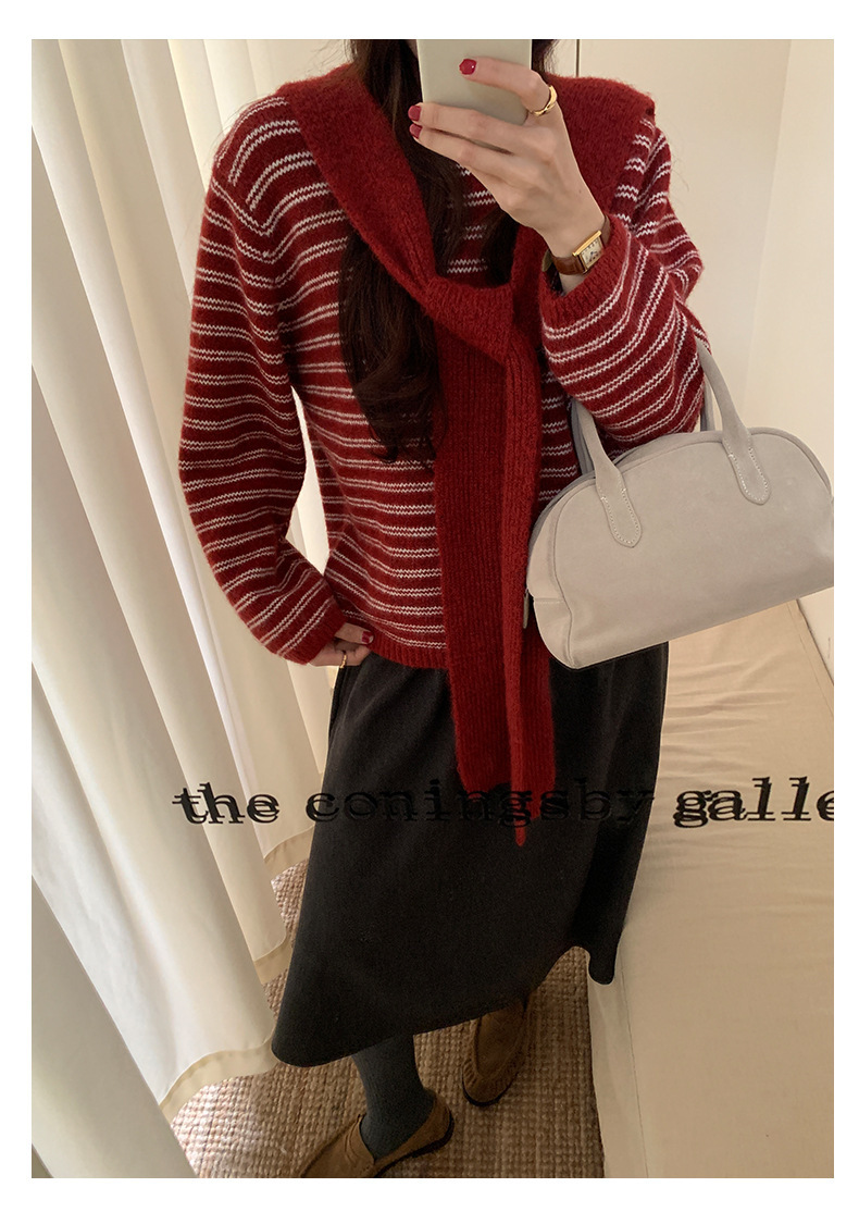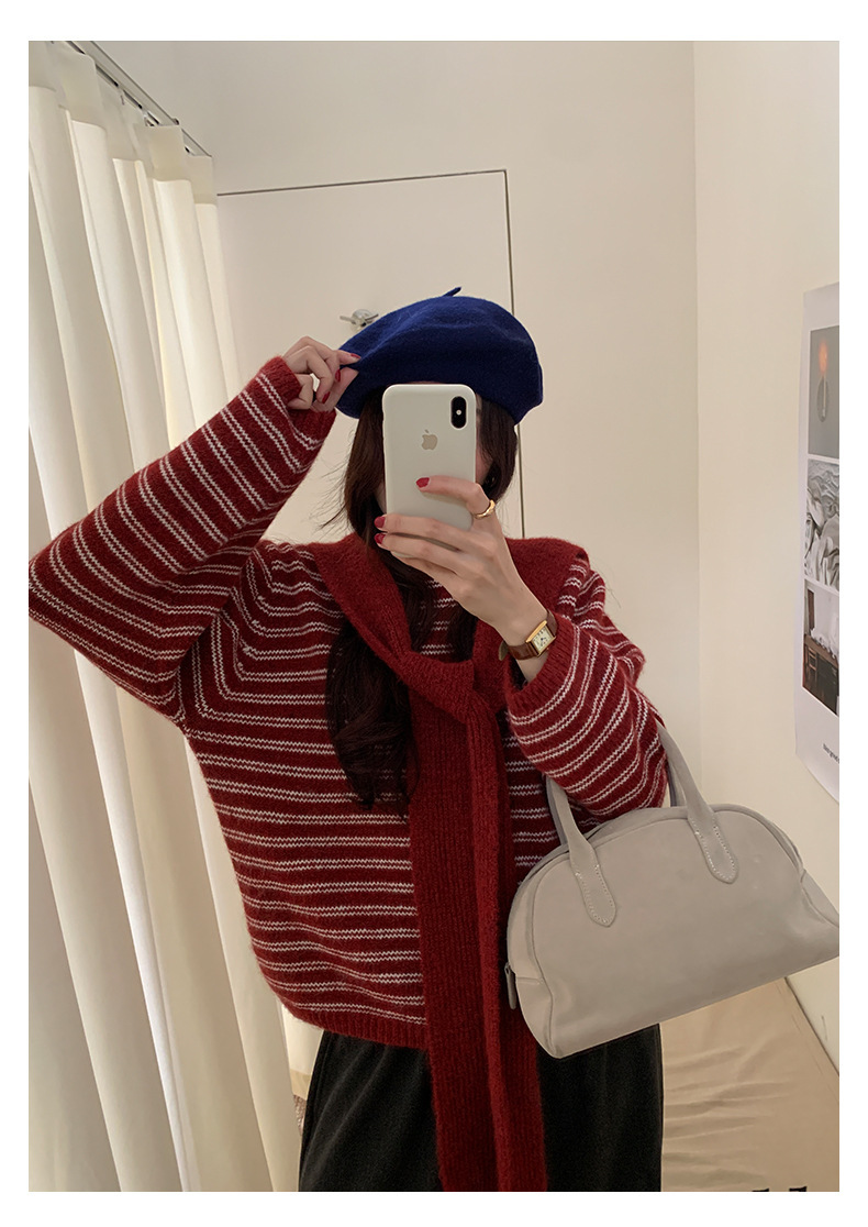 *o-ha-you*【FHZH1EB5041159】學院風披肩條紋毛針織衫女25冬季韓版休閒寬鬆百搭毛衣-3色