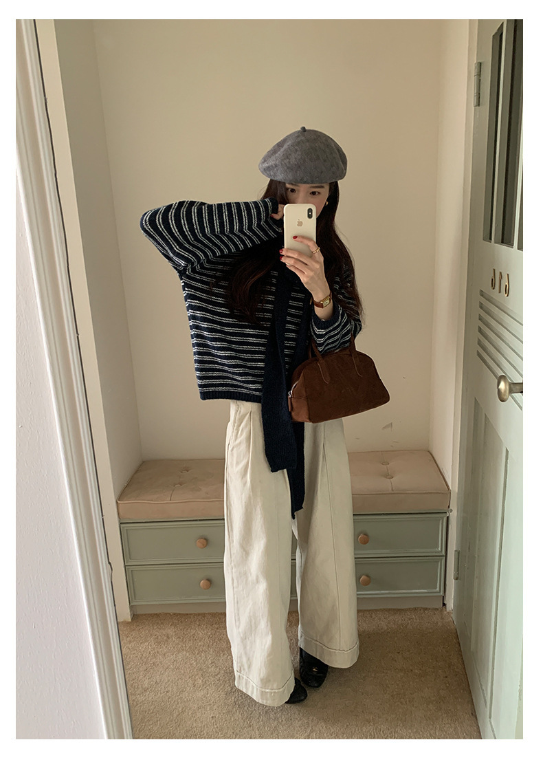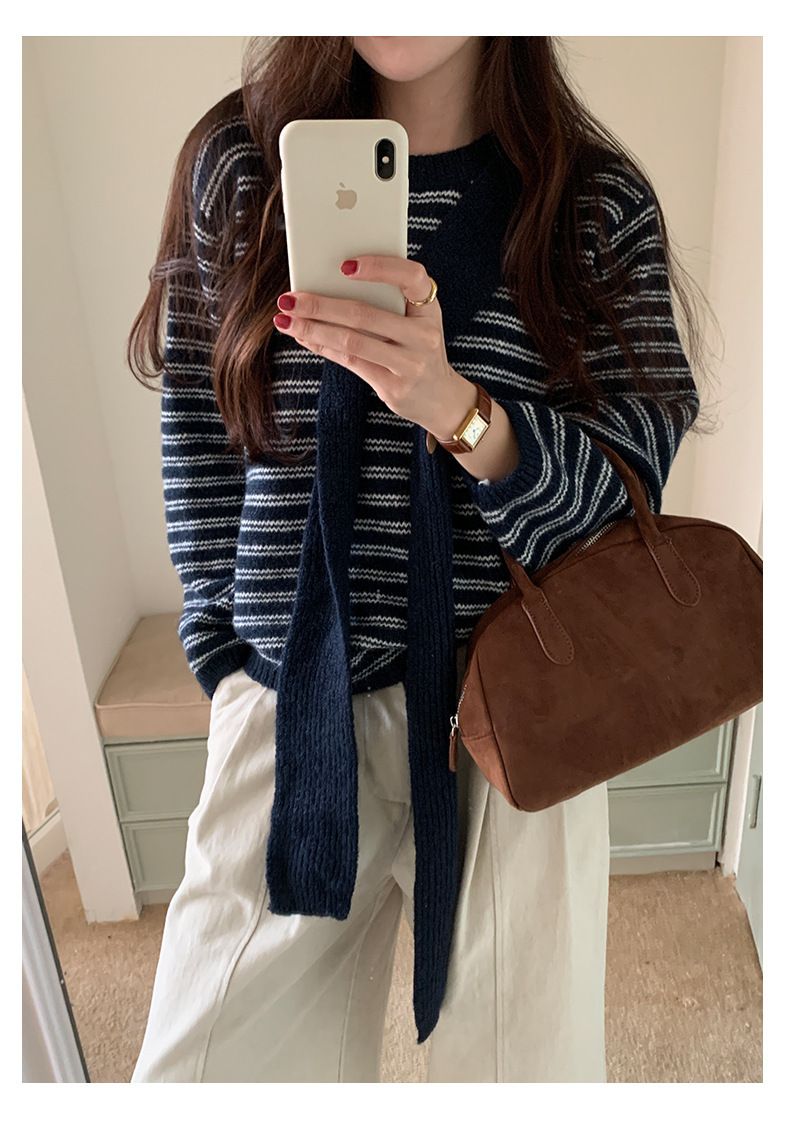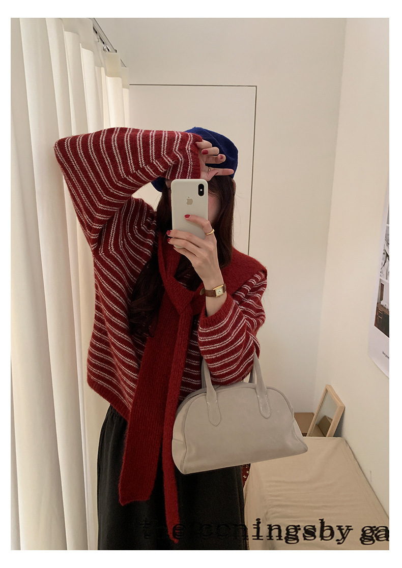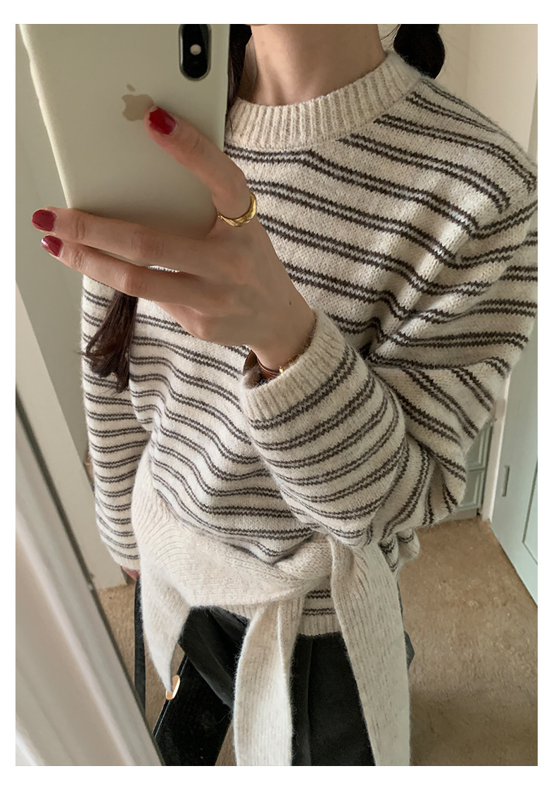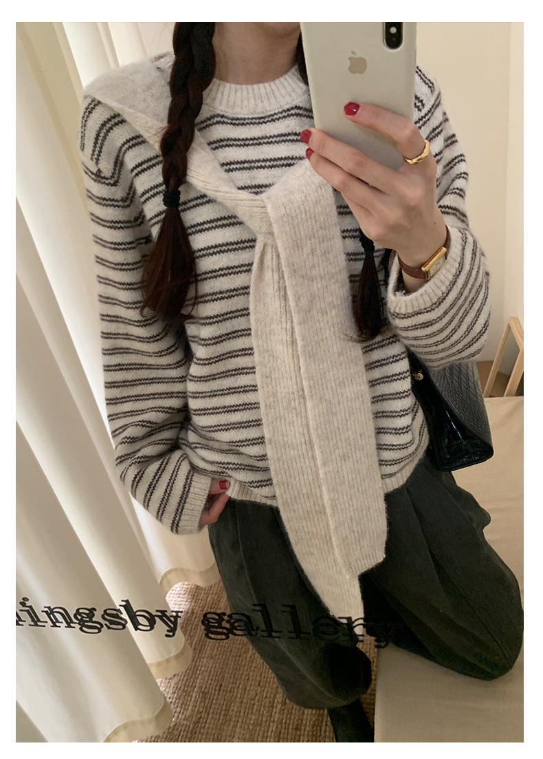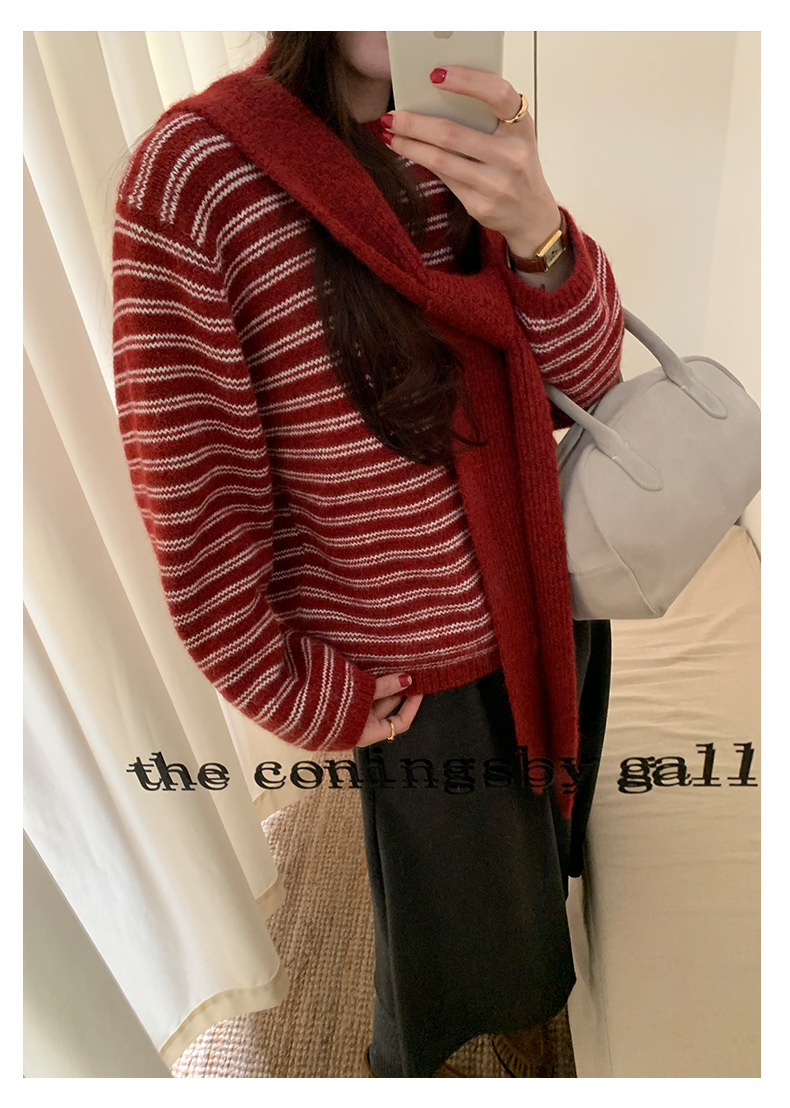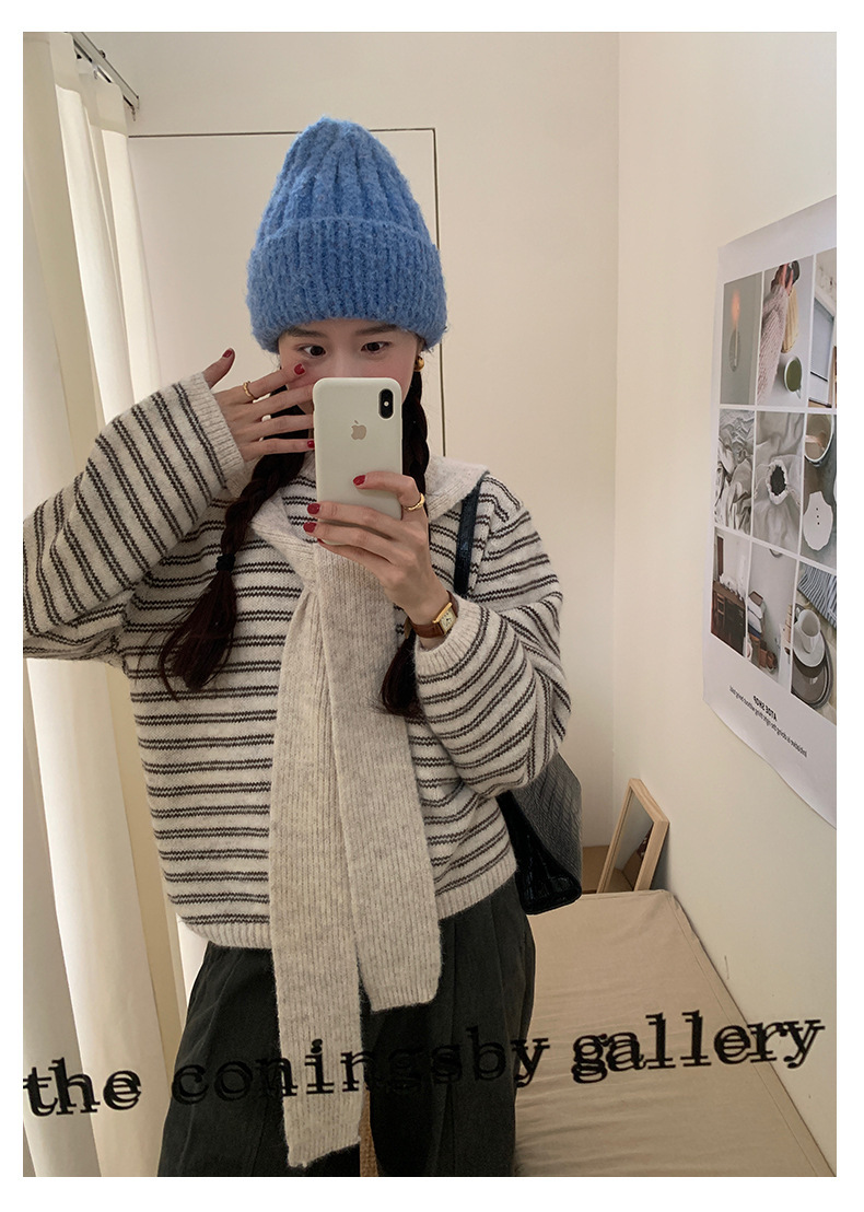 *o-ha-you*【FHZH1EB5041159】學院風披肩條紋毛針織衫女25冬季韓版休閒寬鬆百搭毛衣-3色