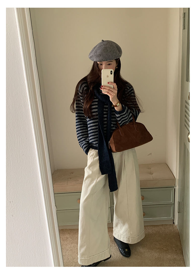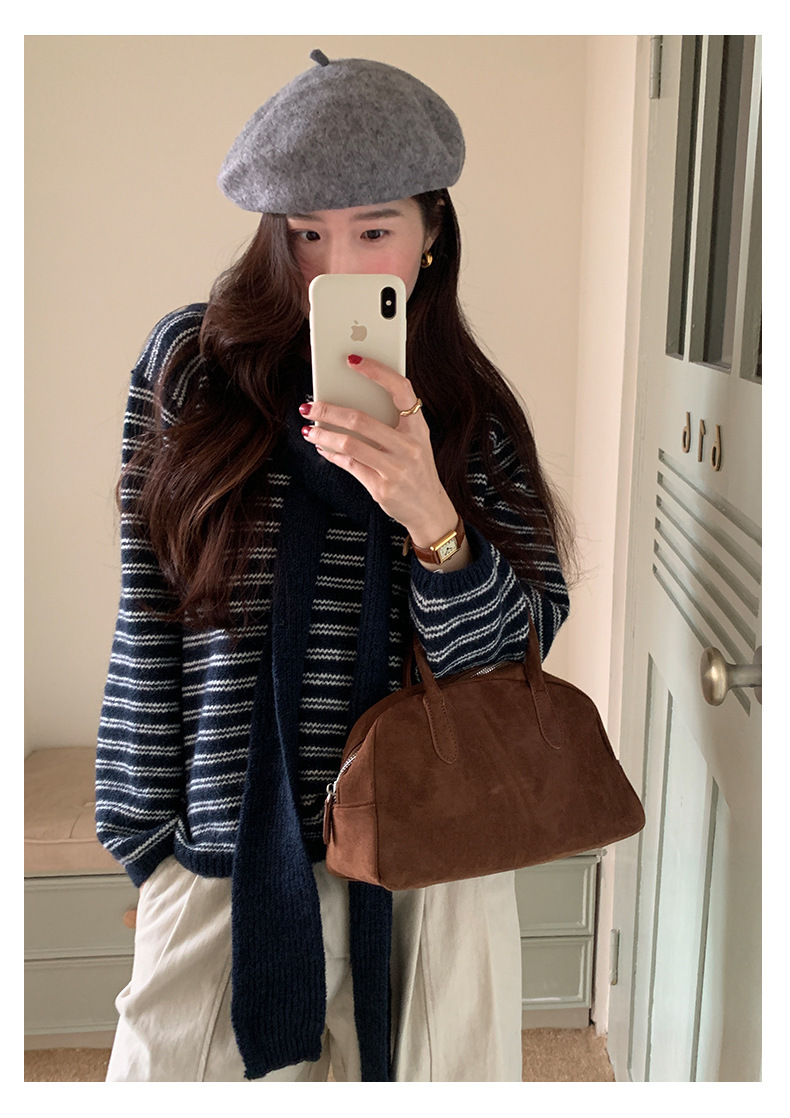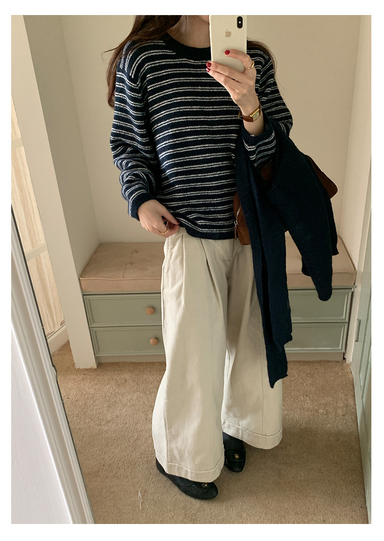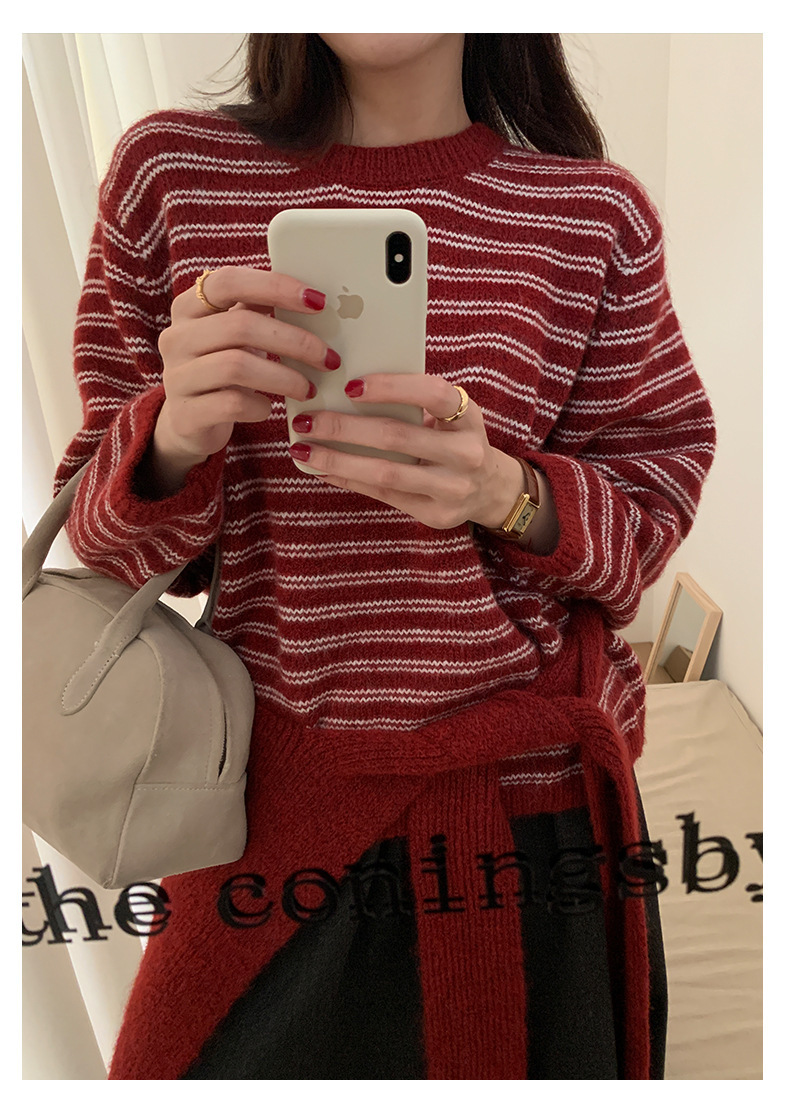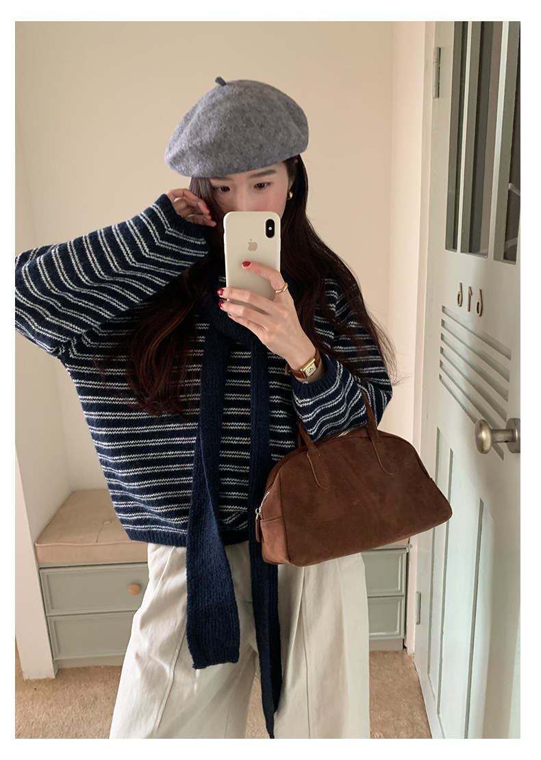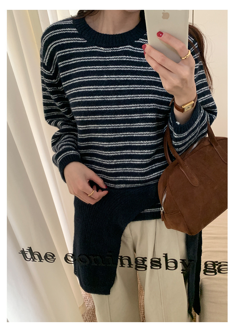 *o-ha-you*【FHZH1EB5041159】學院風披肩條紋毛針織衫女25冬季韓版休閒寬鬆百搭毛衣-3色