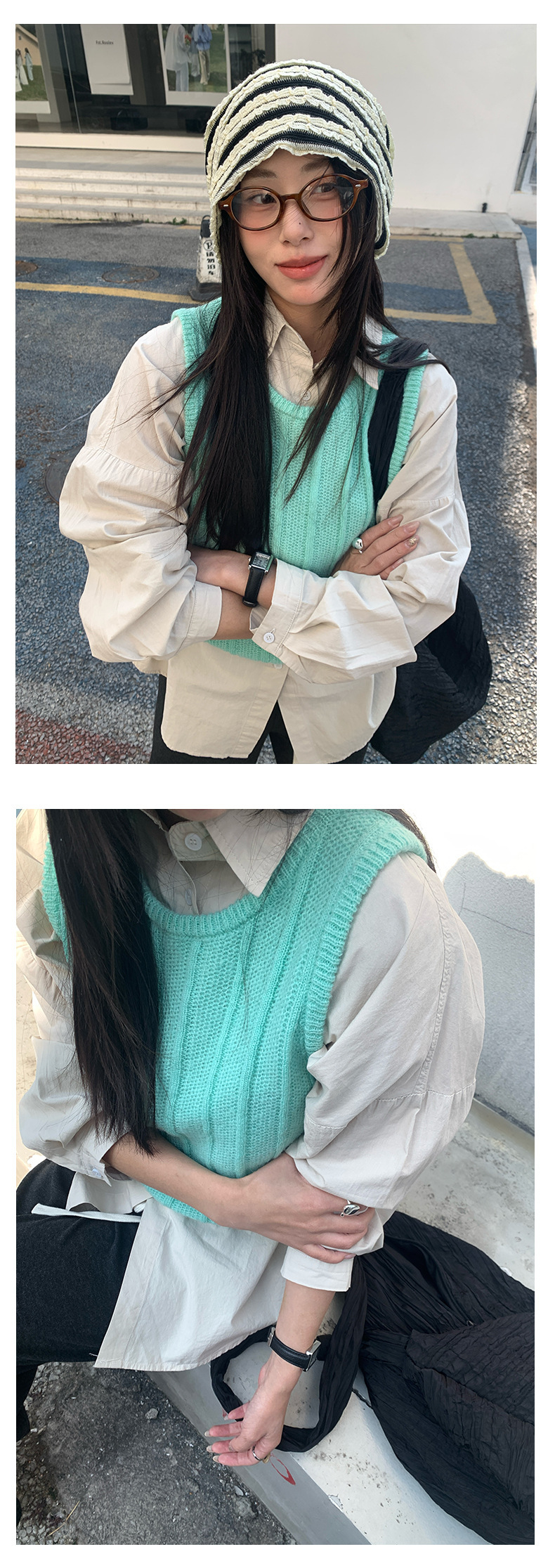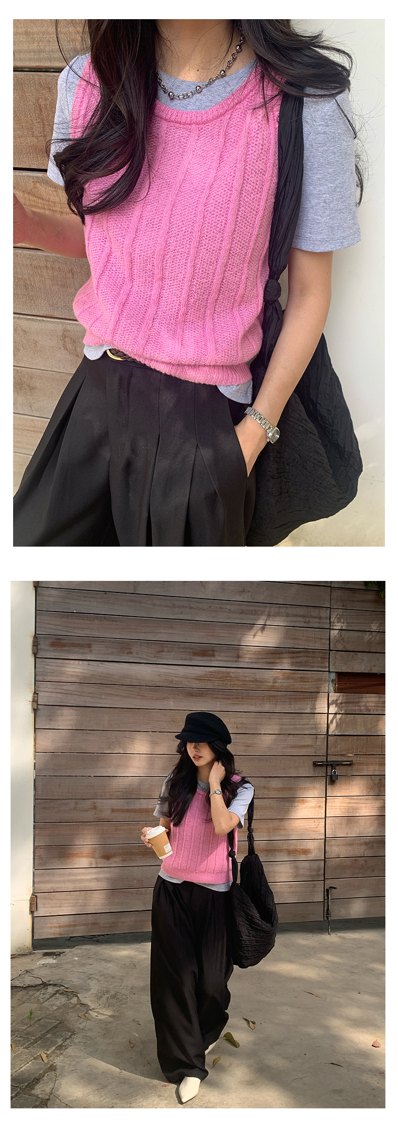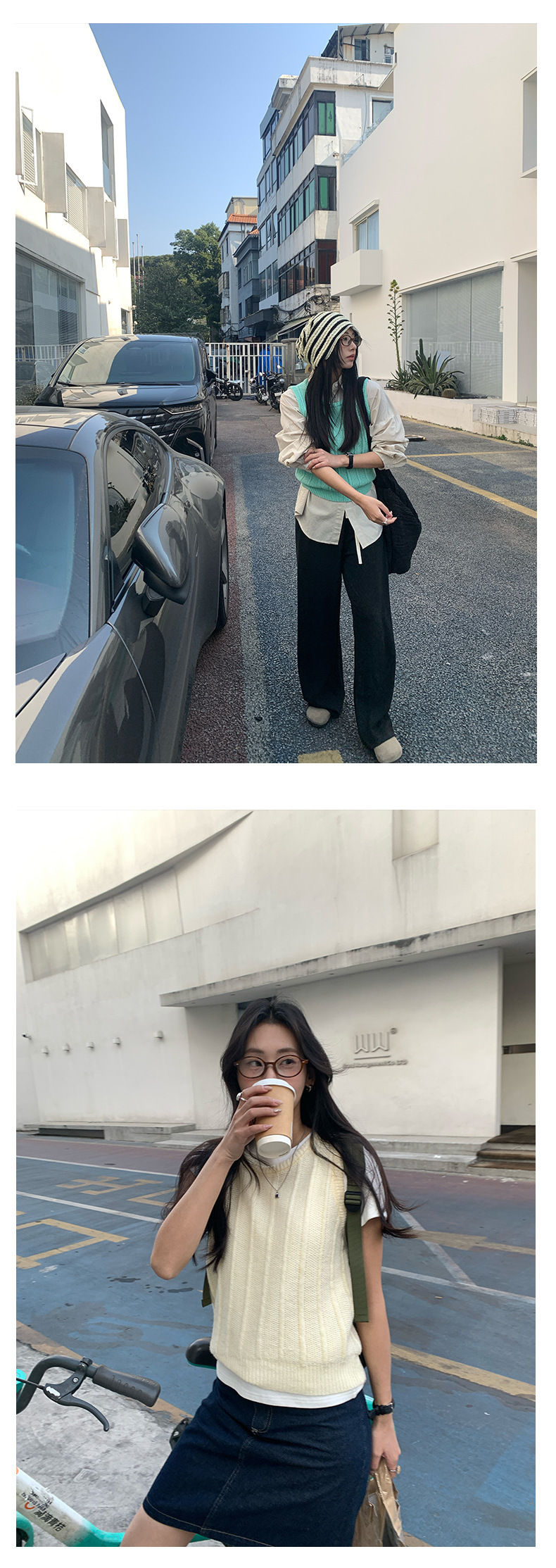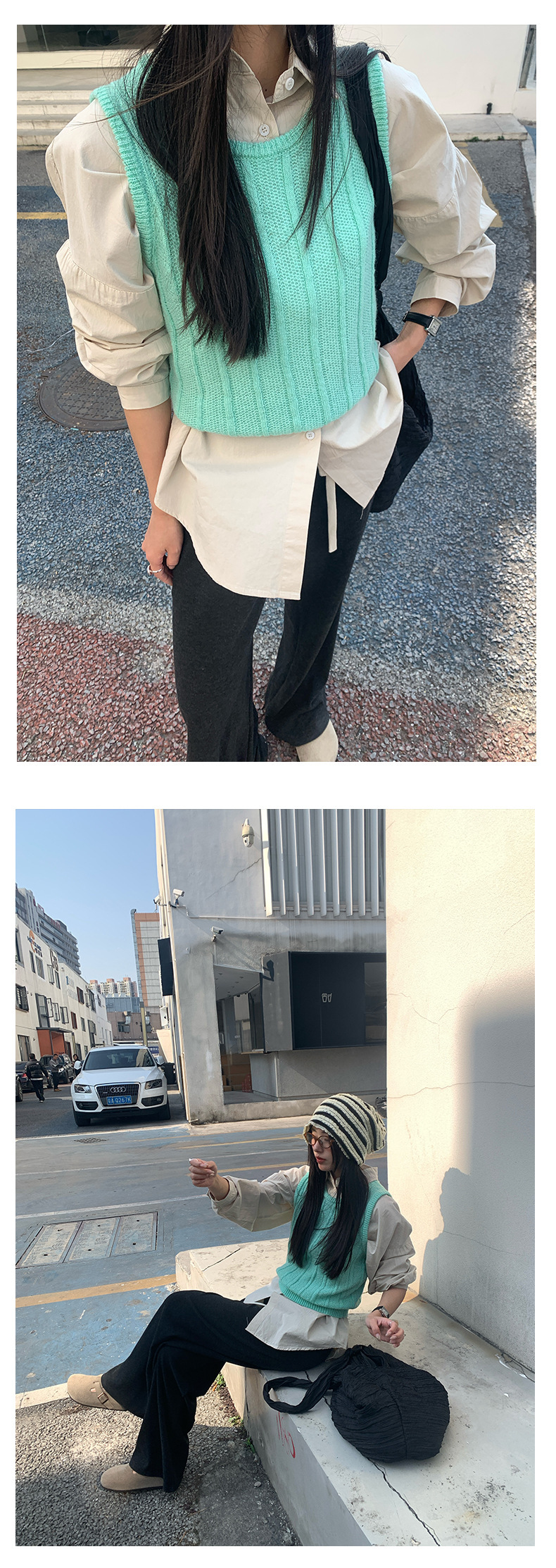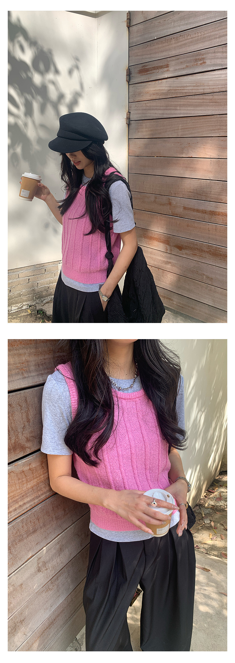 *o-ha-you*【FHZH1EC5010101】6色簡約圓領麻花毛針織馬甲2025春韓版疊穿背心-如有需要請先諮詢