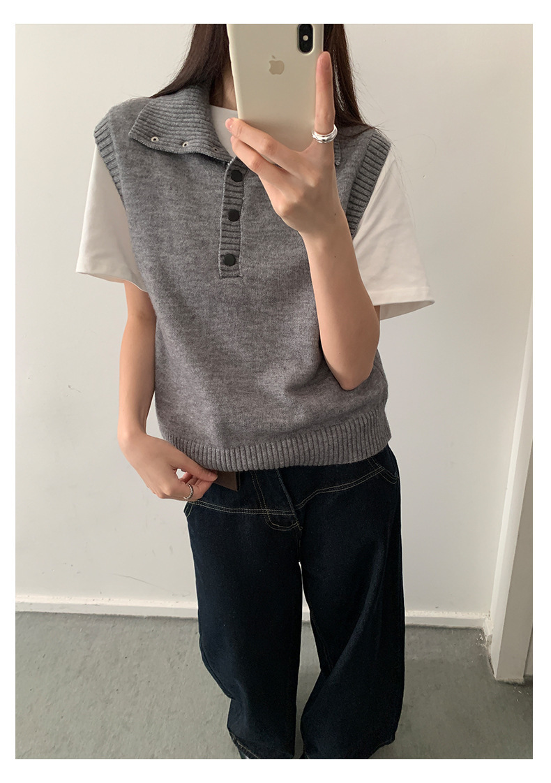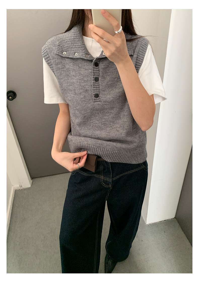 *o-ha-you*【FHZH1EC5041006】老錢風立領針織馬甲背心女2025冬疊穿氣質坎肩無袖上衣-2色