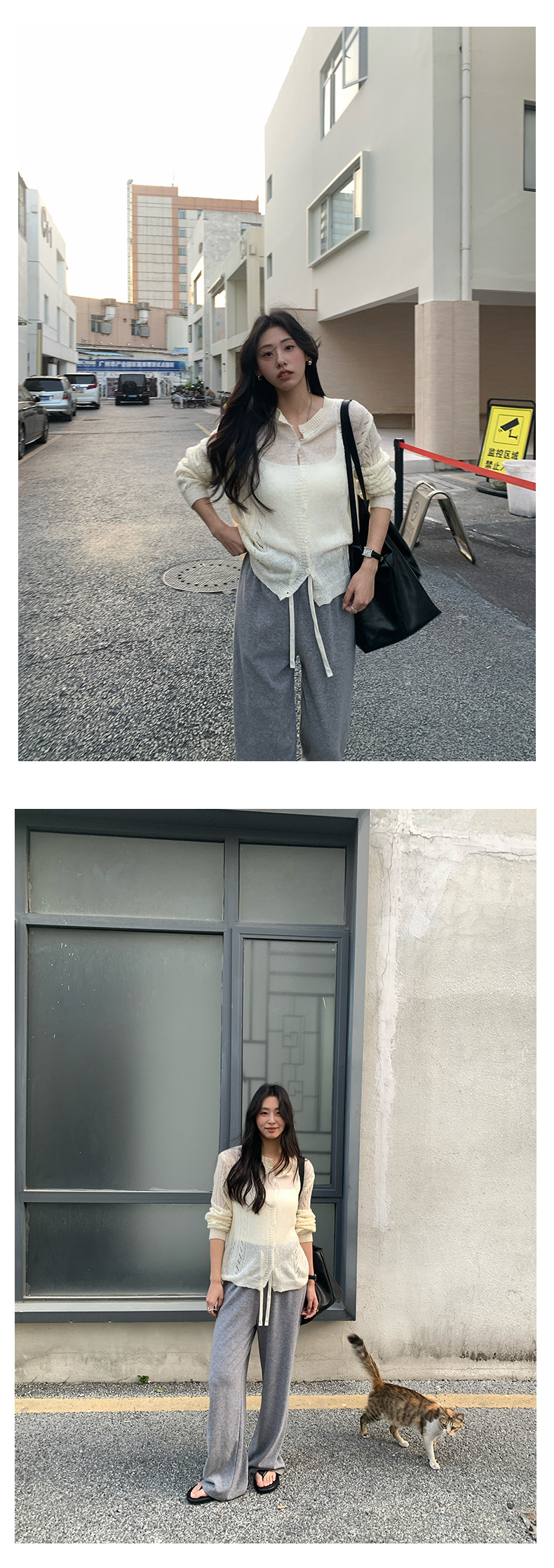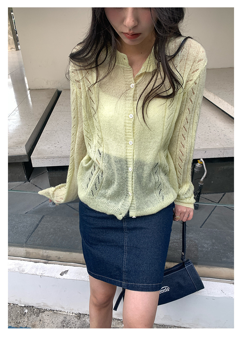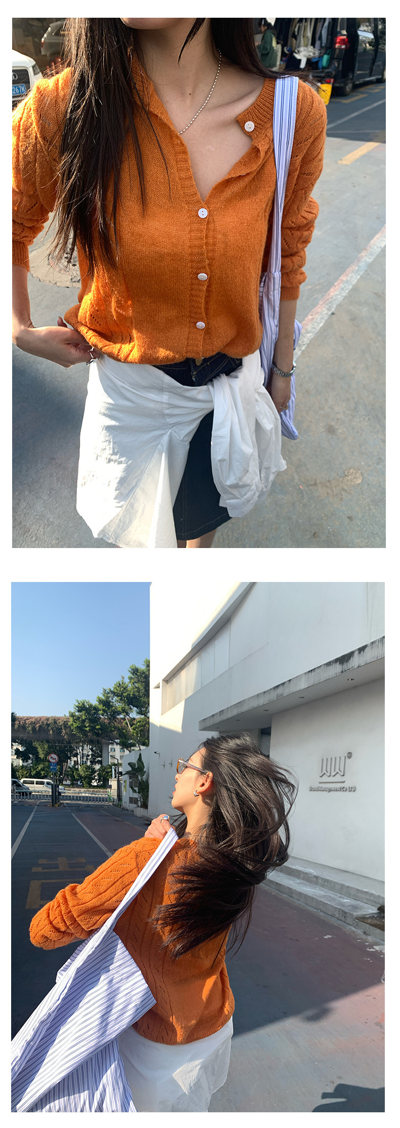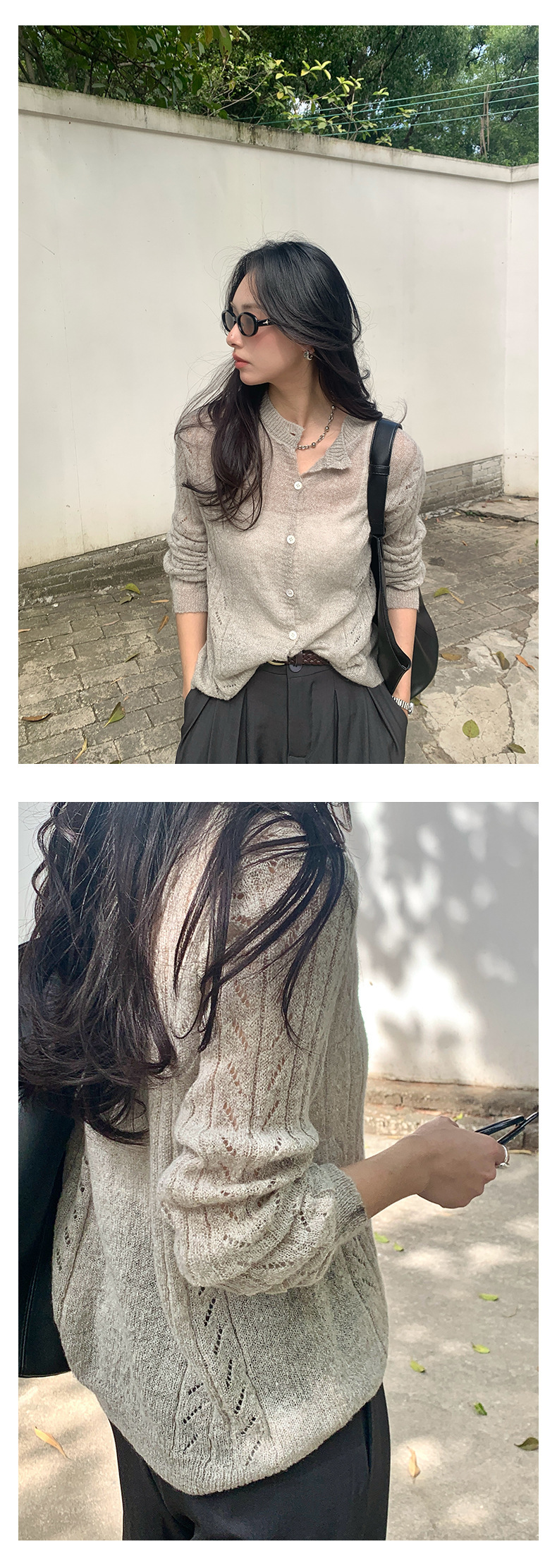 *o-ha-you*【FHZH1ED5010149】溫柔風鏤空長袖毛針織衫2025春季韓版休閒開襟衫-4色-如有需要請先諮詢