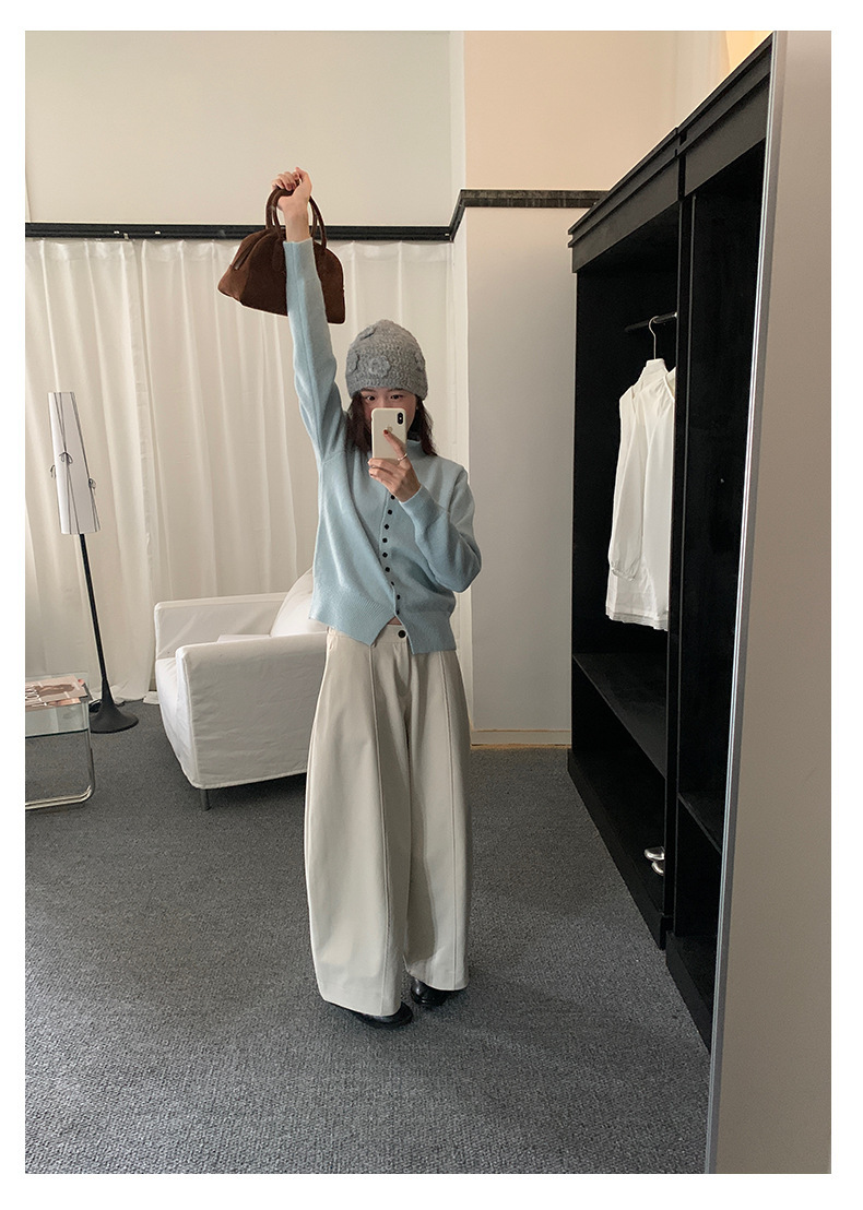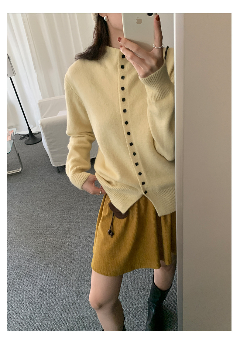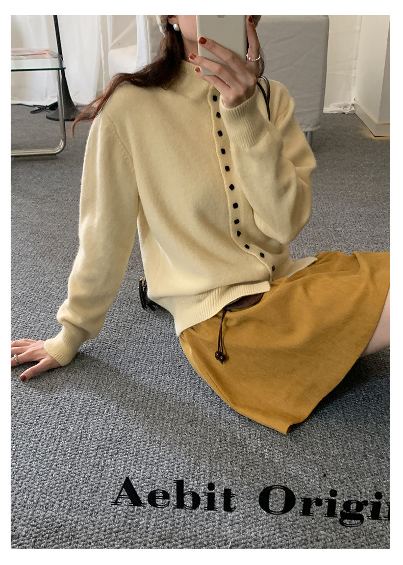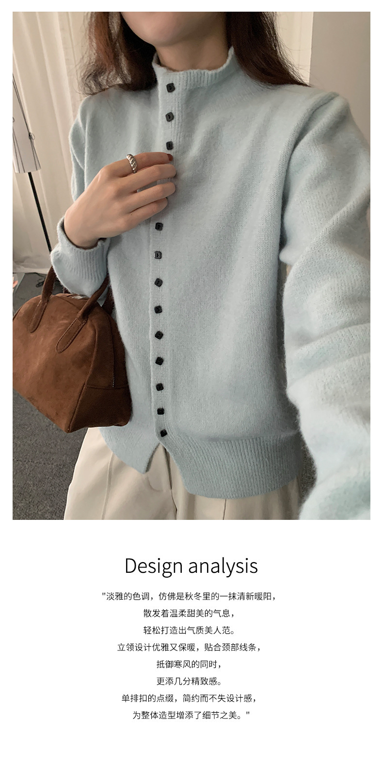 *o-ha-you*【FHZH1ED5041021】溫柔甜美立領單排扣針織衫女秋冬氣質長袖毛衣開襟上衣-3色