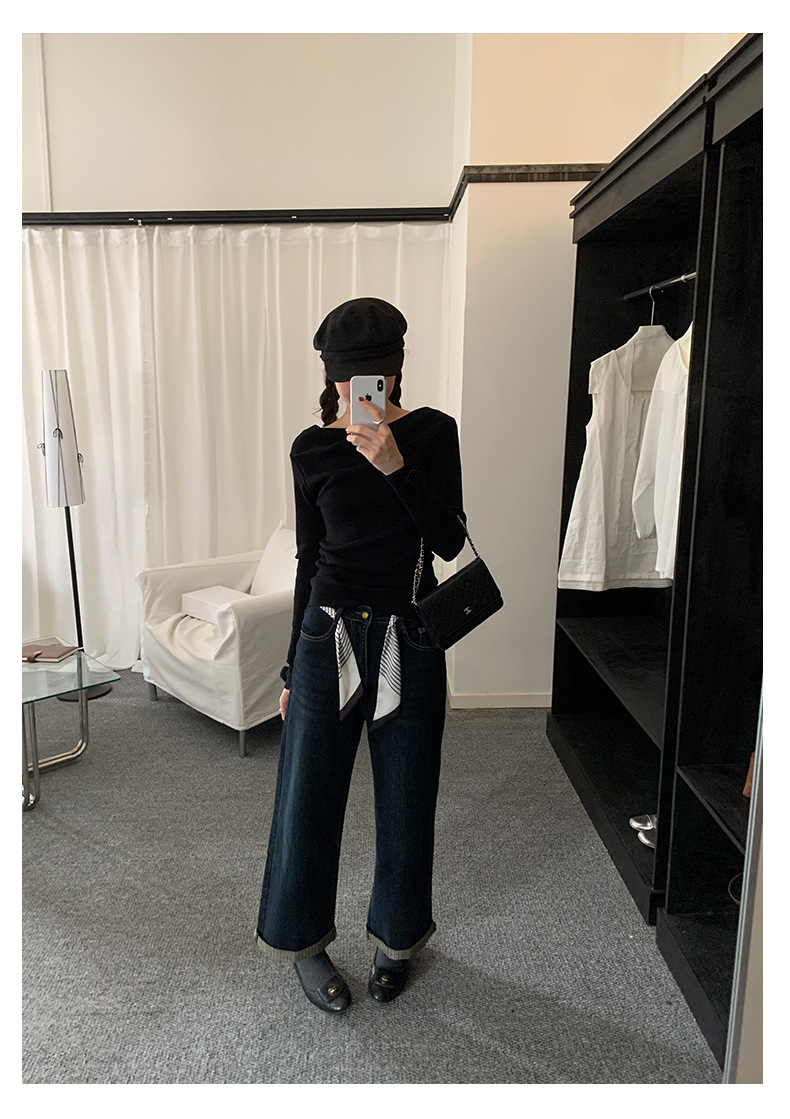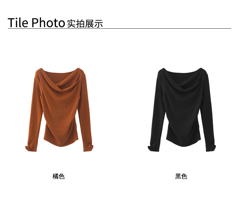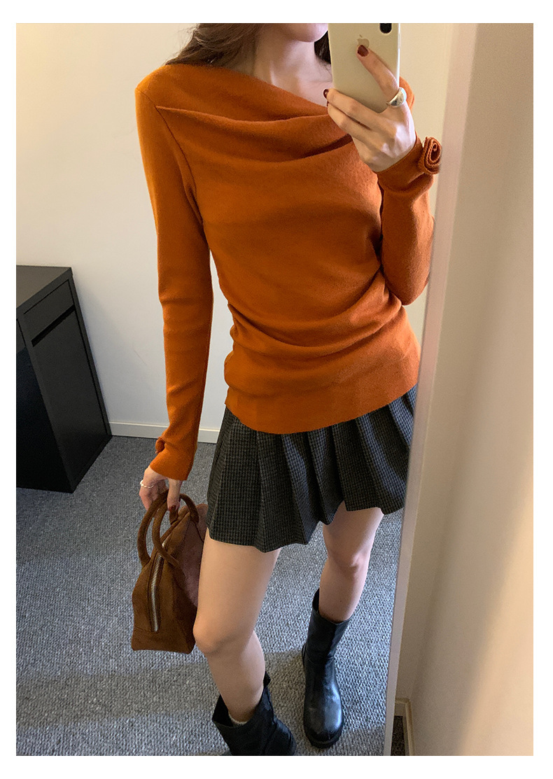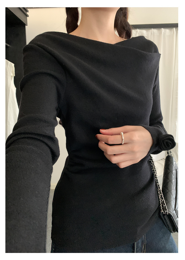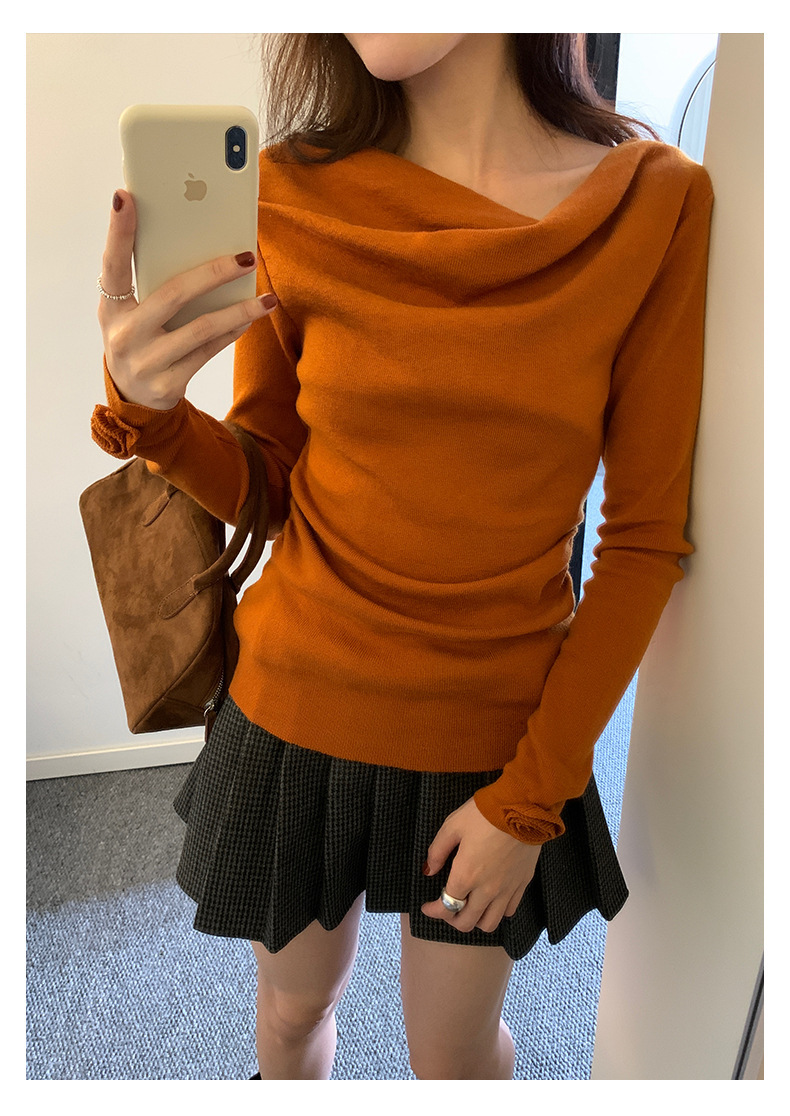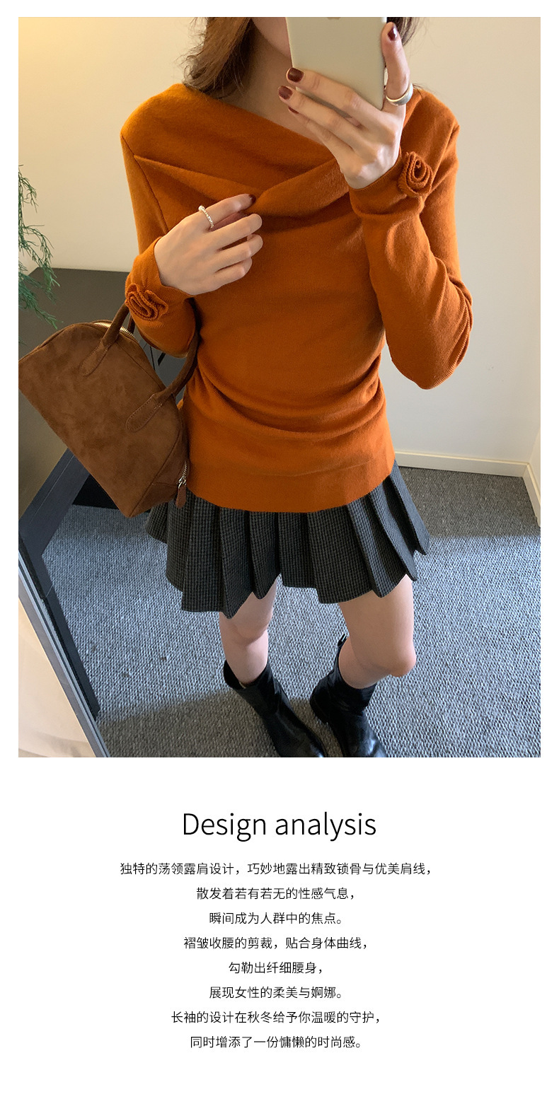 *o-ha-you*【FHZH1ED5041068】辣妹蕩領露肩長袖毛針織衫女秋冬褶皺收腰打底內搭毛衣-2色