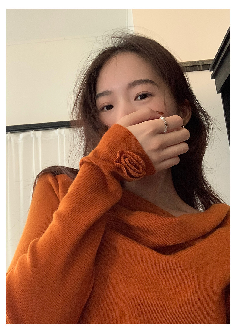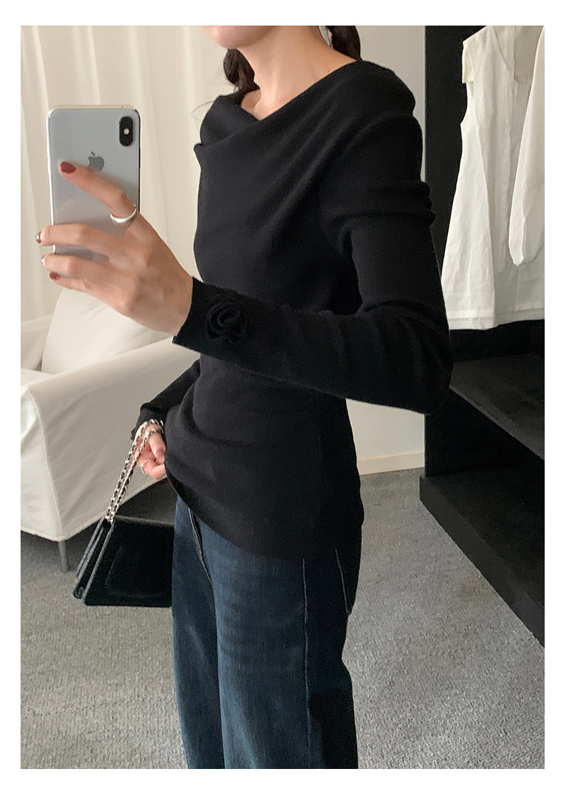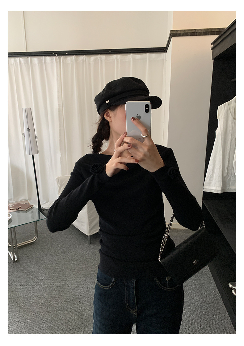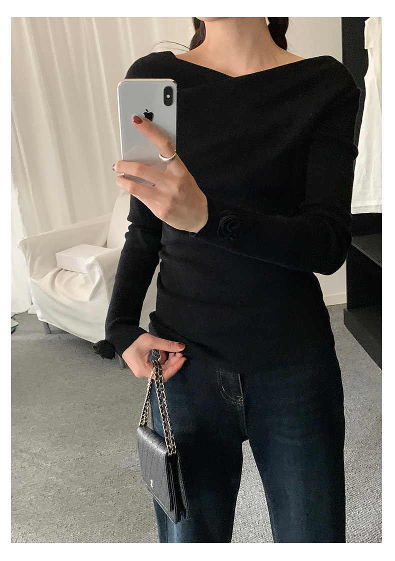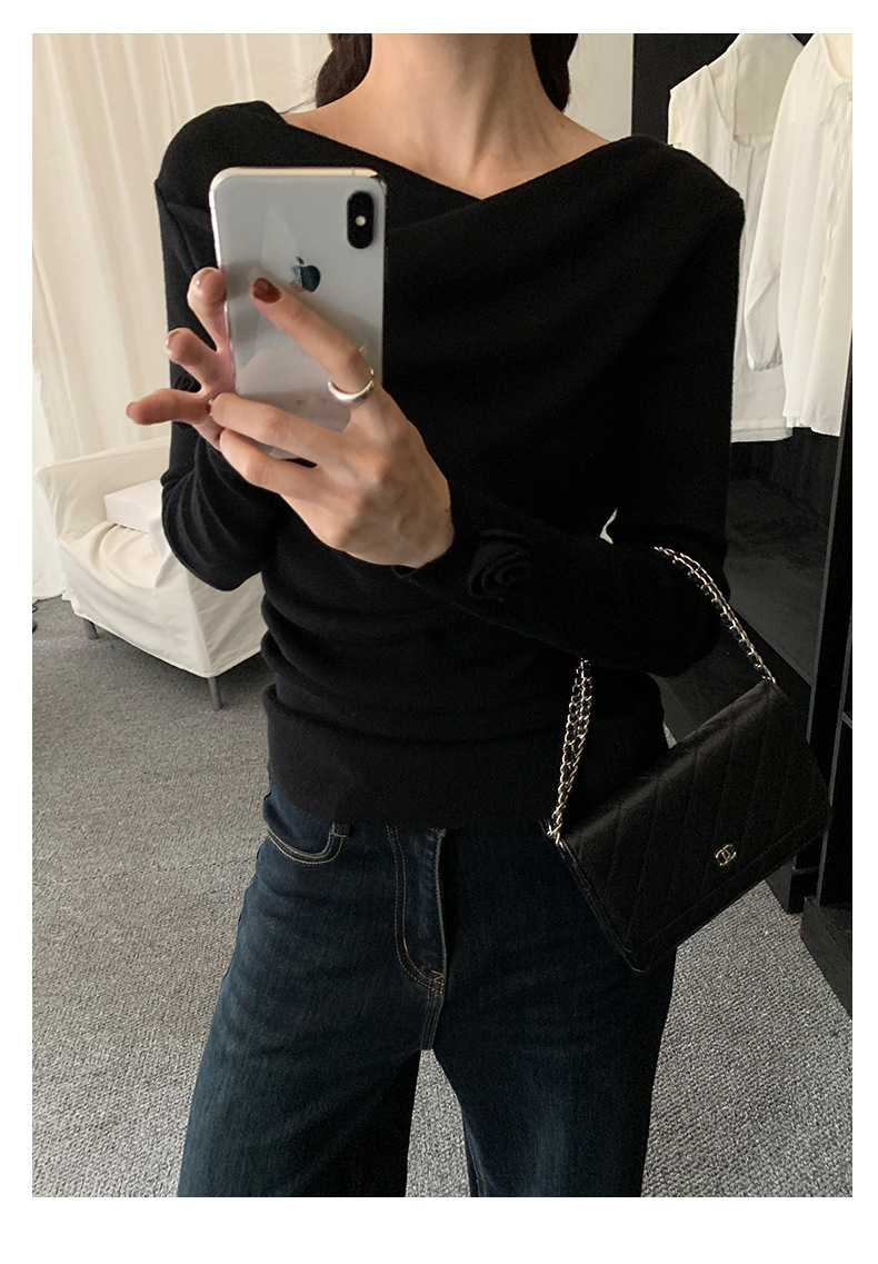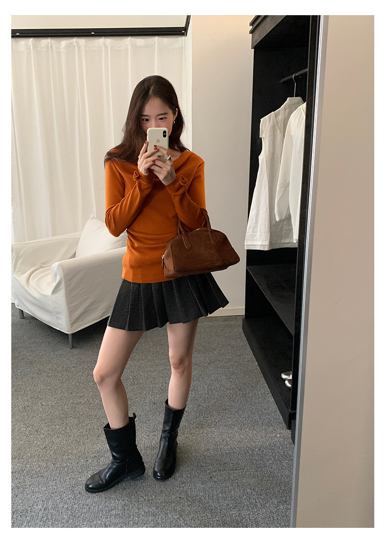 *o-ha-you*【FHZH1ED5041068】辣妹蕩領露肩長袖毛針織衫女秋冬褶皺收腰打底內搭毛衣-2色