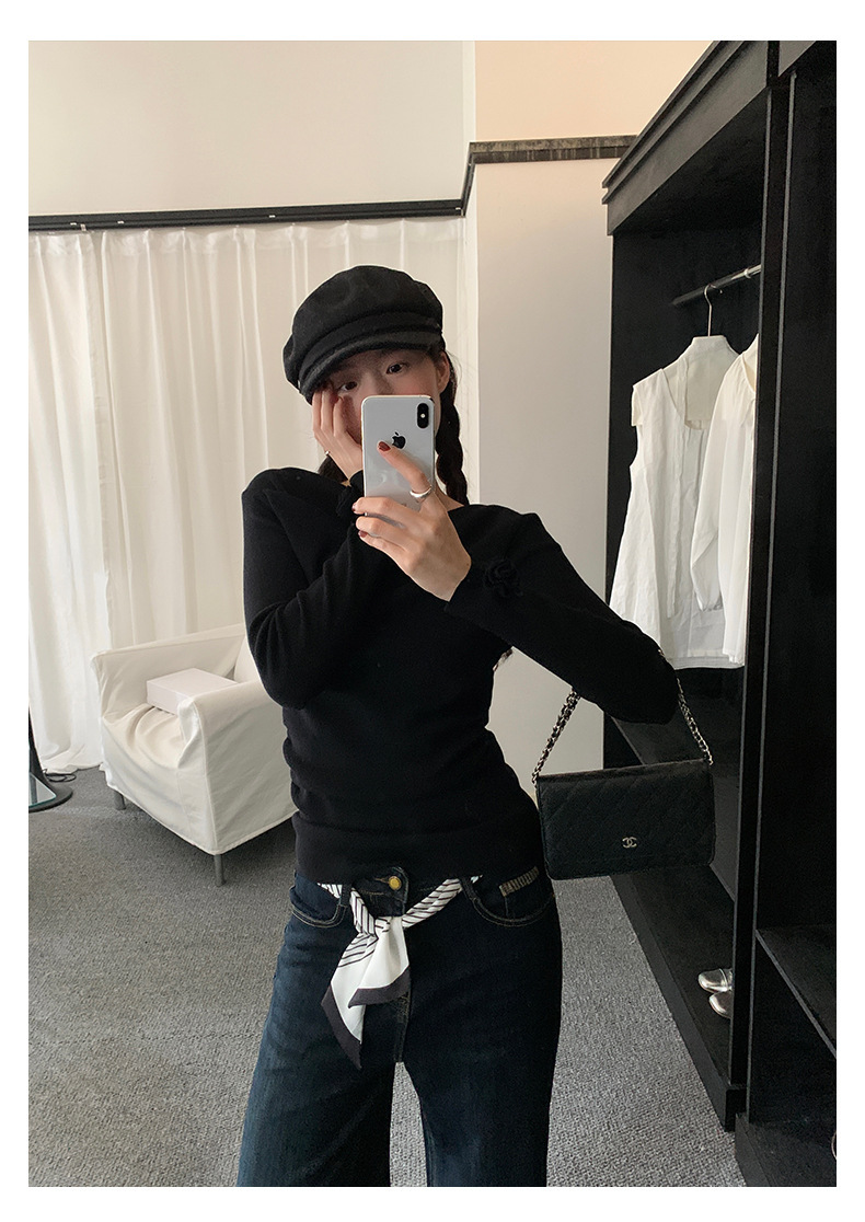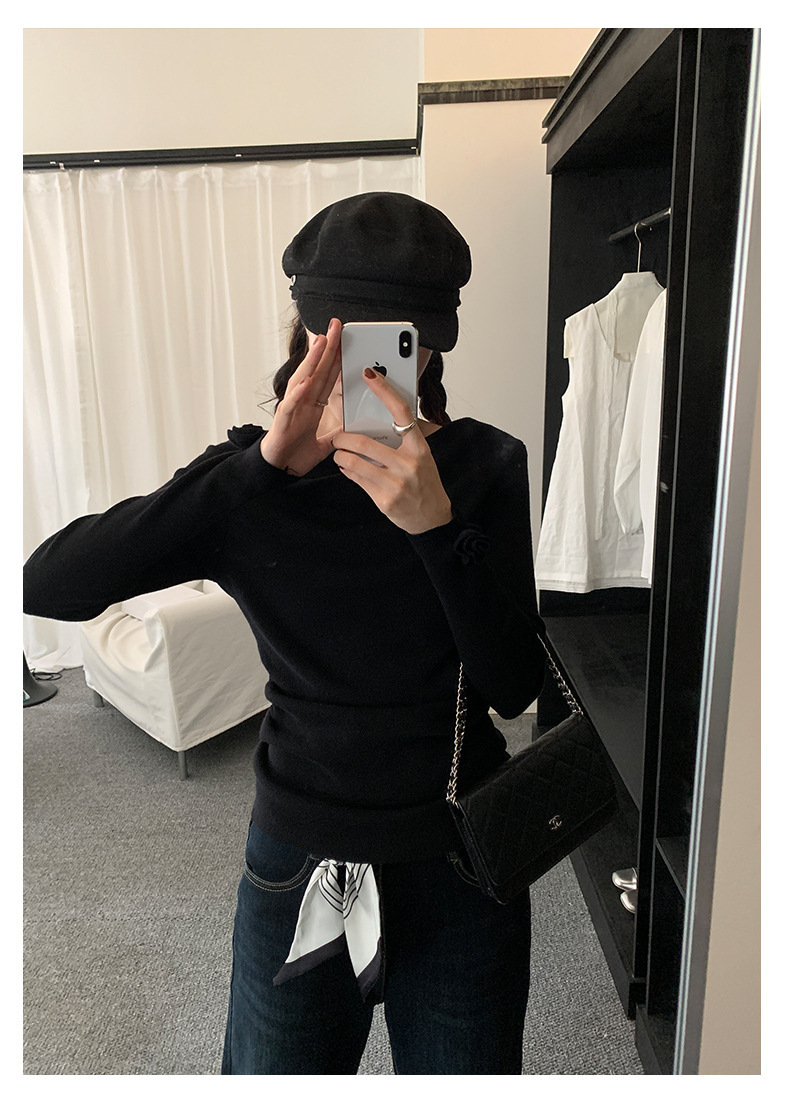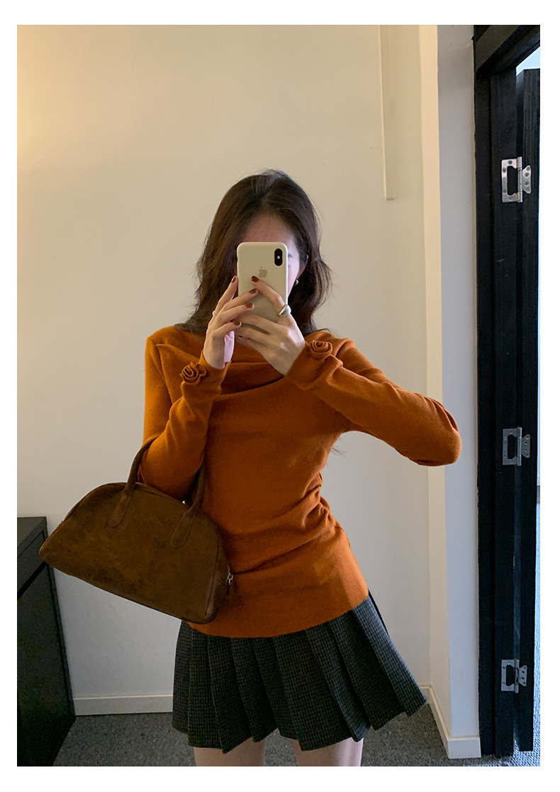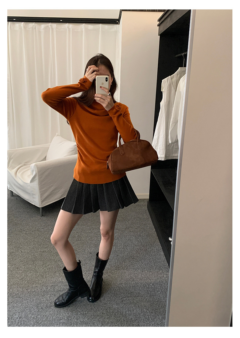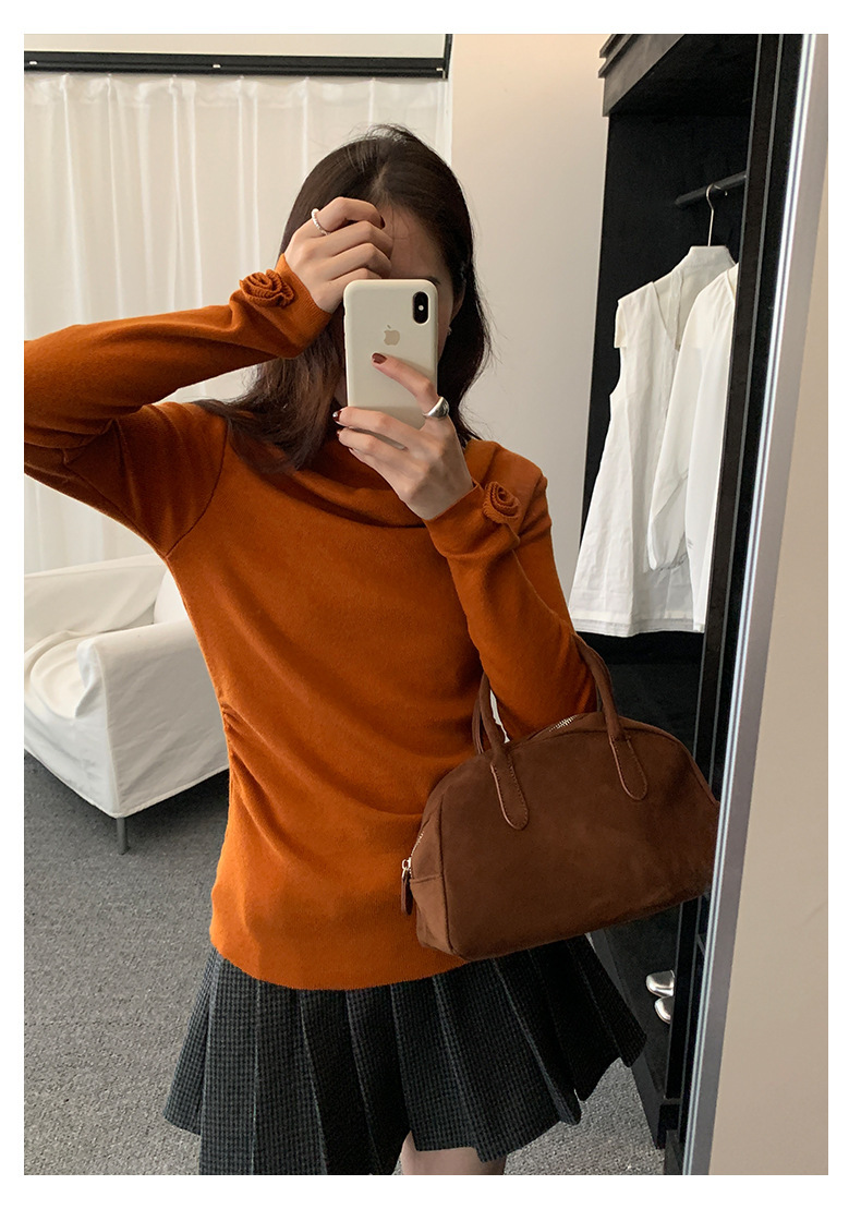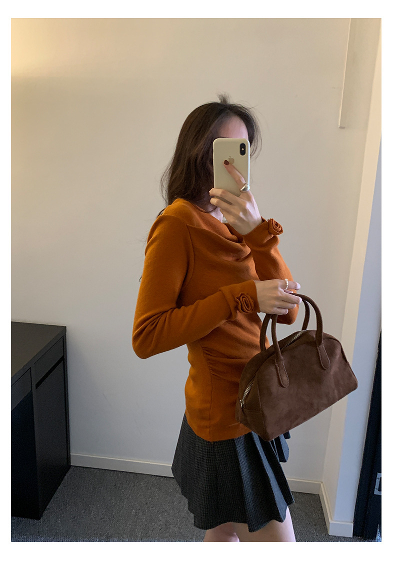 *o-ha-you*【FHZH1ED5041068】辣妹蕩領露肩長袖毛針織衫女秋冬褶皺收腰打底內搭毛衣-2色