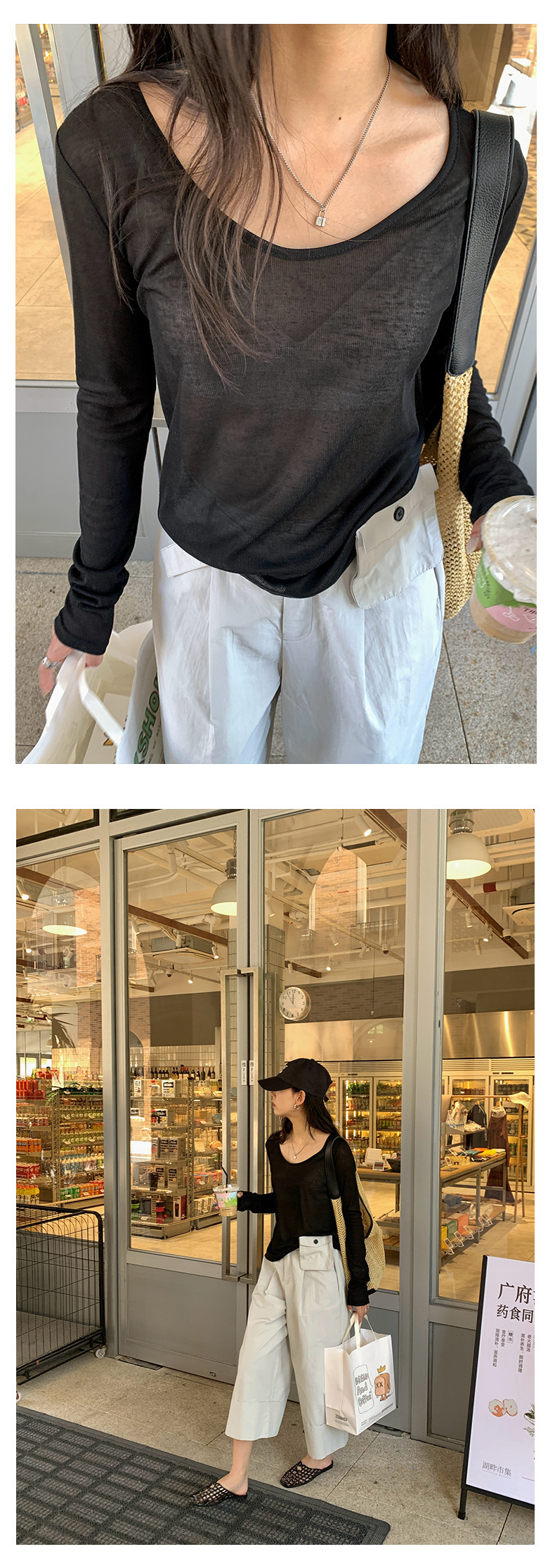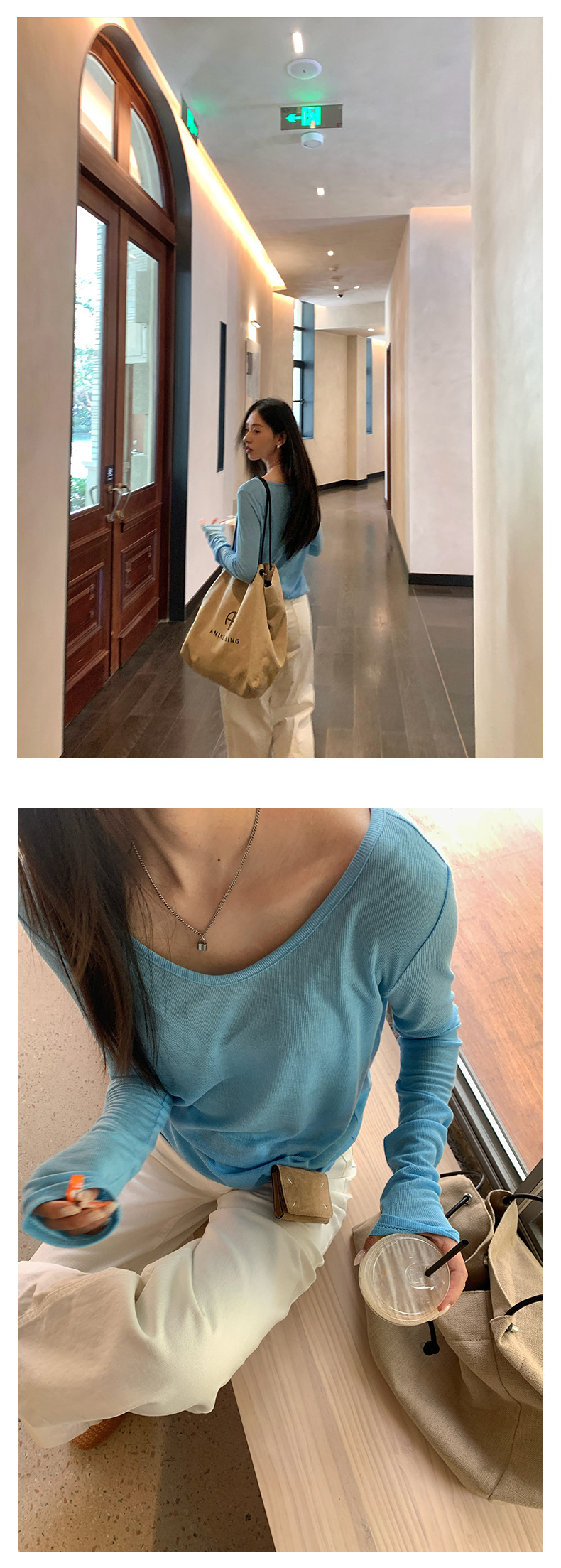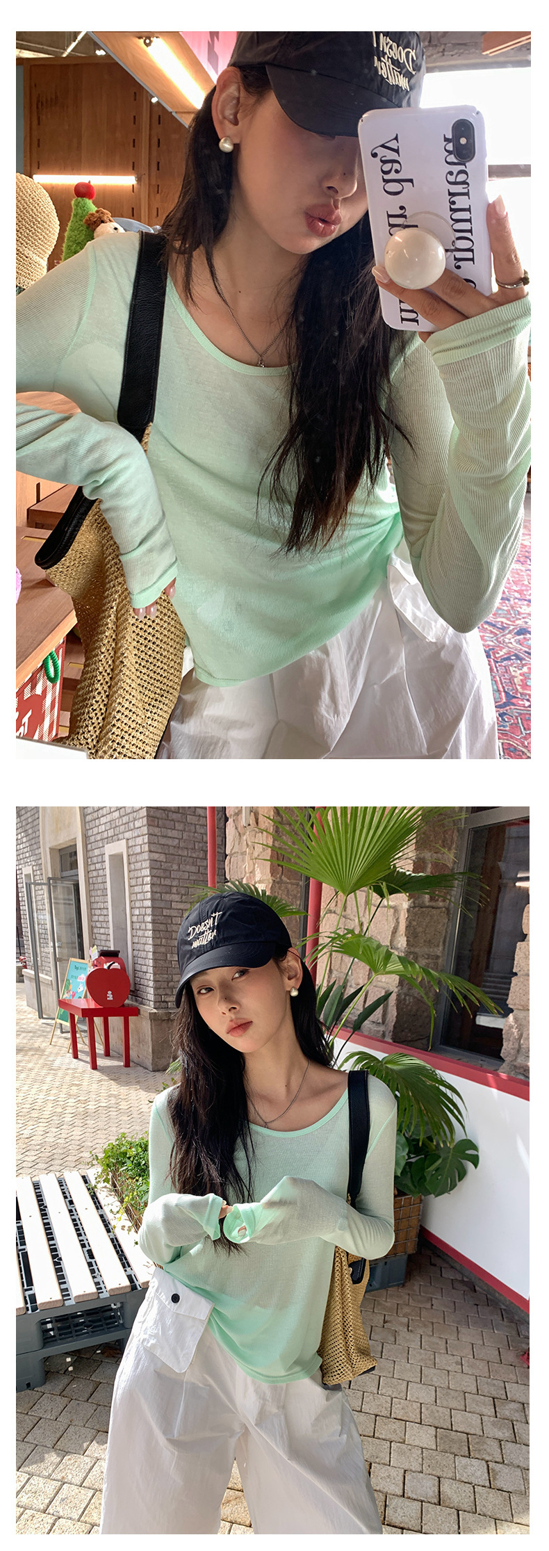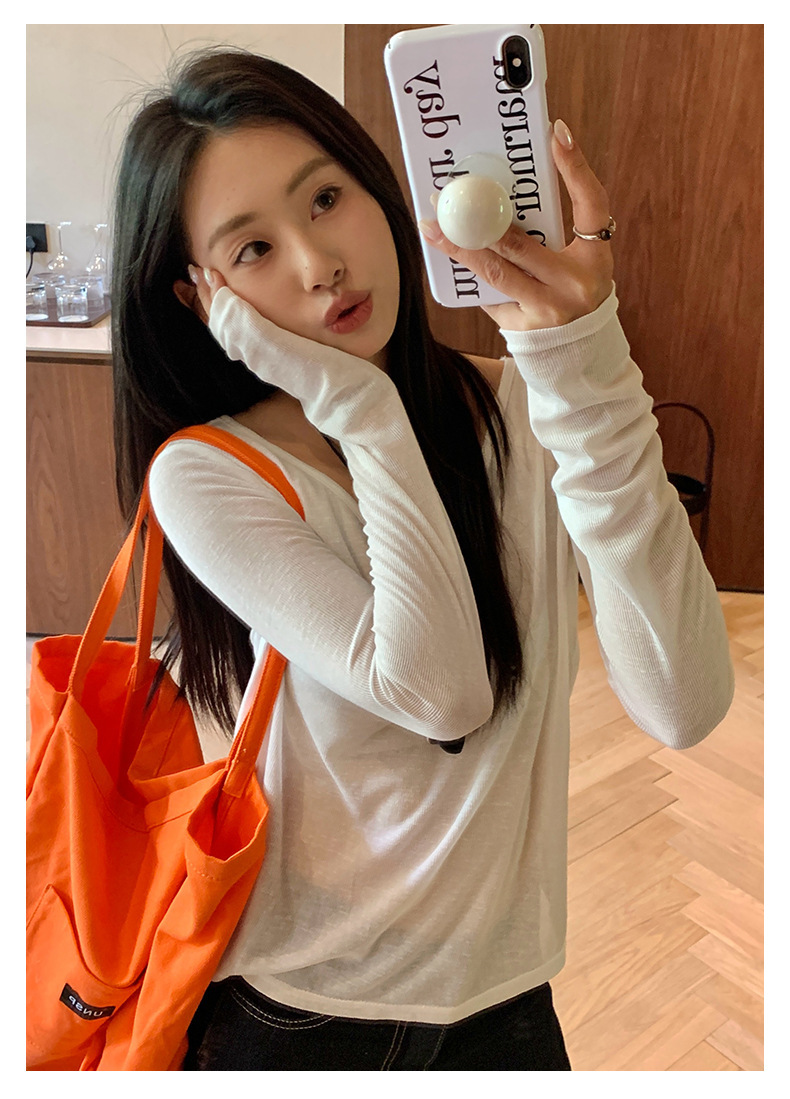*o-ha-you*【FHZH1EE5020422】紋理修身顯瘦V領針織長袖打底衫女2025夏簡約時尚上衣-4色-如有需要請先諮詢