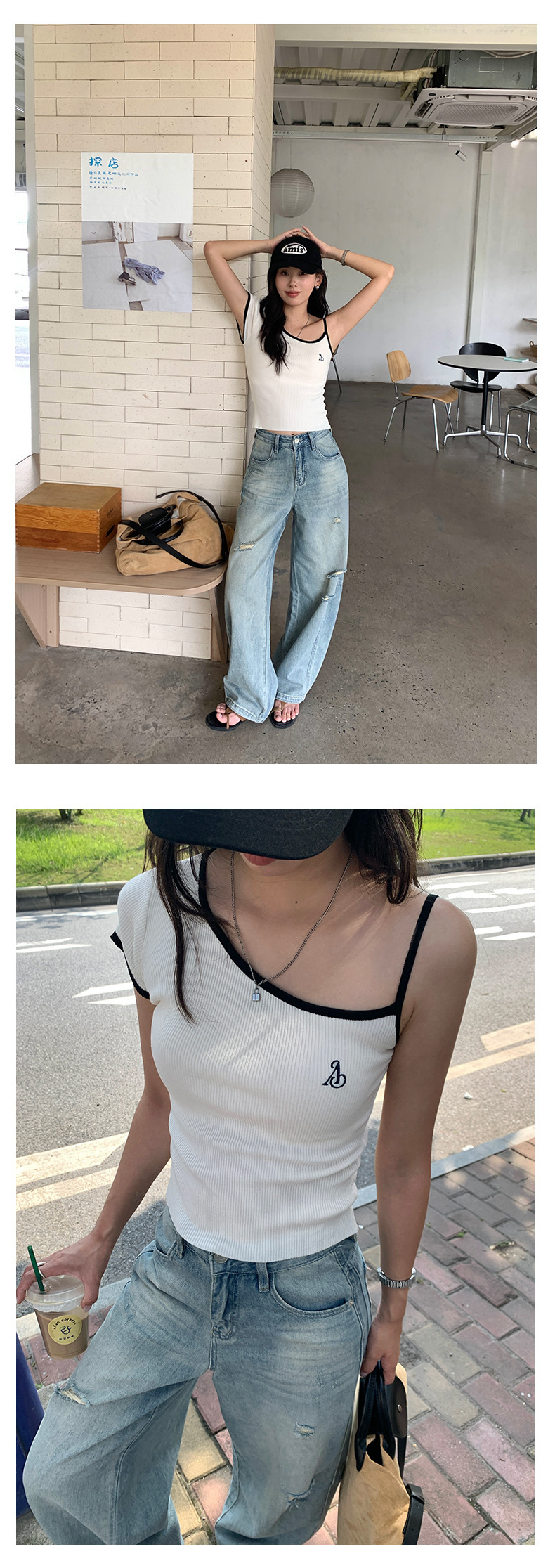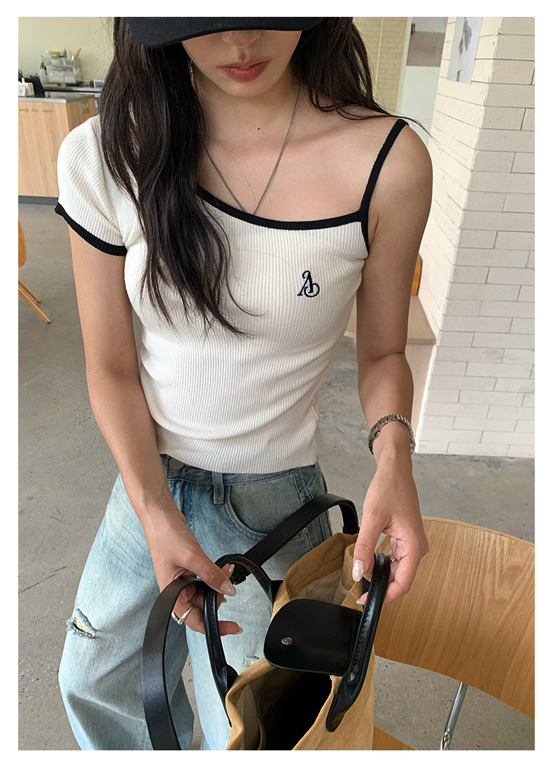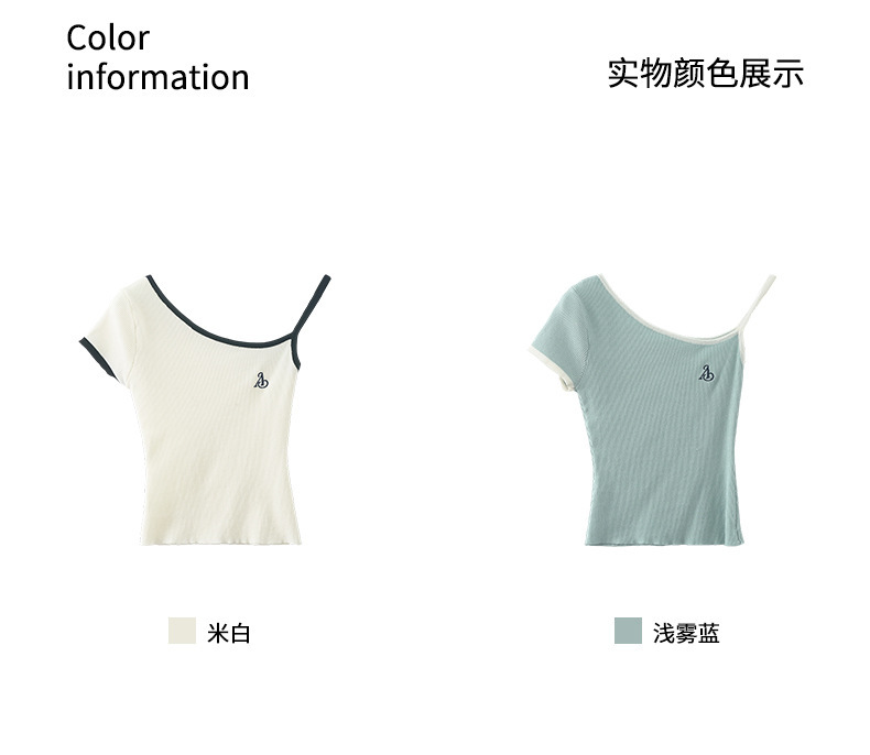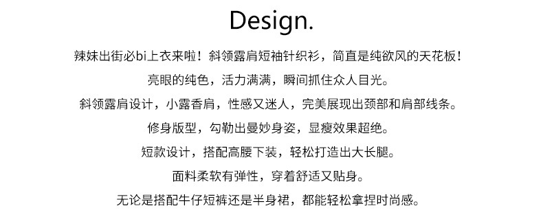 *o-ha-you*【FHZH1EE5020508】韓系夏純欲辣妹斜領露肩短袖針織衫修身顯瘦短版上衣-2色-如有需要請先諮詢