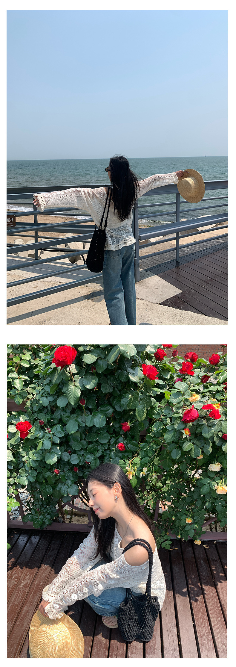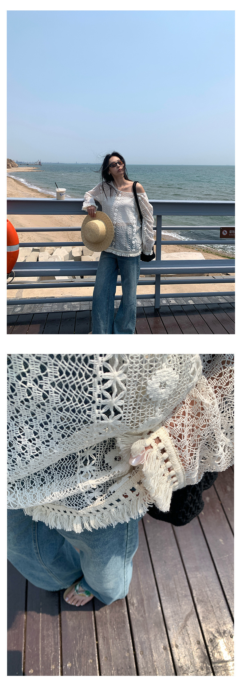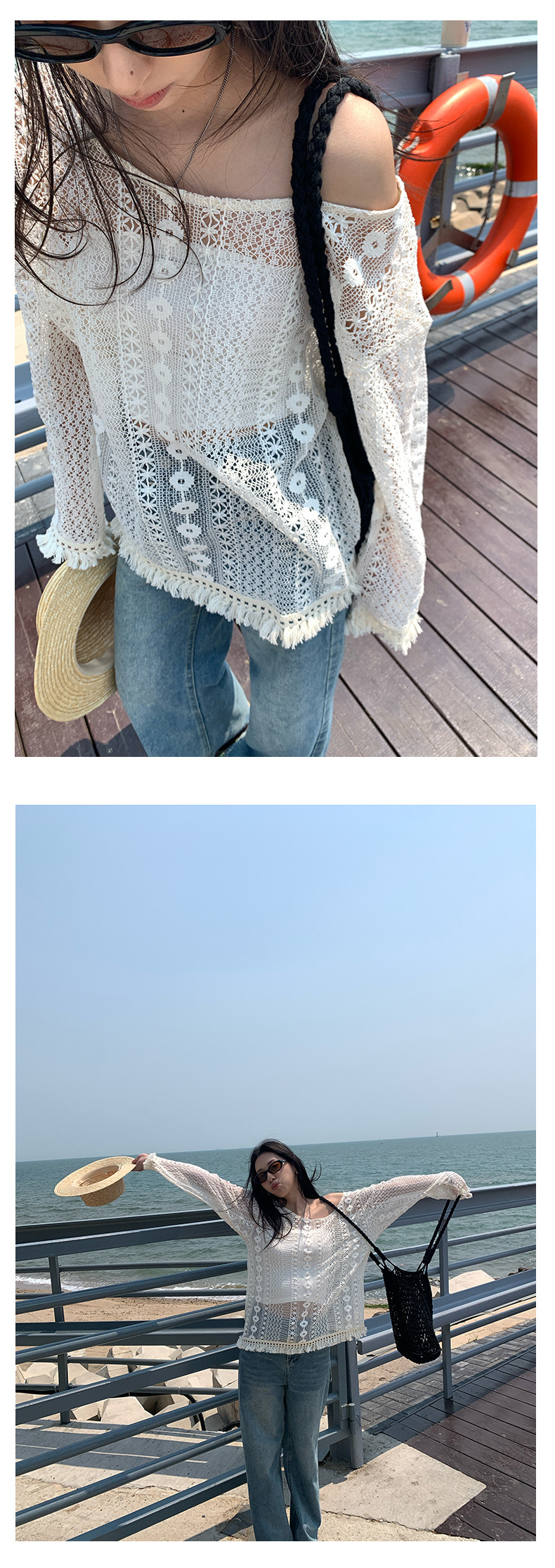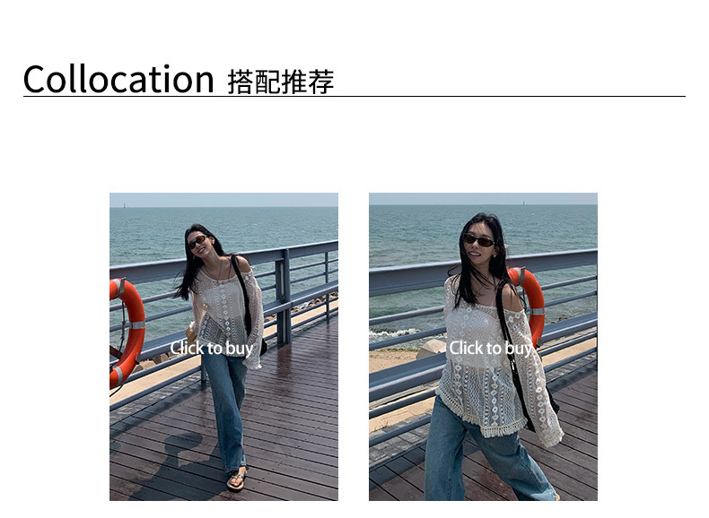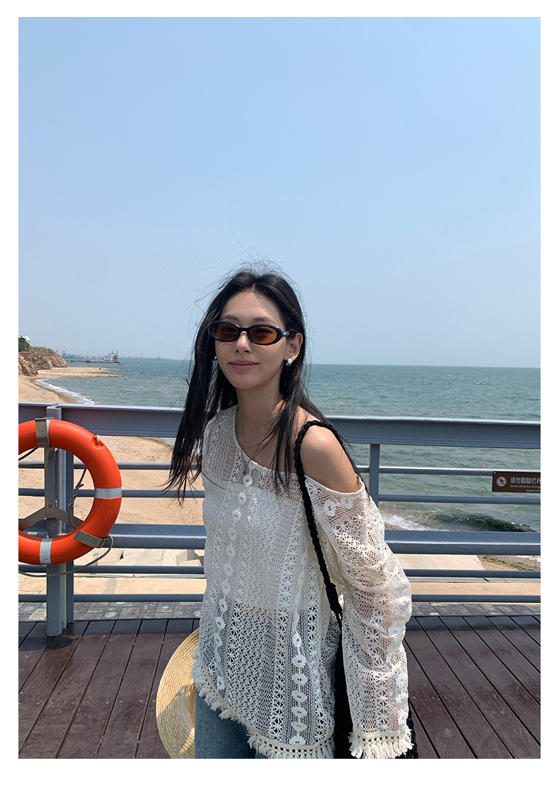 *o-ha-you*【FHZH1EE5020661】韓系新款鉤花防曬長袖上衣ins風鏤空針織長袖T恤衫