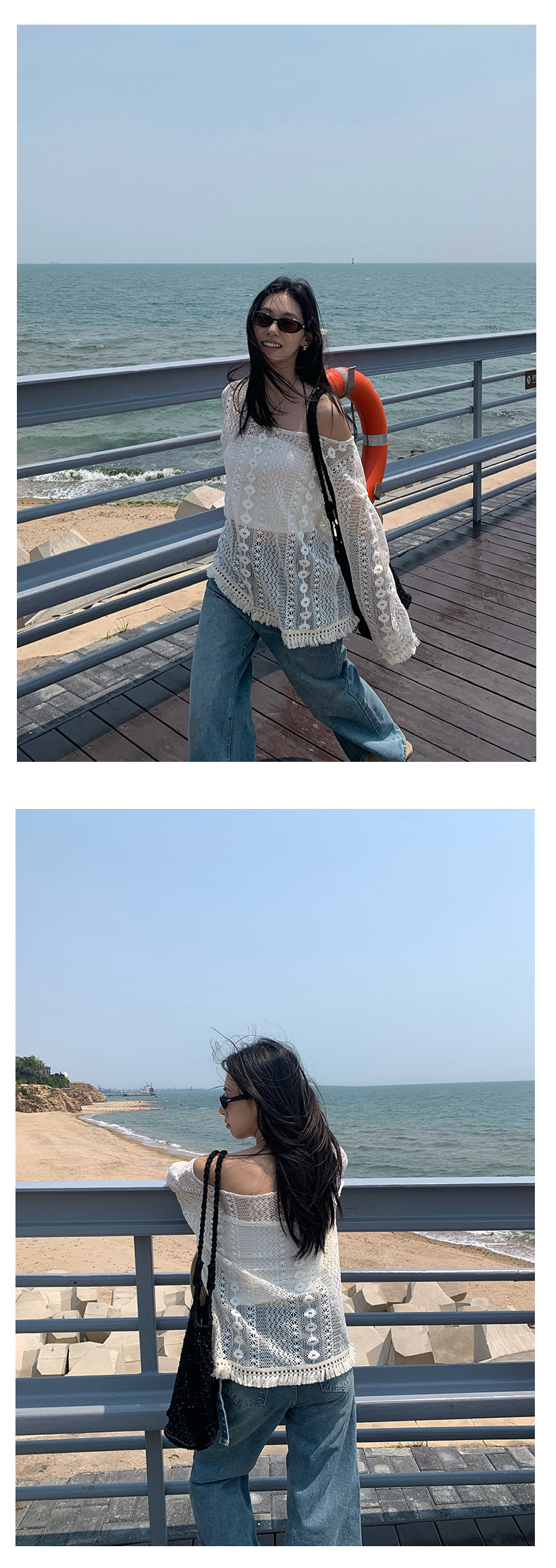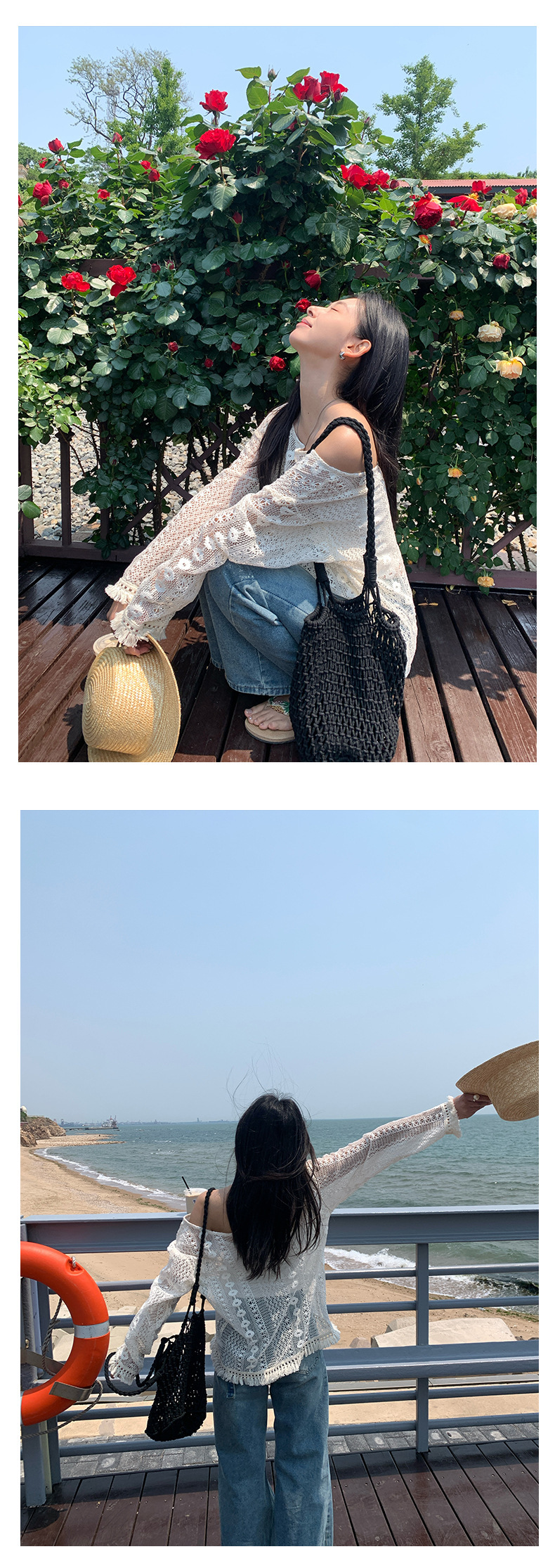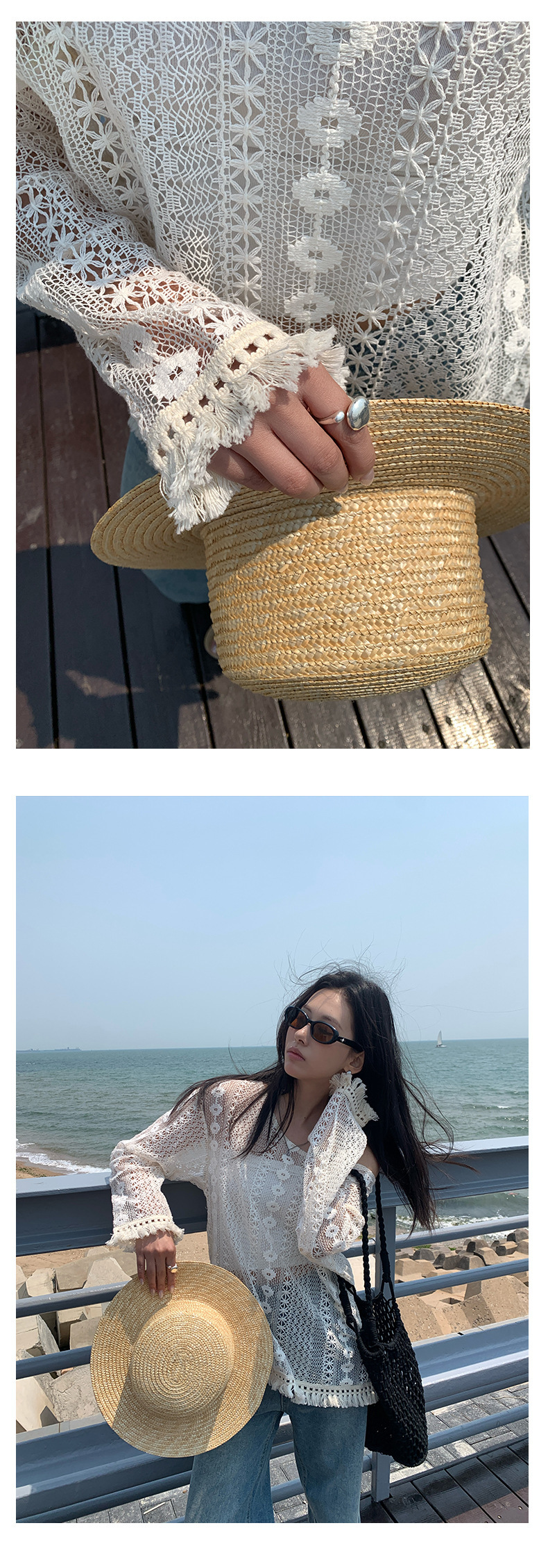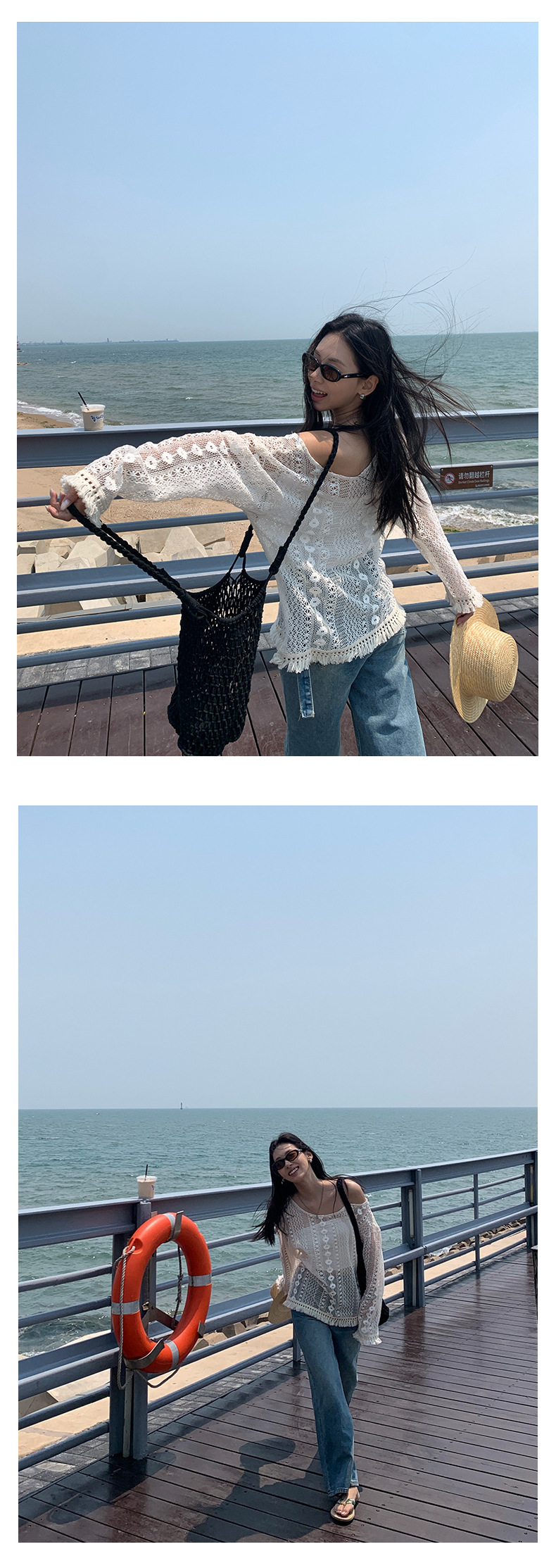 *o-ha-you*【FHZH1EE5020661】韓系新款鉤花防曬長袖上衣ins風鏤空針織長袖T恤衫