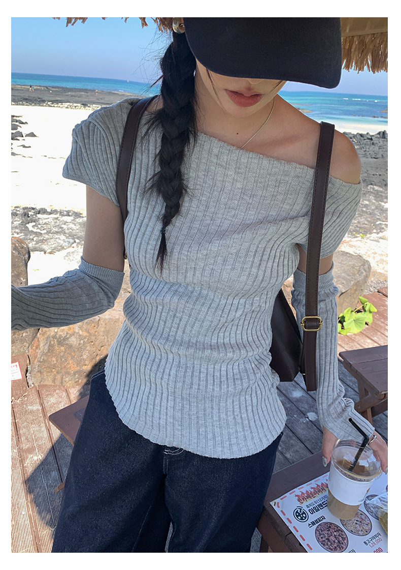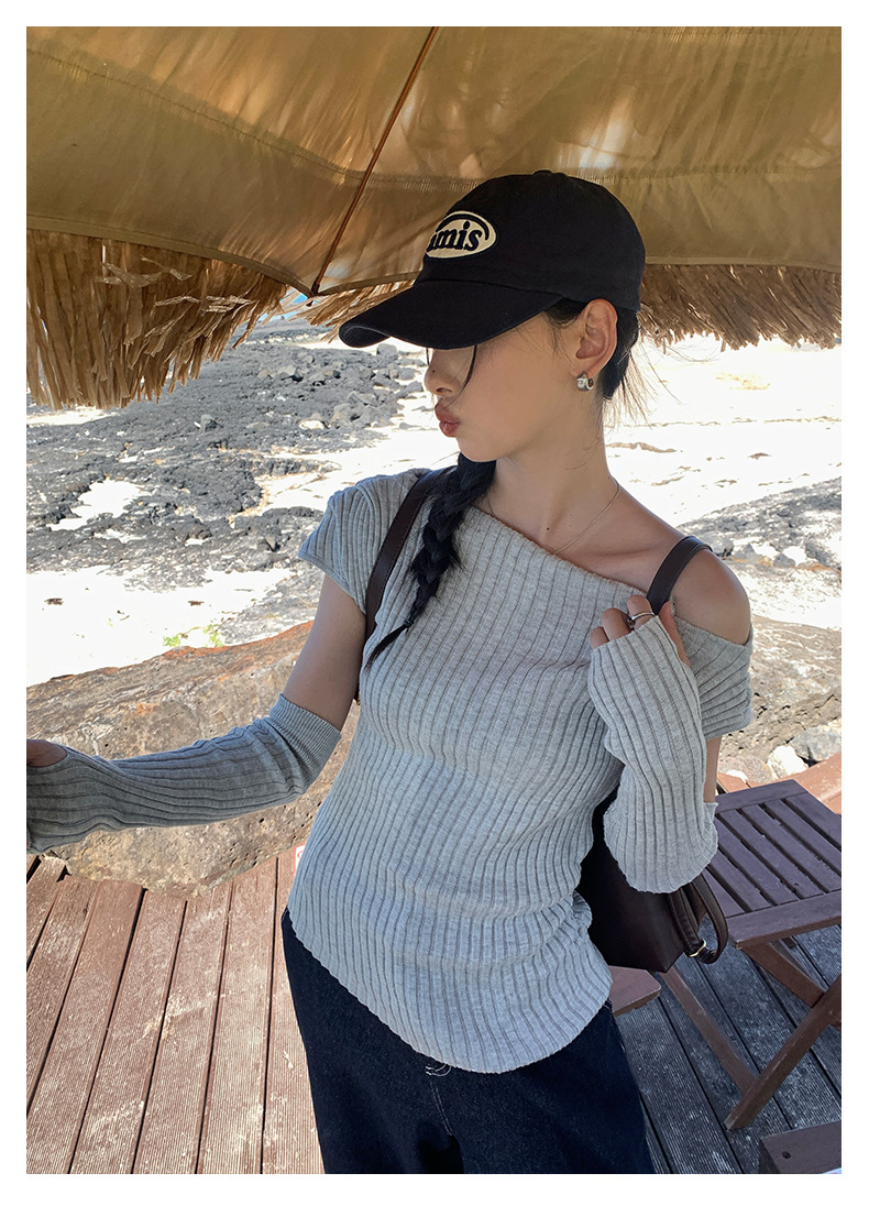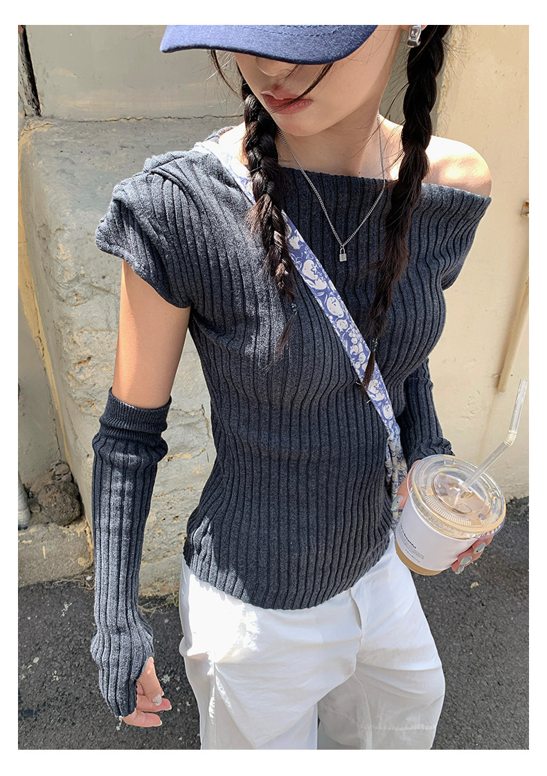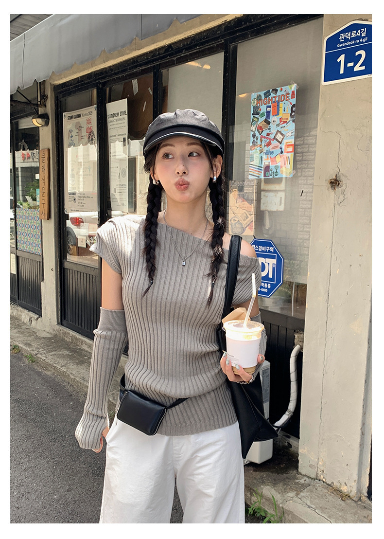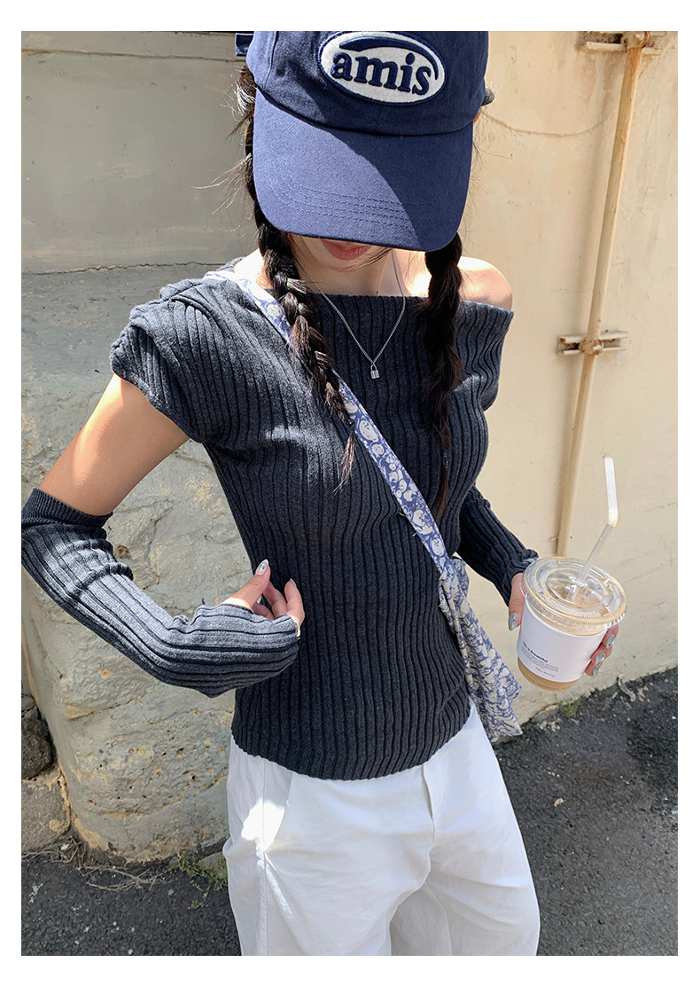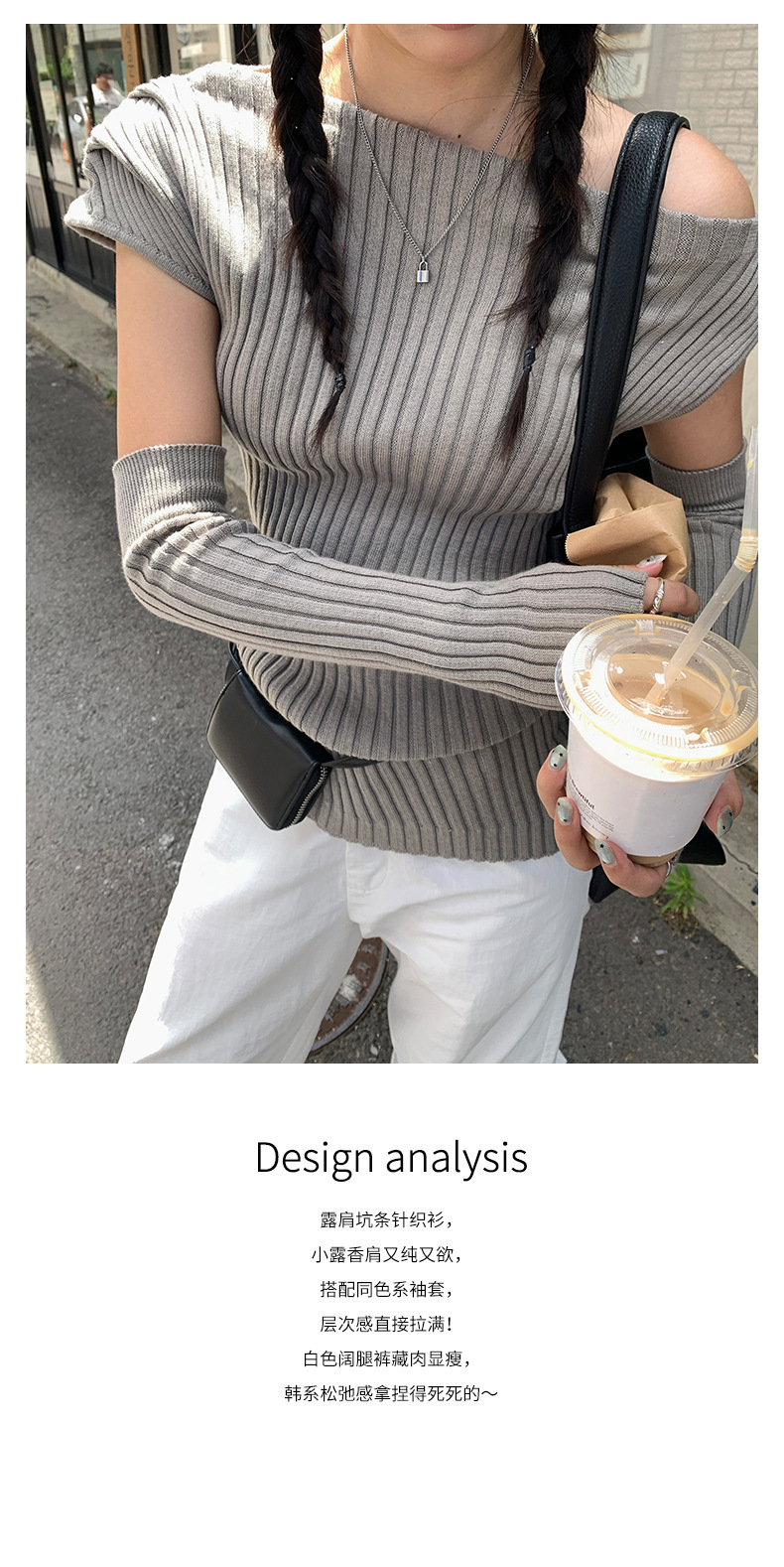 *o-ha-you*【FHZH1EE5030052】韓系早秋穿搭斜領露肩設計感配袖套針織上衣修身毛衣-3色