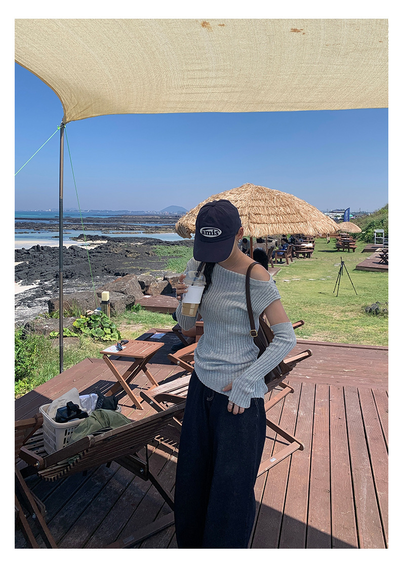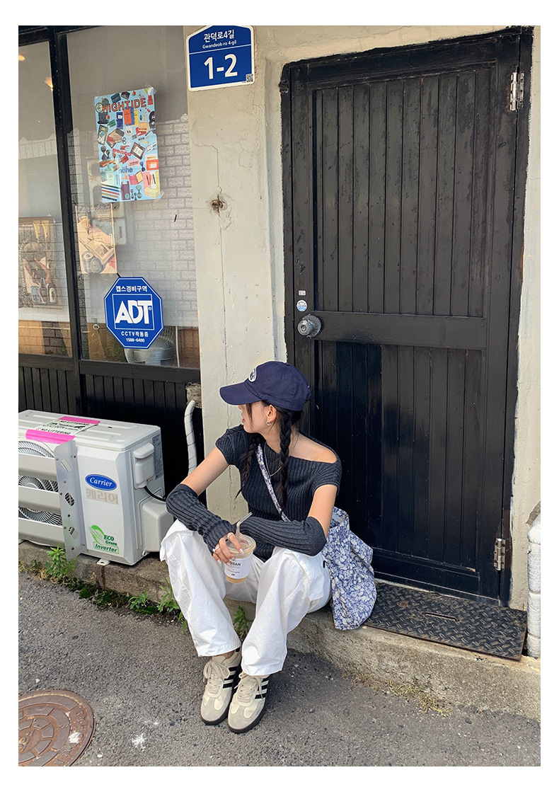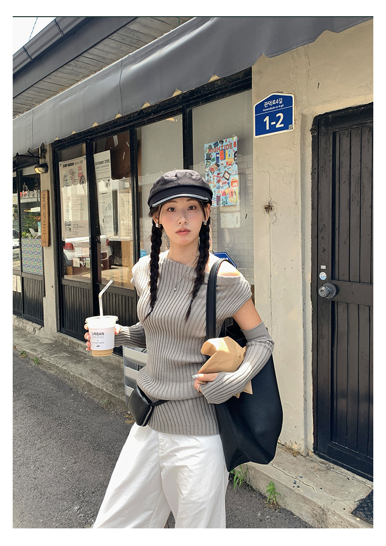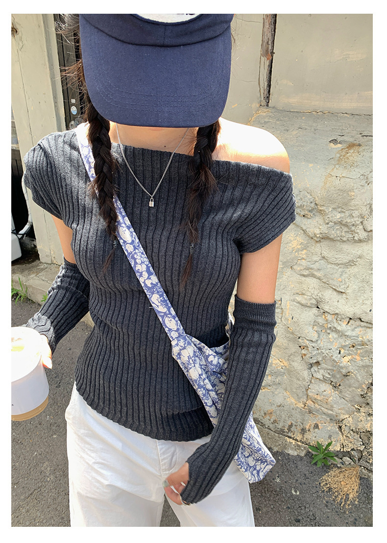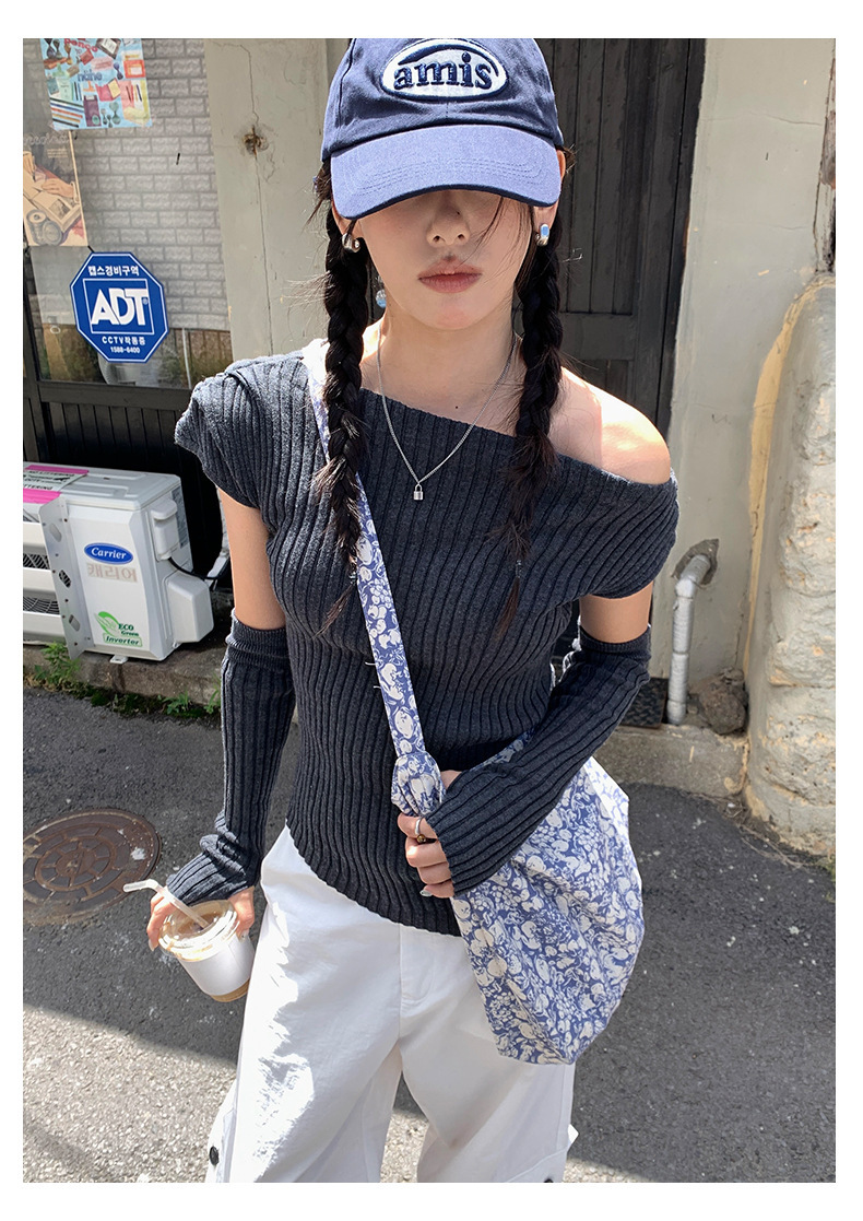*o-ha-you*【FHZH1EE5030052】韓系早秋穿搭斜領露肩設計感配袖套針織上衣修身毛衣-3色