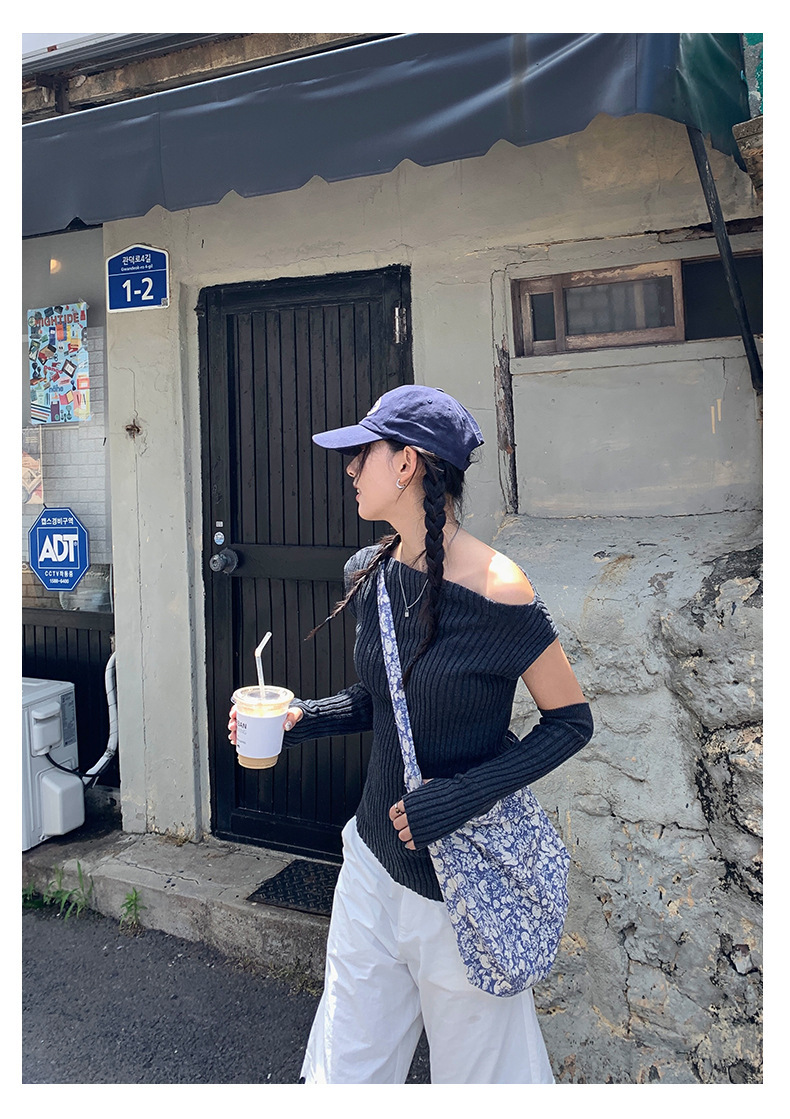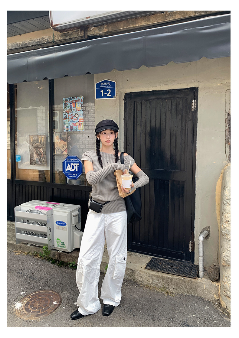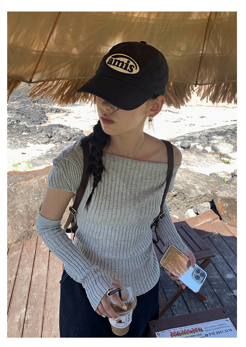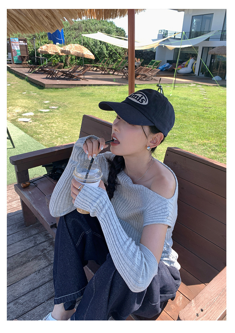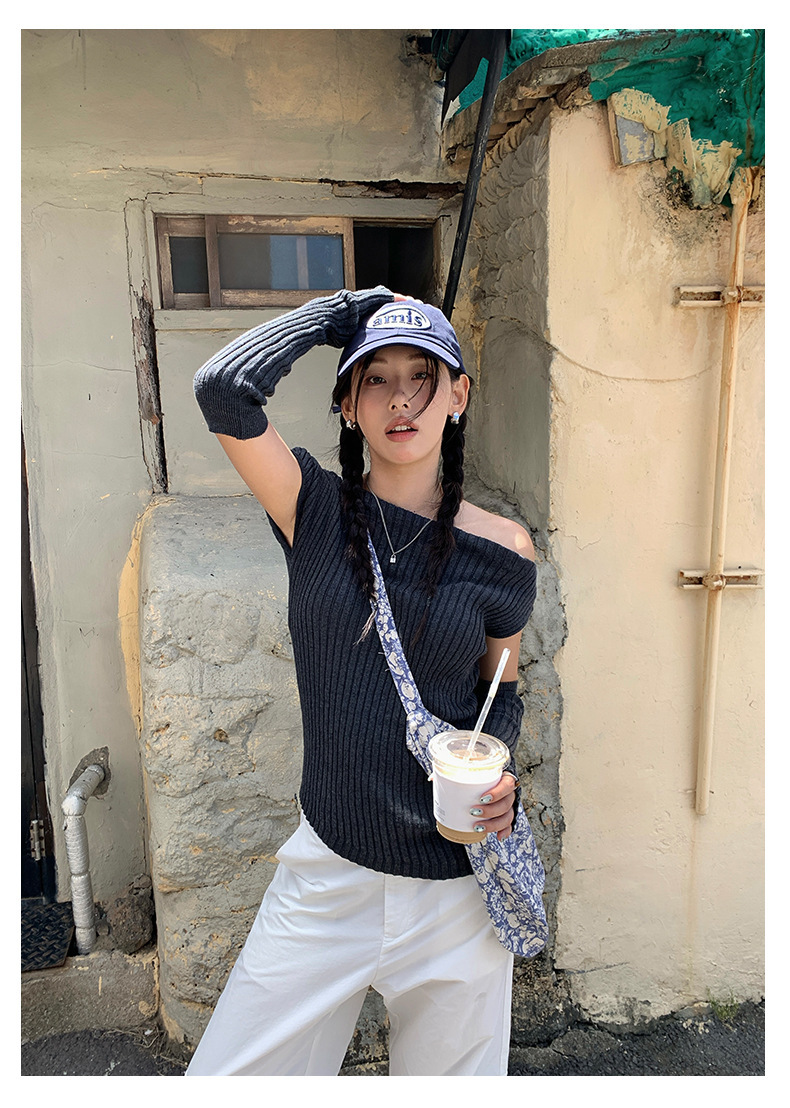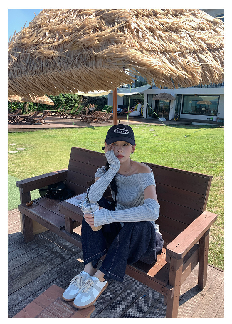 *o-ha-you*【FHZH1EE5030052】韓系早秋穿搭斜領露肩設計感配袖套針織上衣修身毛衣-3色