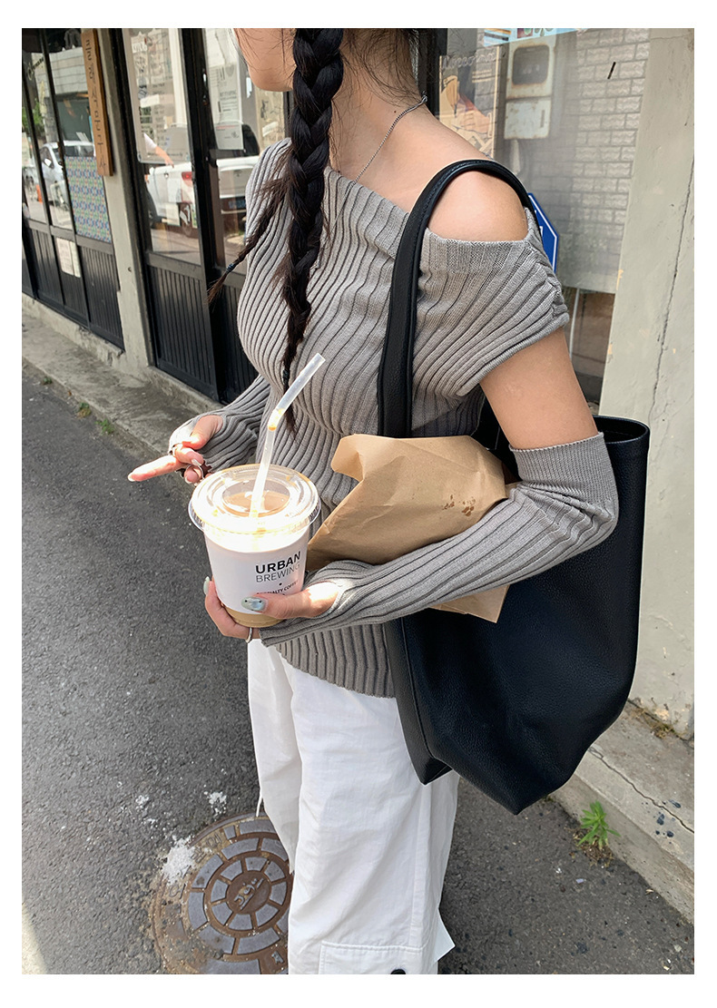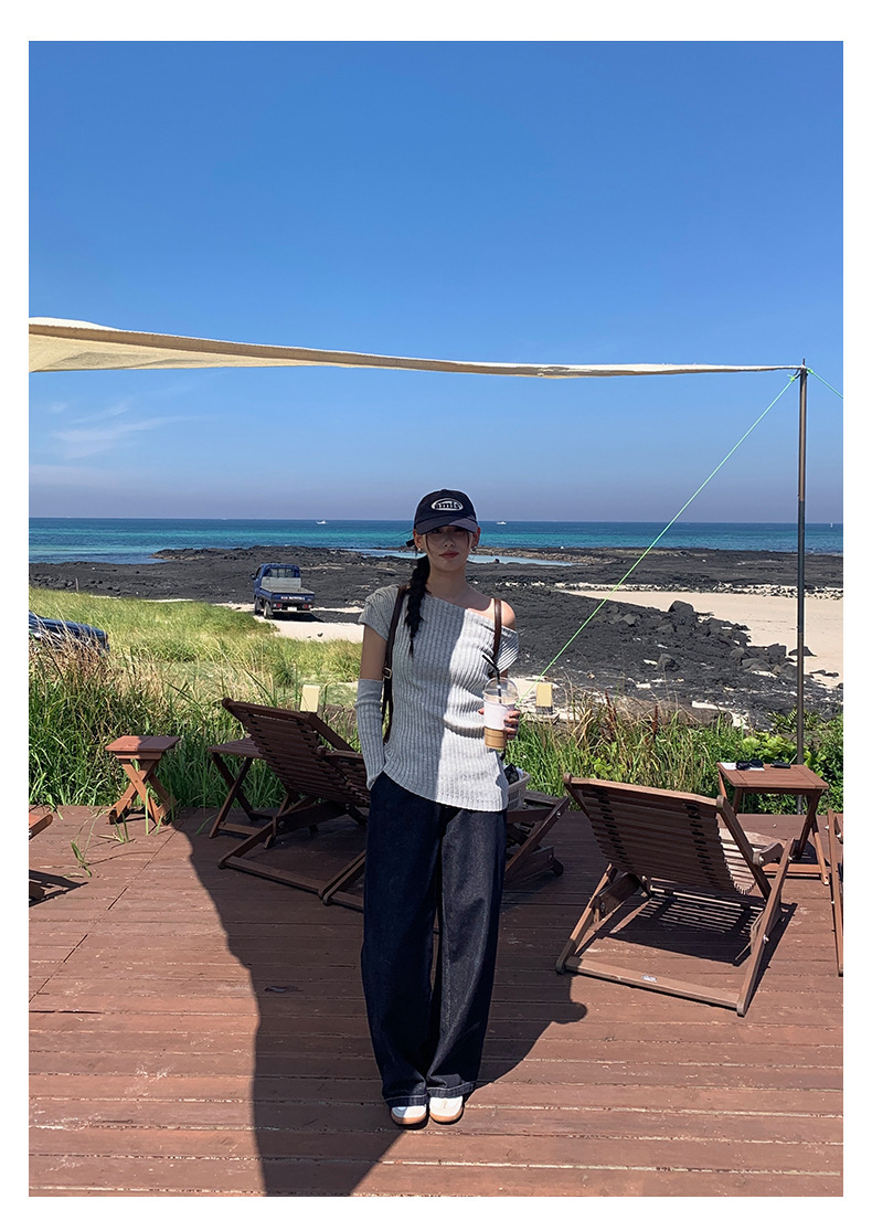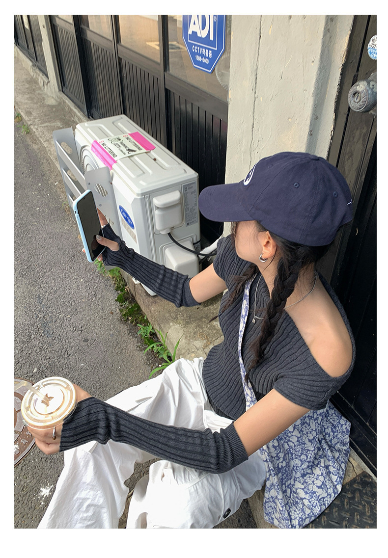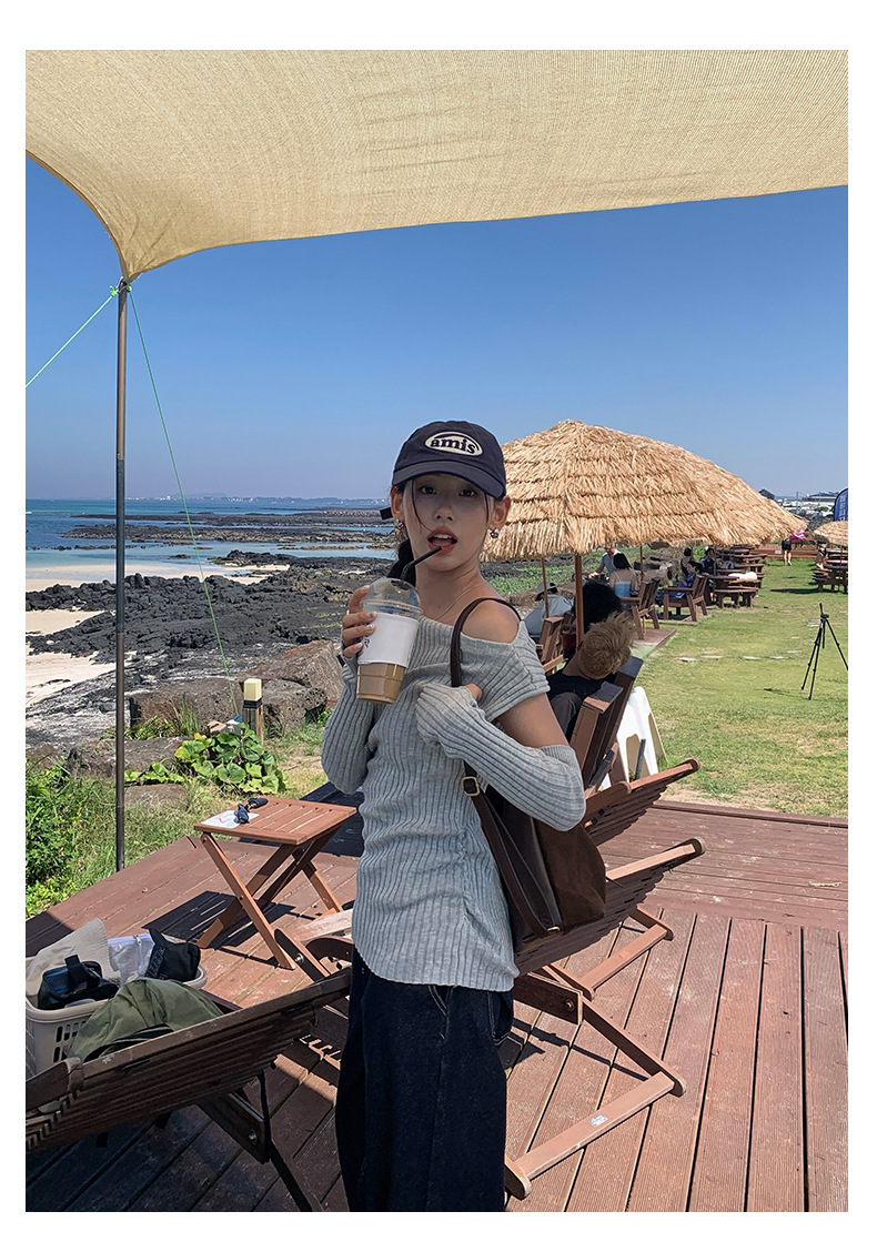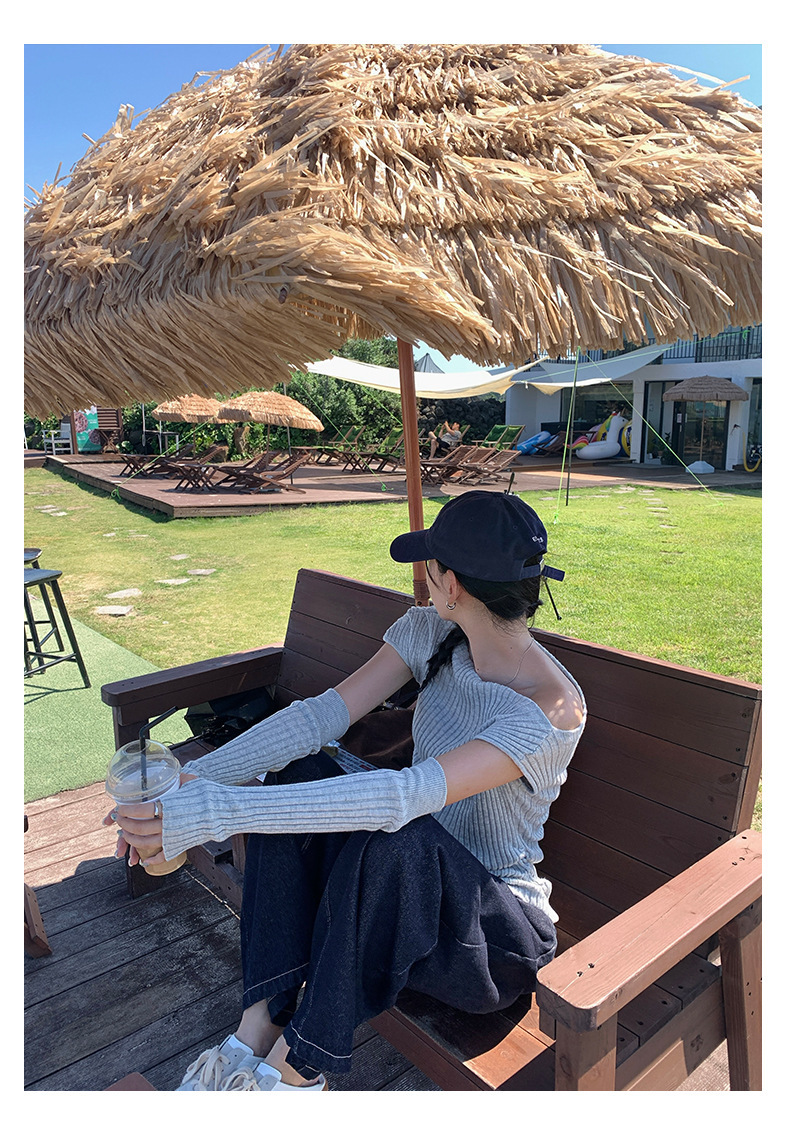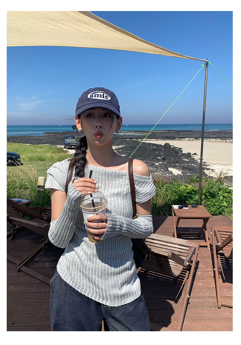 *o-ha-you*【FHZH1EE5030052】韓系早秋穿搭斜領露肩設計感配袖套針織上衣修身毛衣-3色
