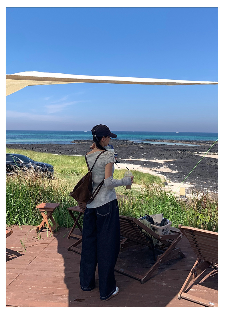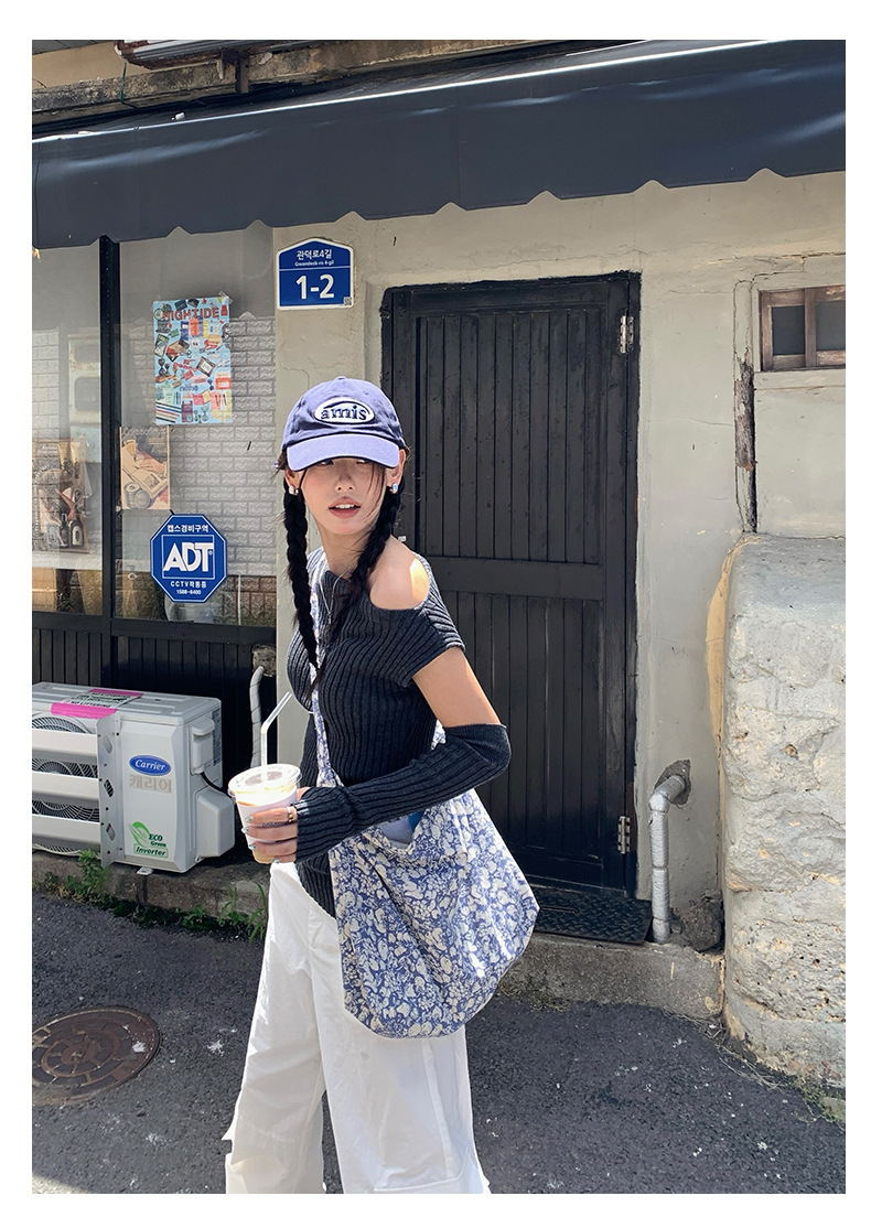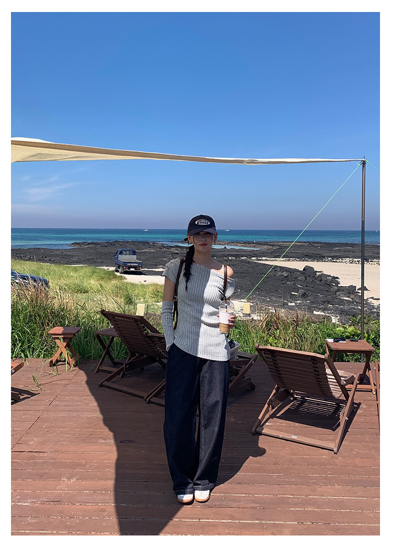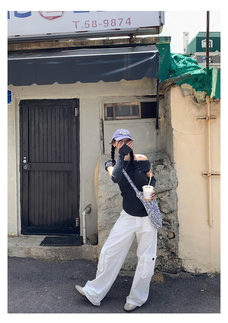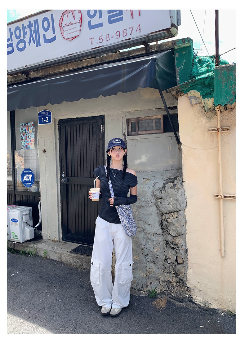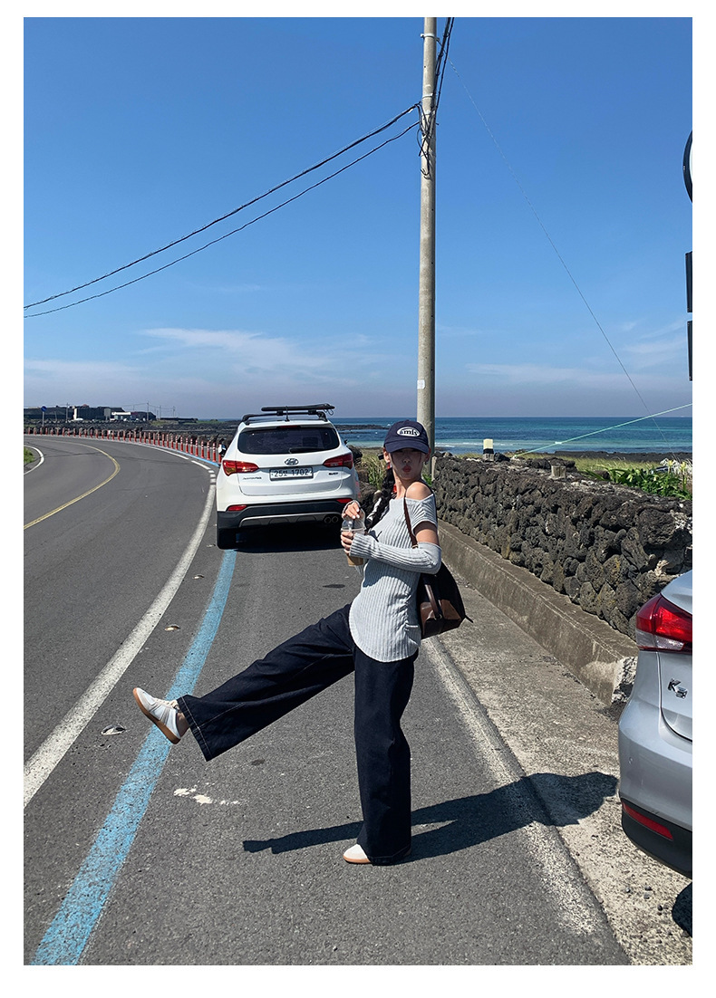 *o-ha-you*【FHZH1EE5030052】韓系早秋穿搭斜領露肩設計感配袖套針織上衣修身毛衣-3色