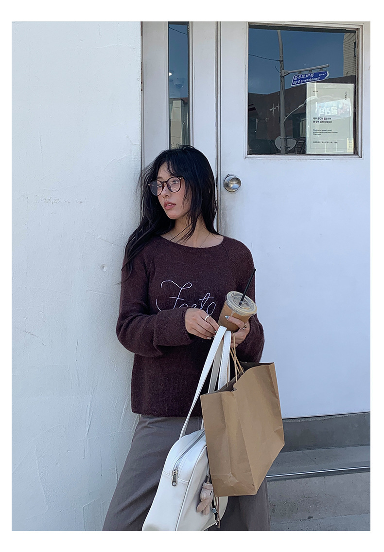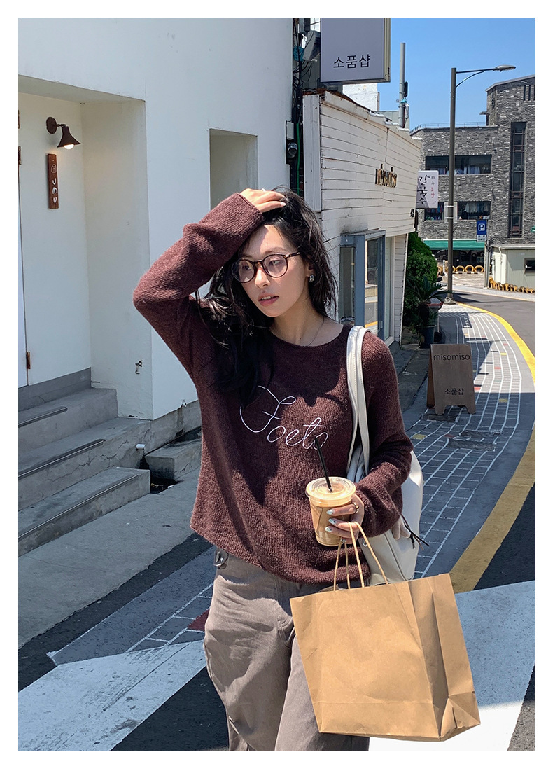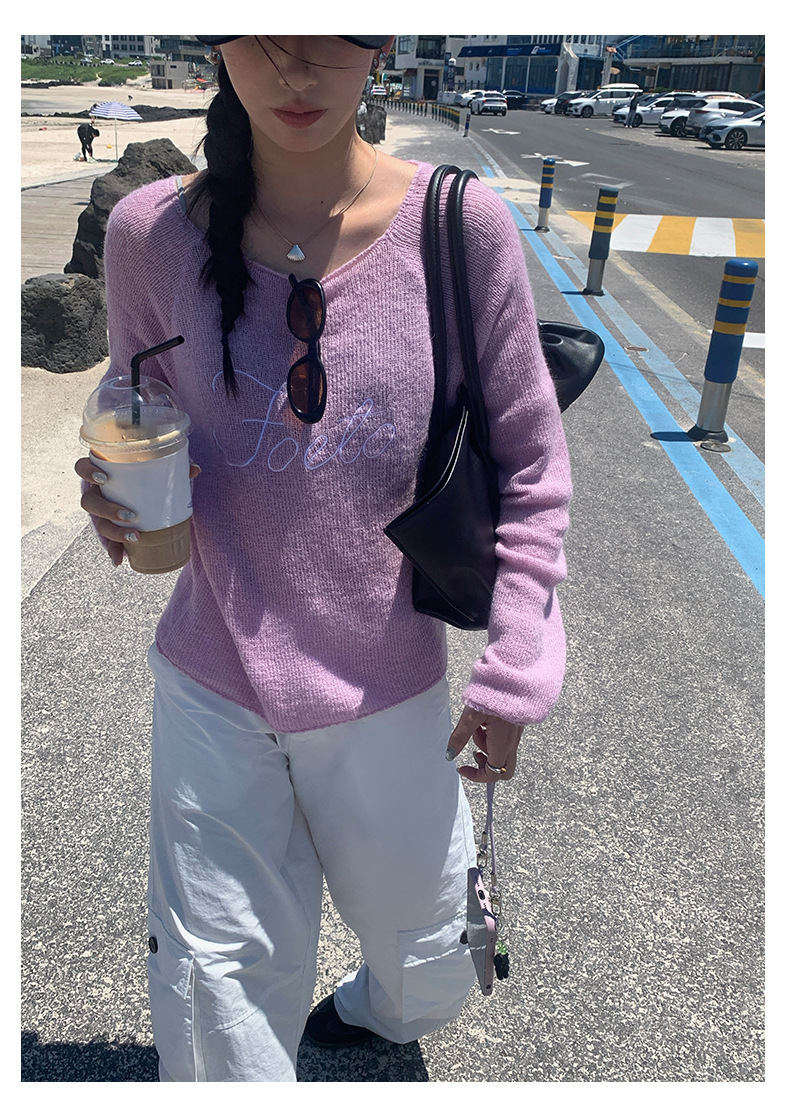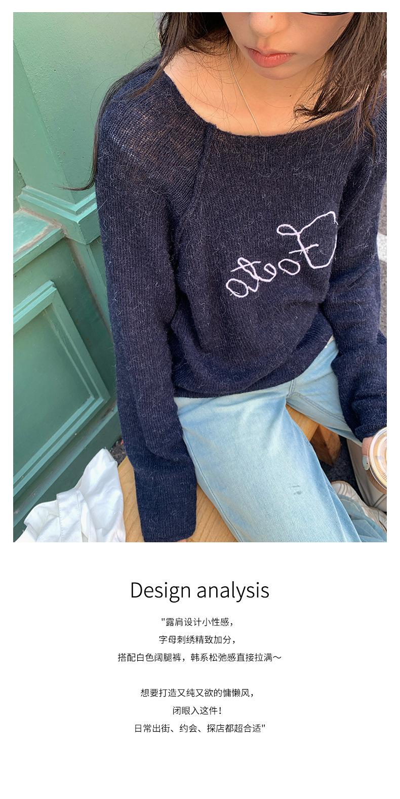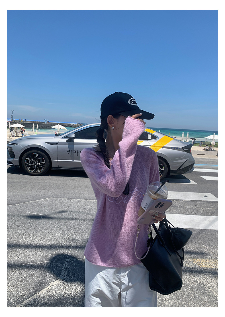 *o-ha-you*【FHZH1EE5030053】韓系慵懶字母刺繡純色長袖毛織衫秋季休閒百搭修身上衣-4色