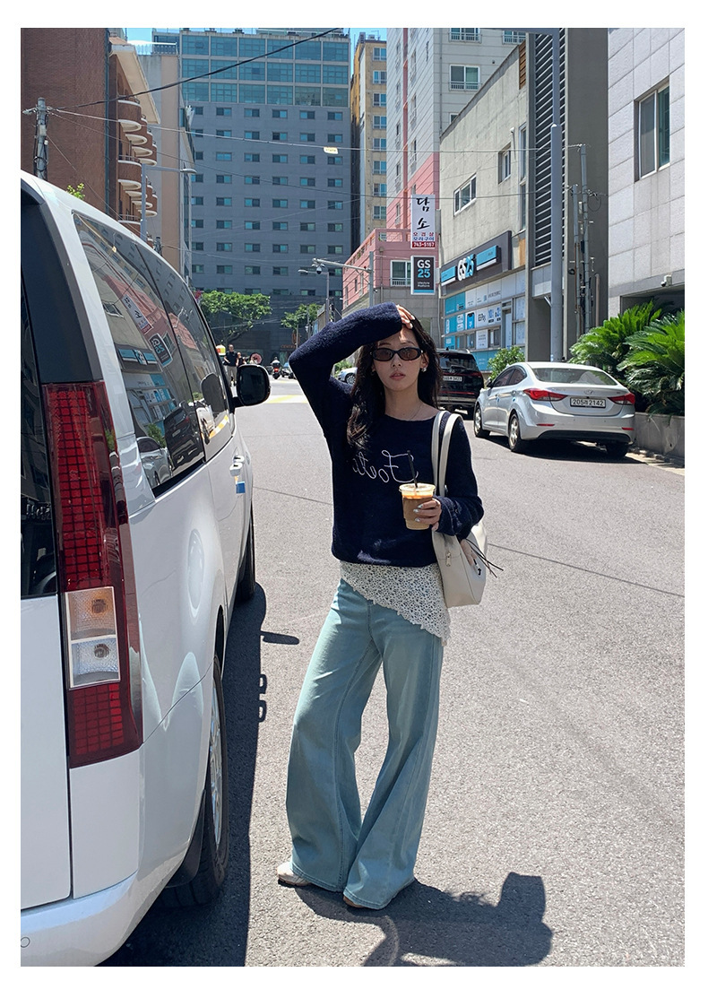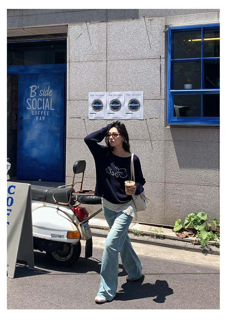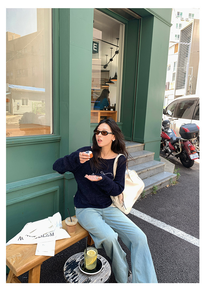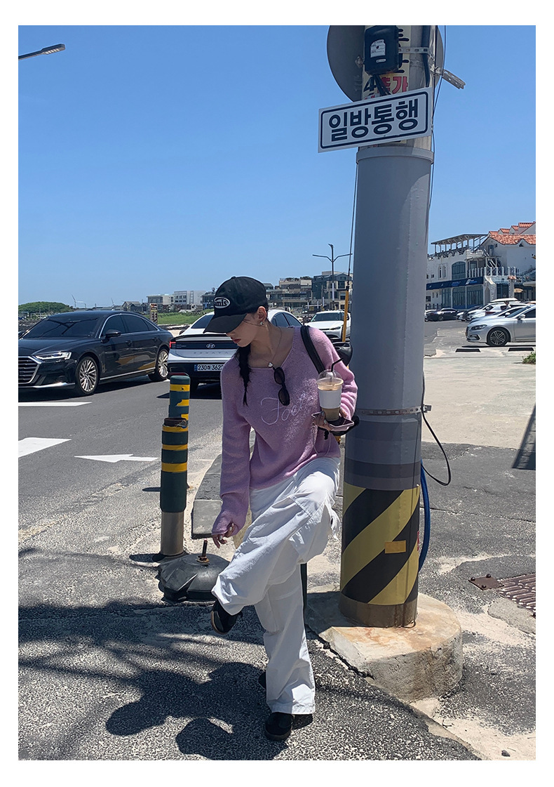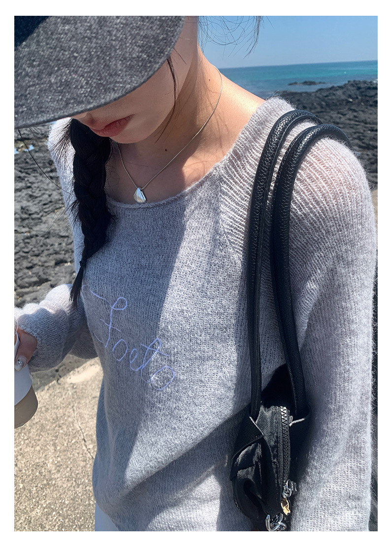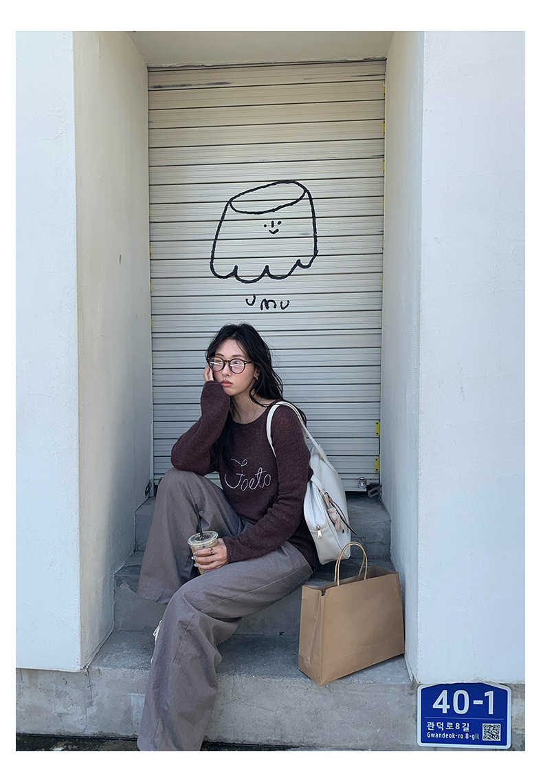 *o-ha-you*【FHZH1EE5030053】韓系慵懶字母刺繡純色長袖毛織衫秋季休閒百搭修身上衣-4色