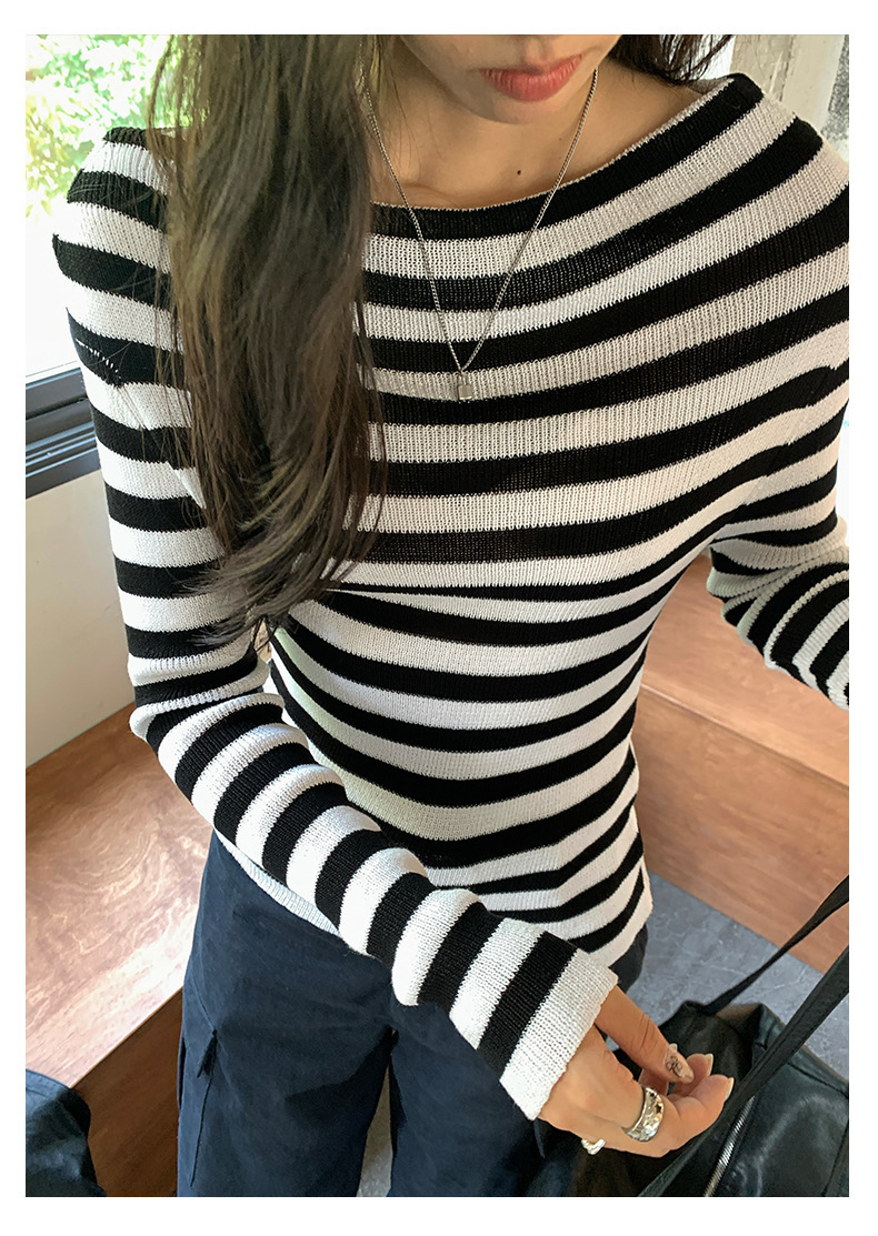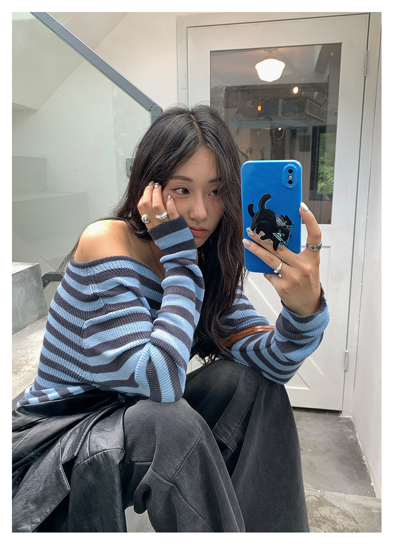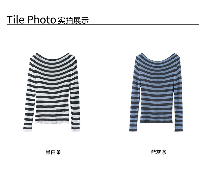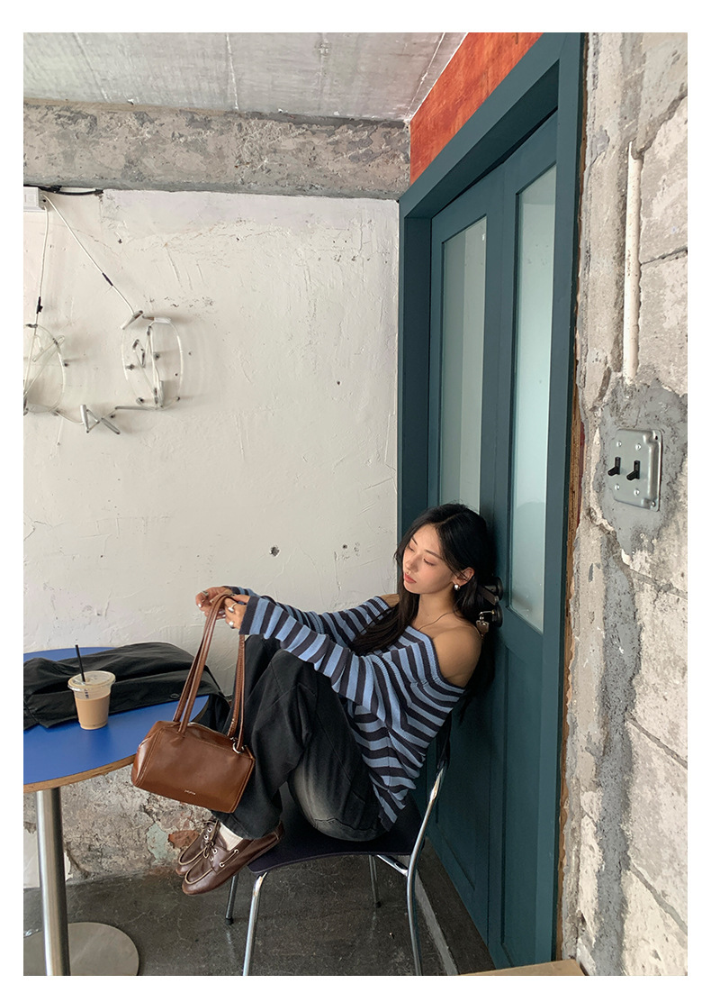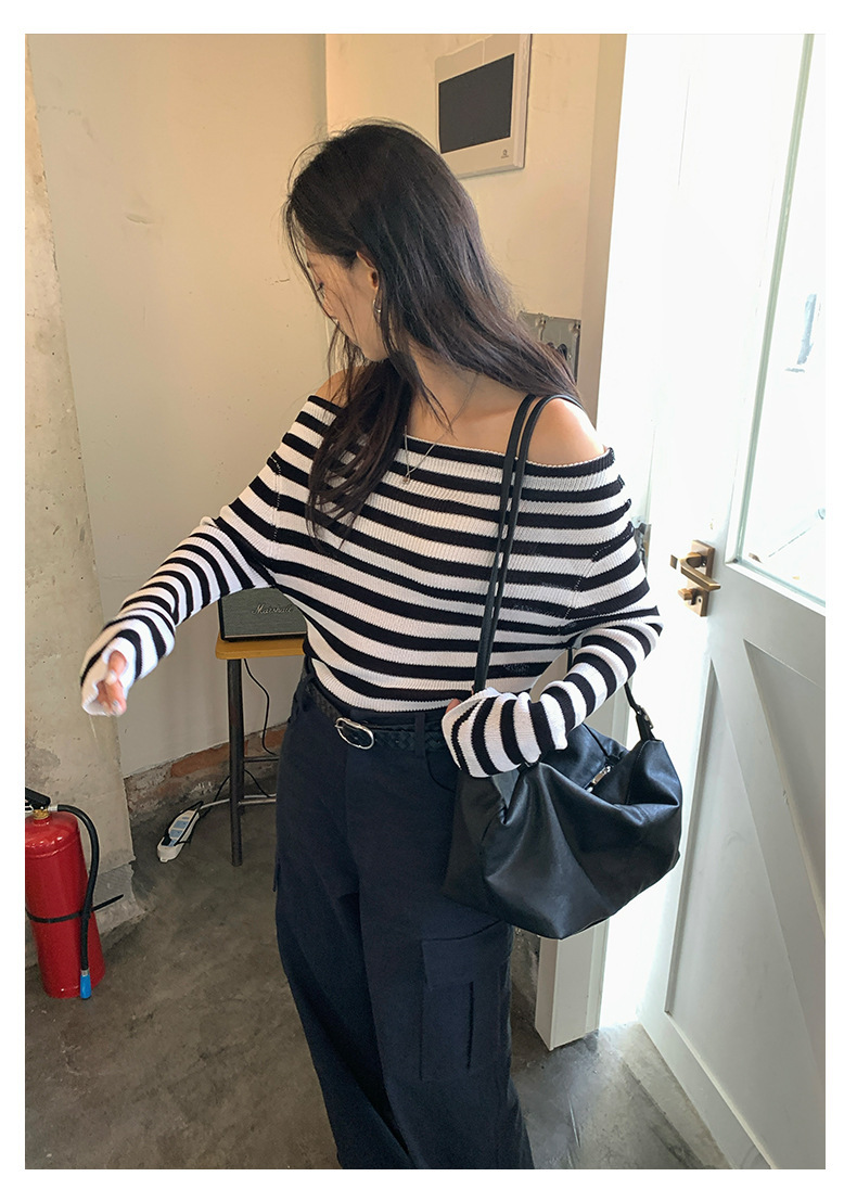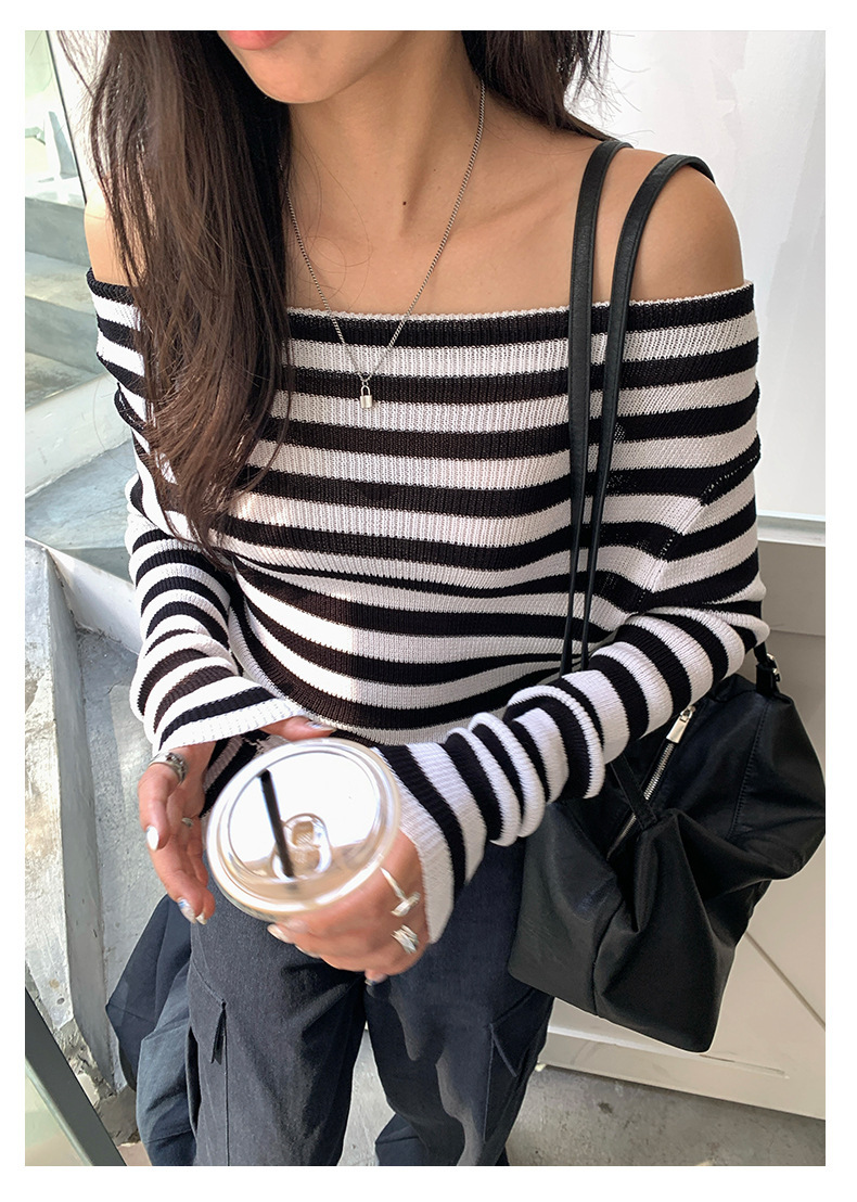 *o-ha-you*【FHZH1EE5030063】韓系簡約氣質撞色條紋一字領露肩修身針織休閒上衣-2色