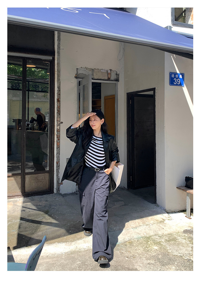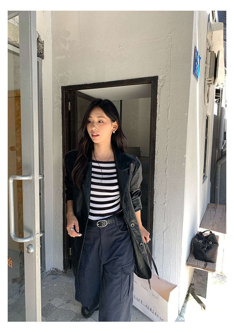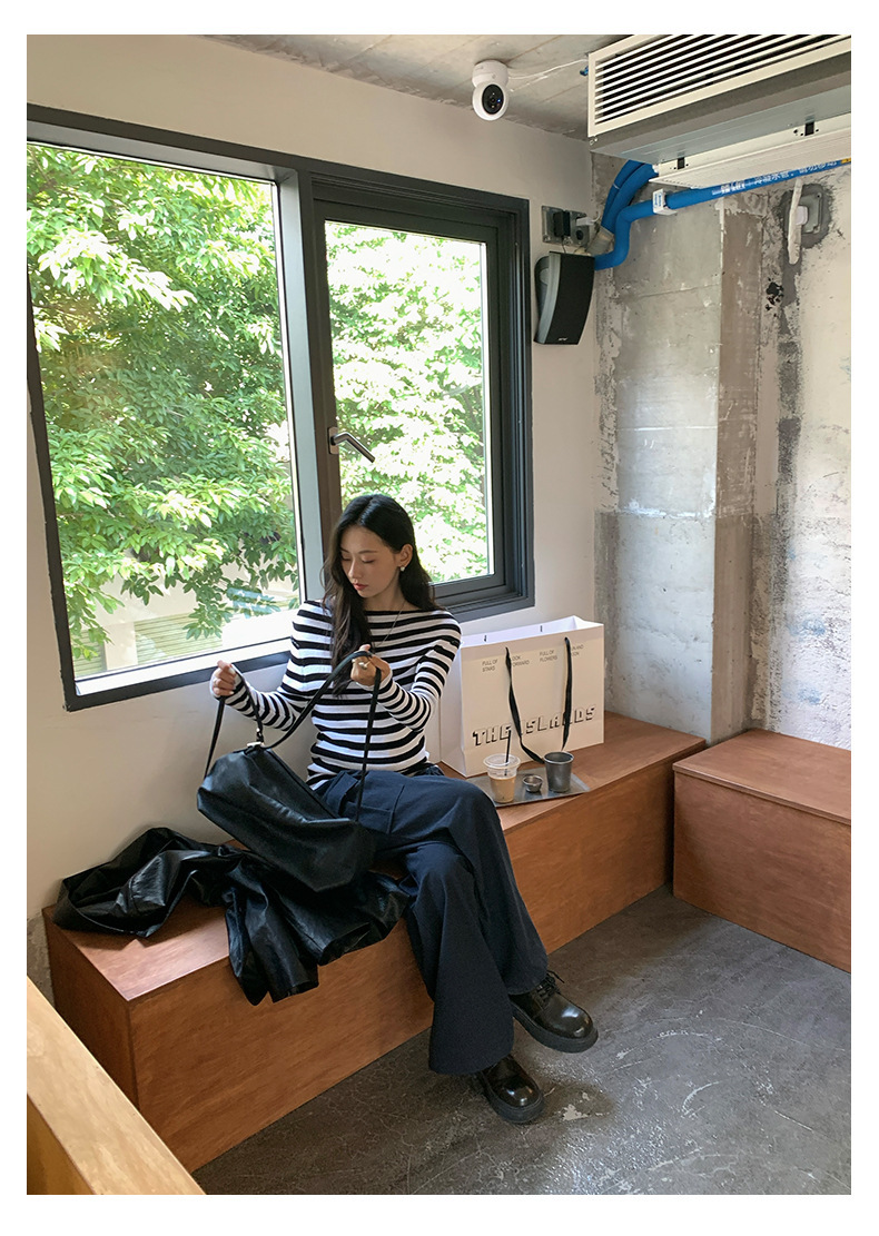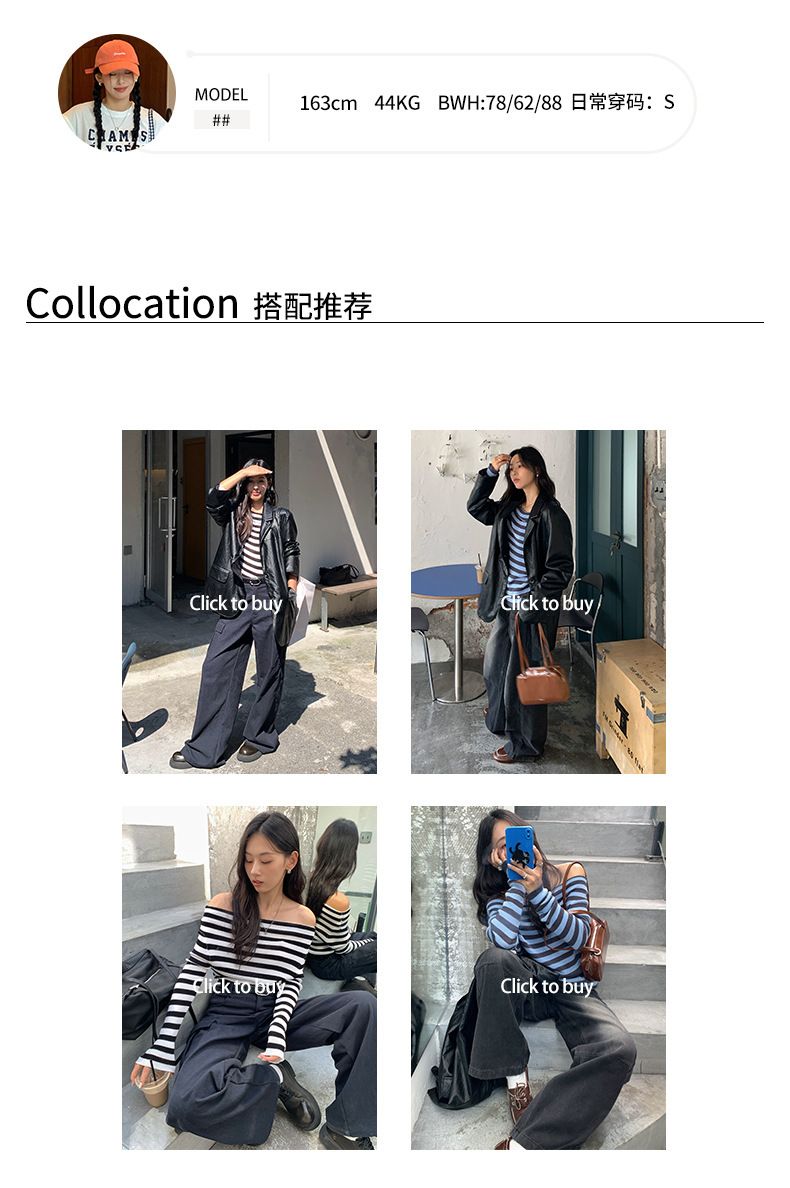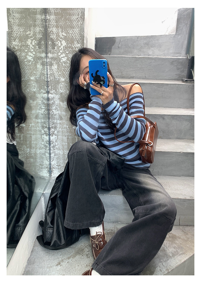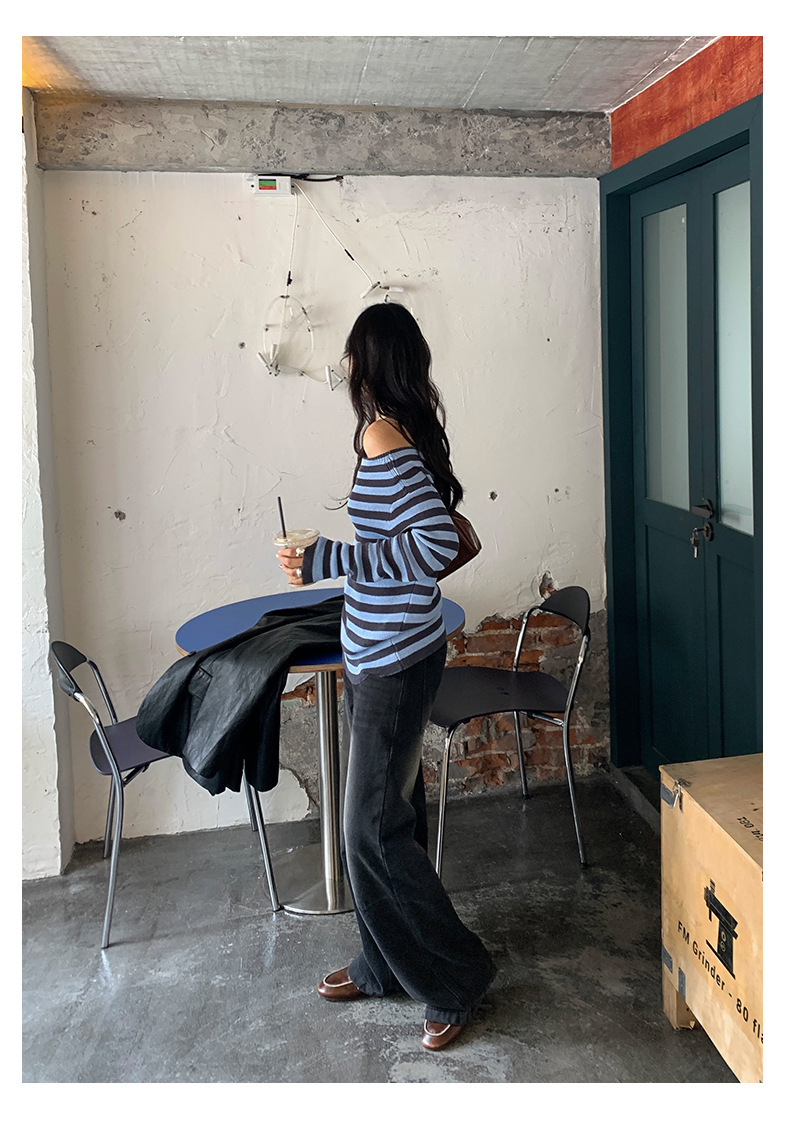 *o-ha-you*【FHZH1EE5030063】韓系簡約氣質撞色條紋一字領露肩修身針織休閒上衣-2色