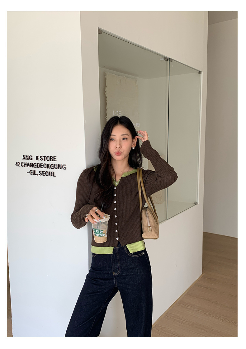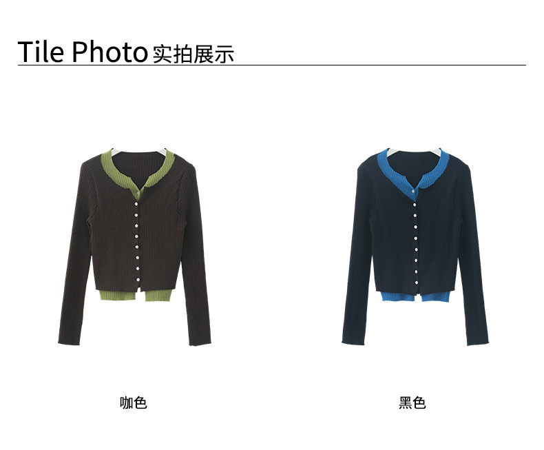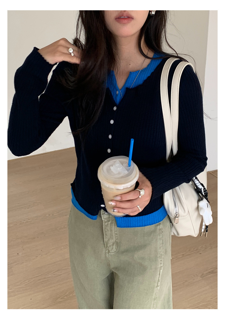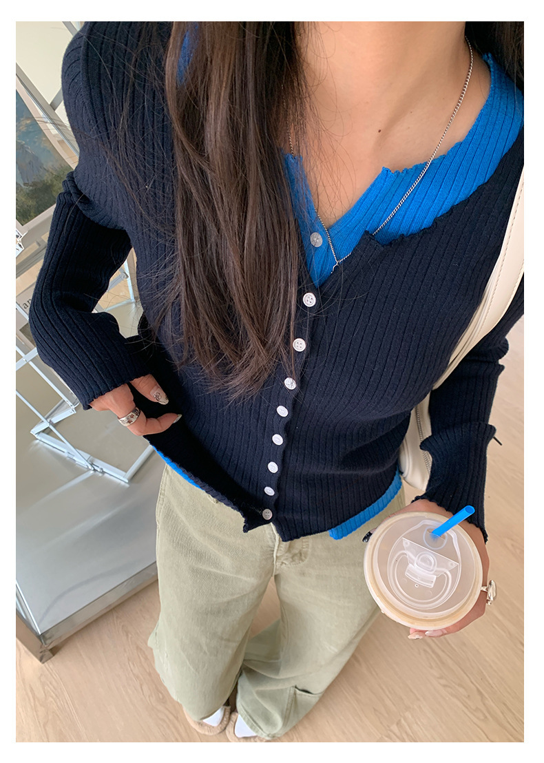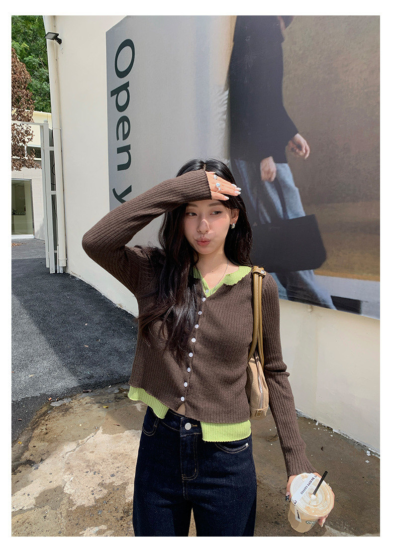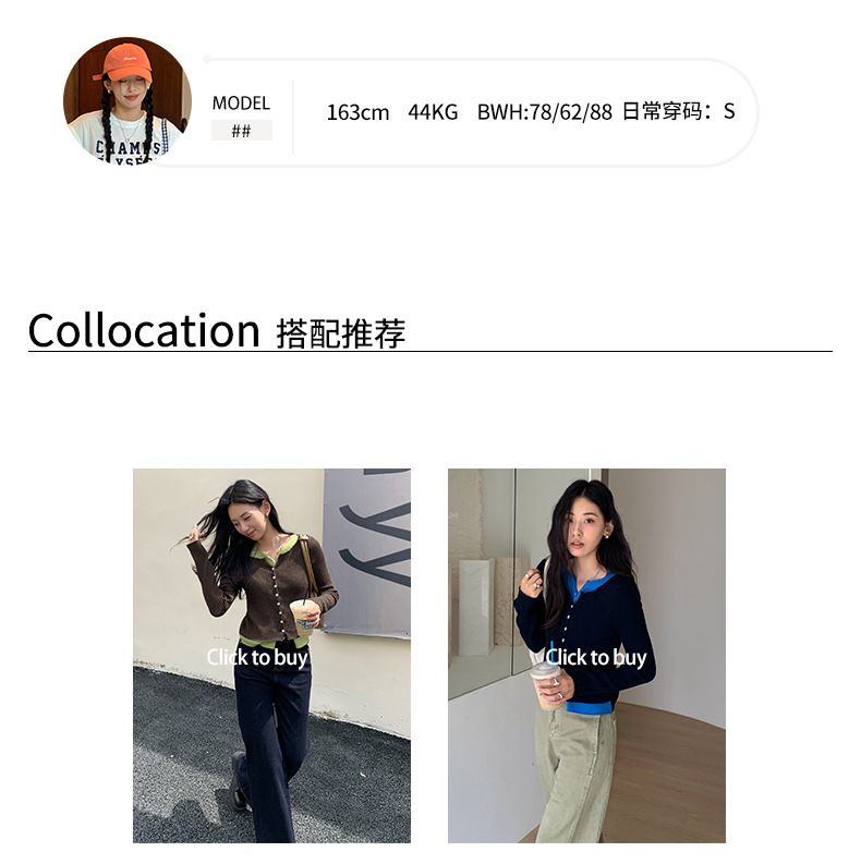*o-ha-you*【FHZH1EE5030074】小個子假兩件拼色針織開襟衫2025秋季韓系修身顯瘦毛衣-2色
