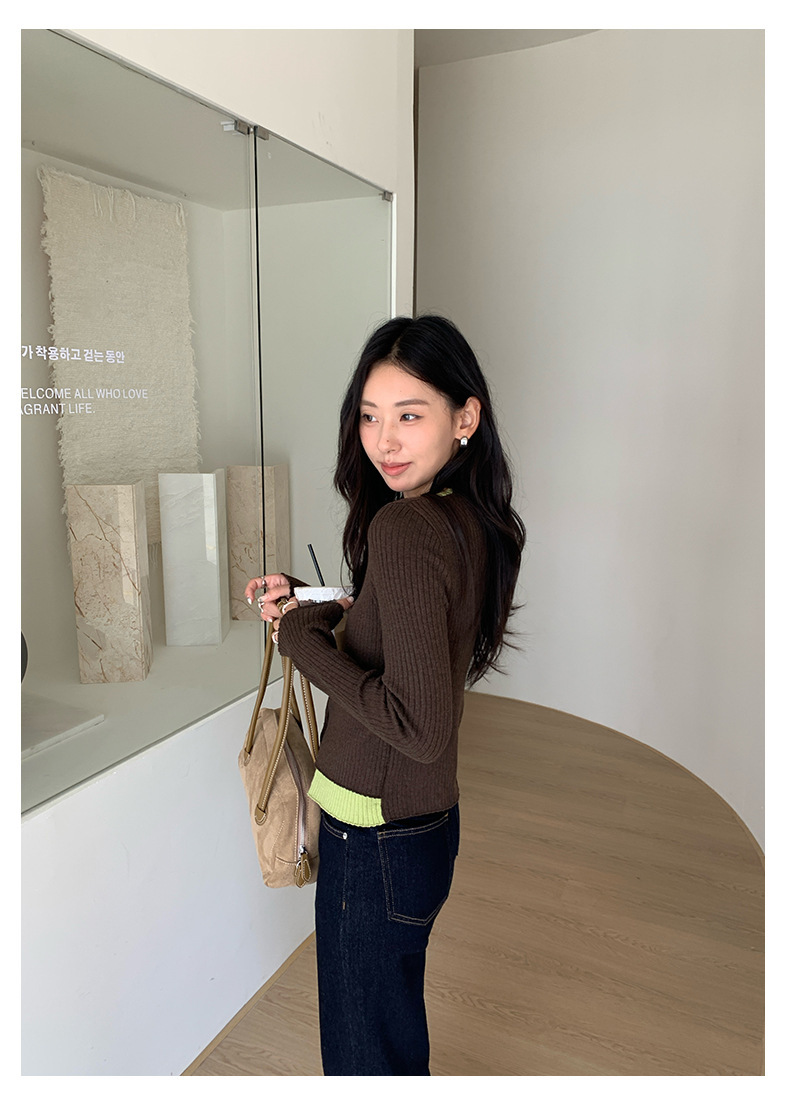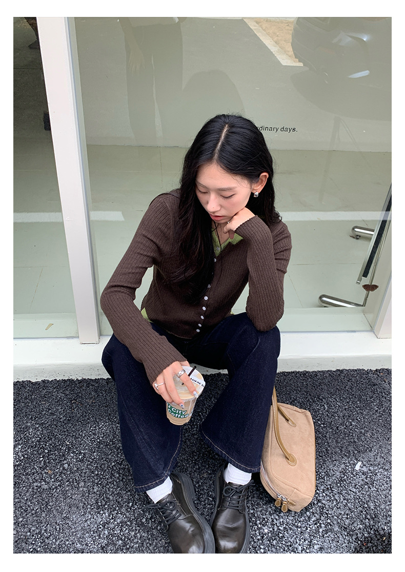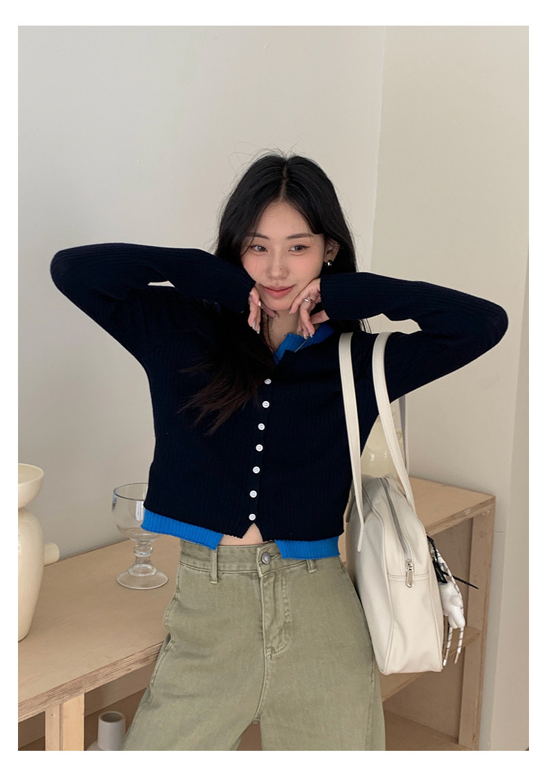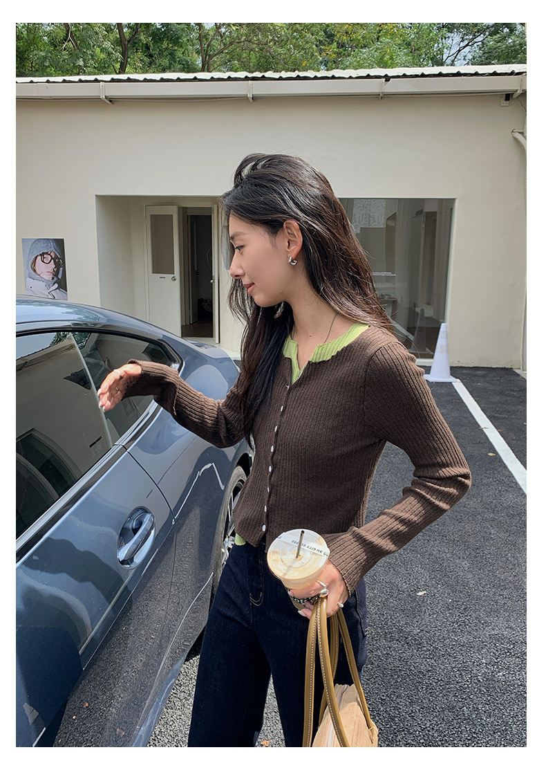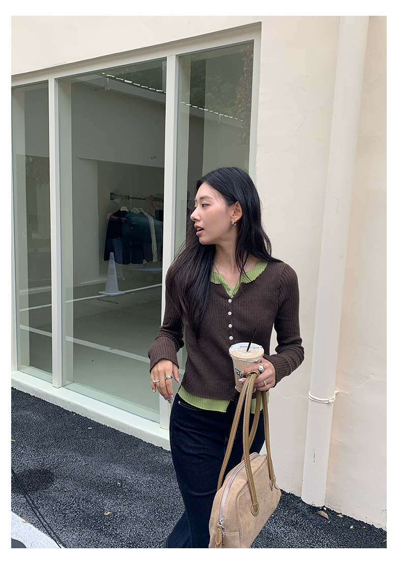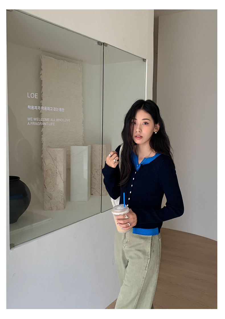 *o-ha-you*【FHZH1EE5030074】小個子假兩件拼色針織開襟衫2025秋季韓系修身顯瘦毛衣-2色