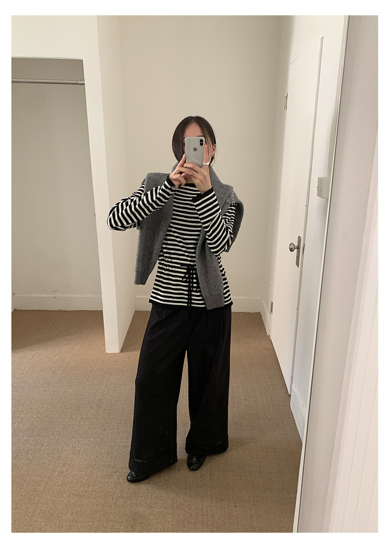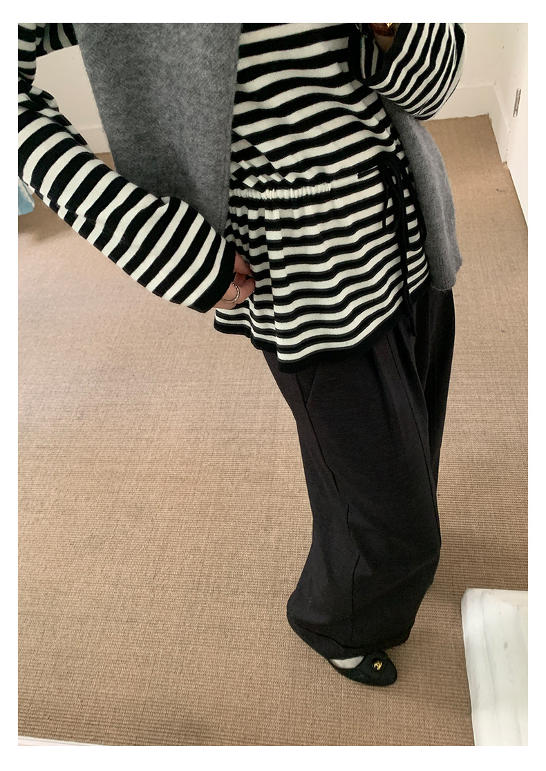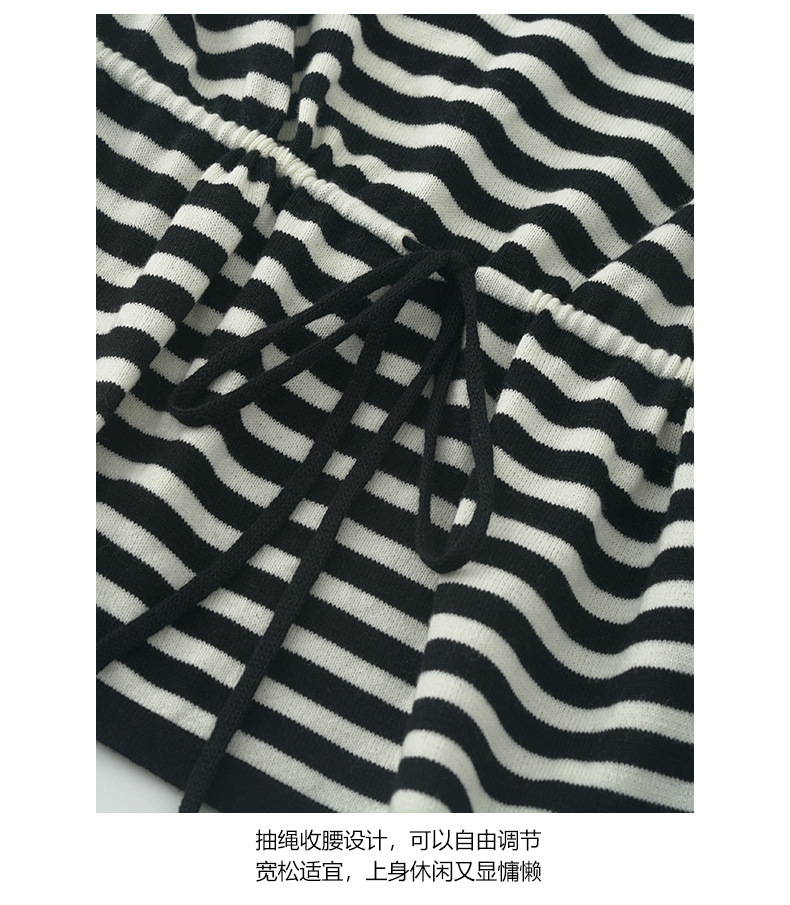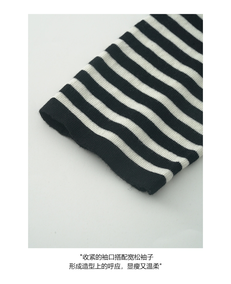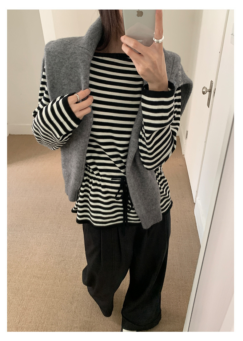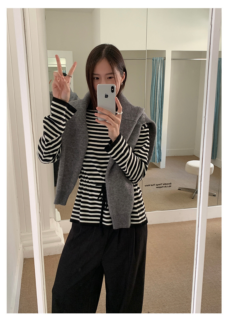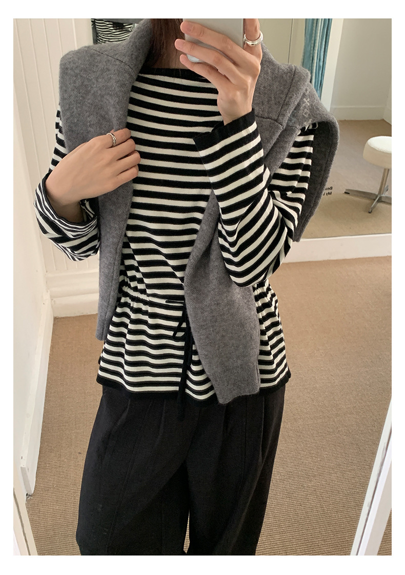 *o-ha-you*【FHZH1EE5041003】慵懶風繫帶收腰露肩條紋針織衫女2025冬顯瘦打底衫上衣