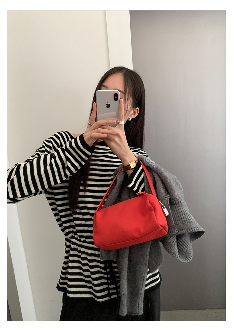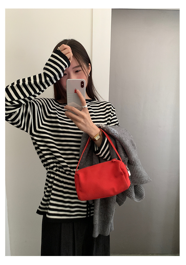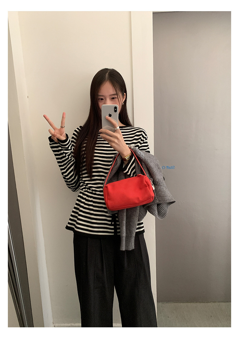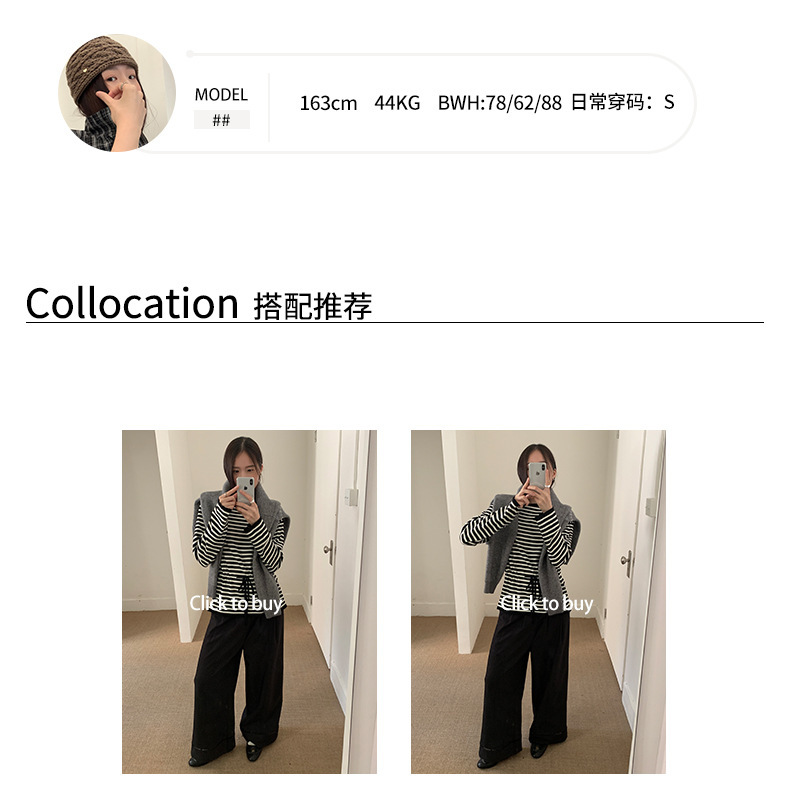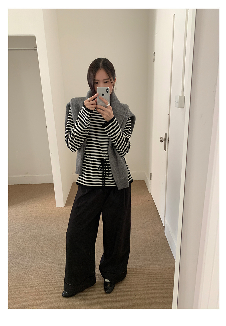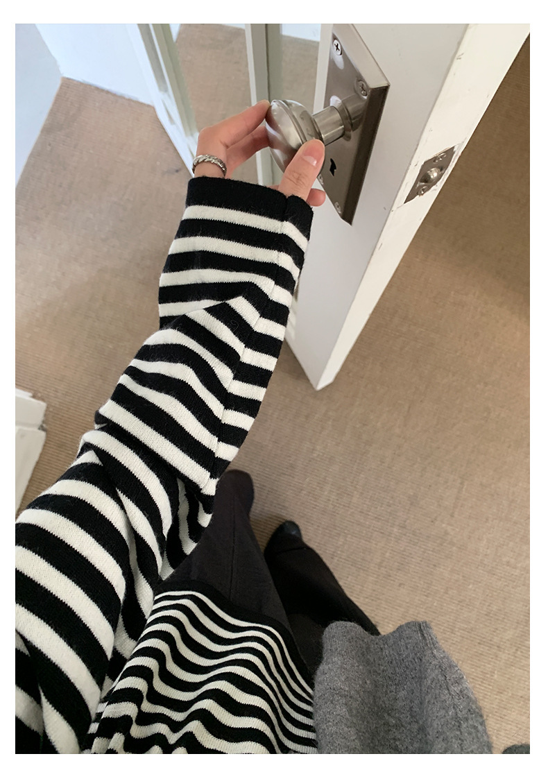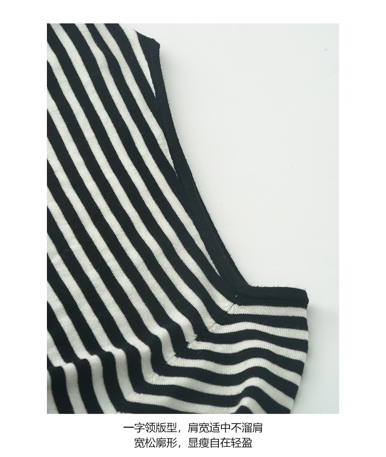 *o-ha-you*【FHZH1EE5041003】慵懶風繫帶收腰露肩條紋針織衫女2025冬顯瘦打底衫上衣