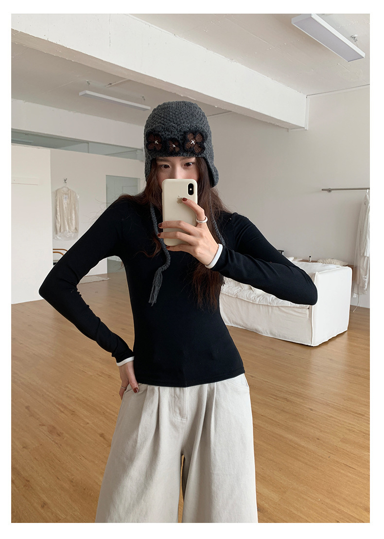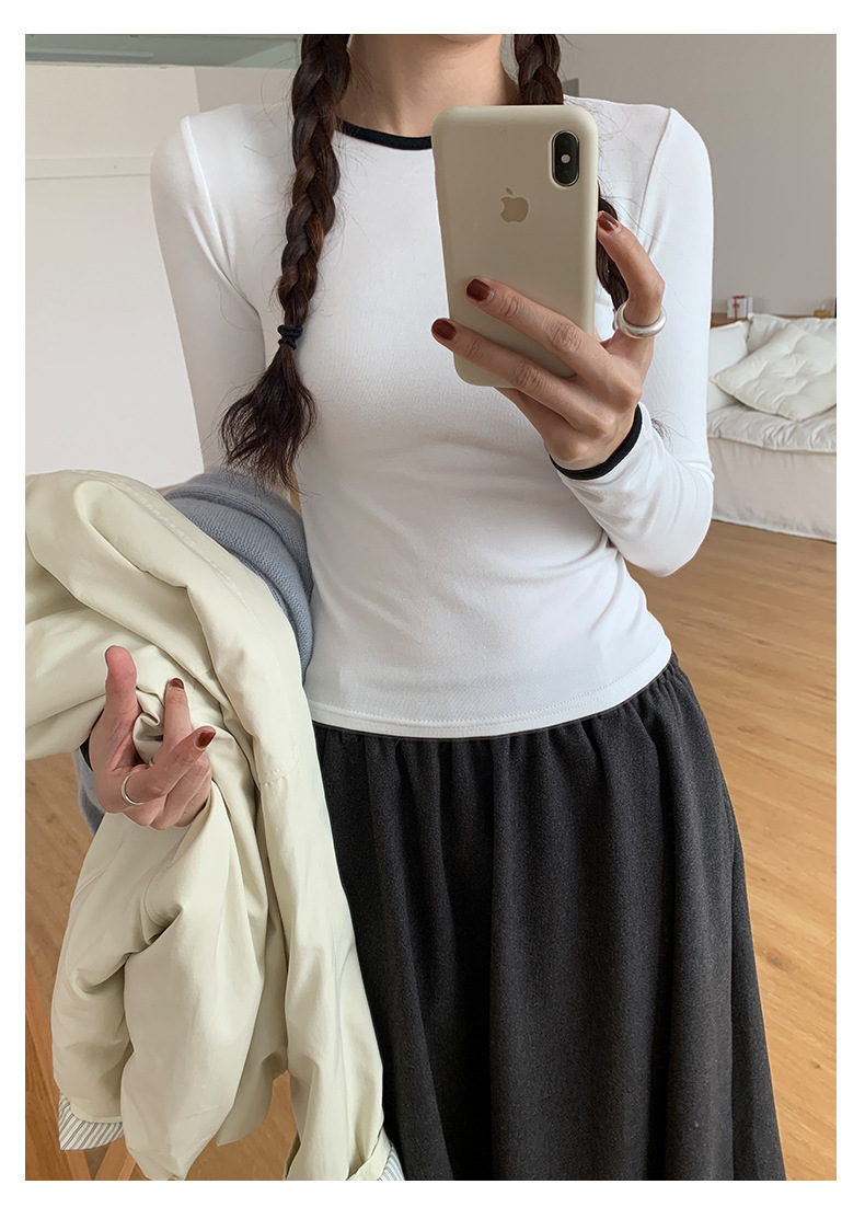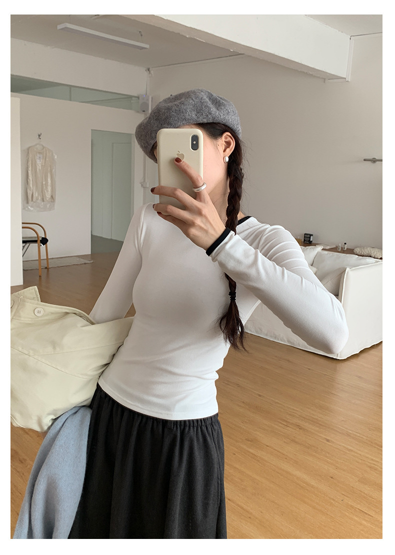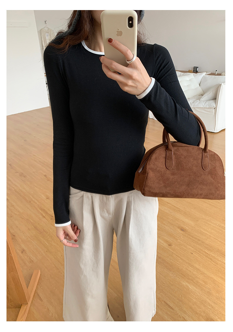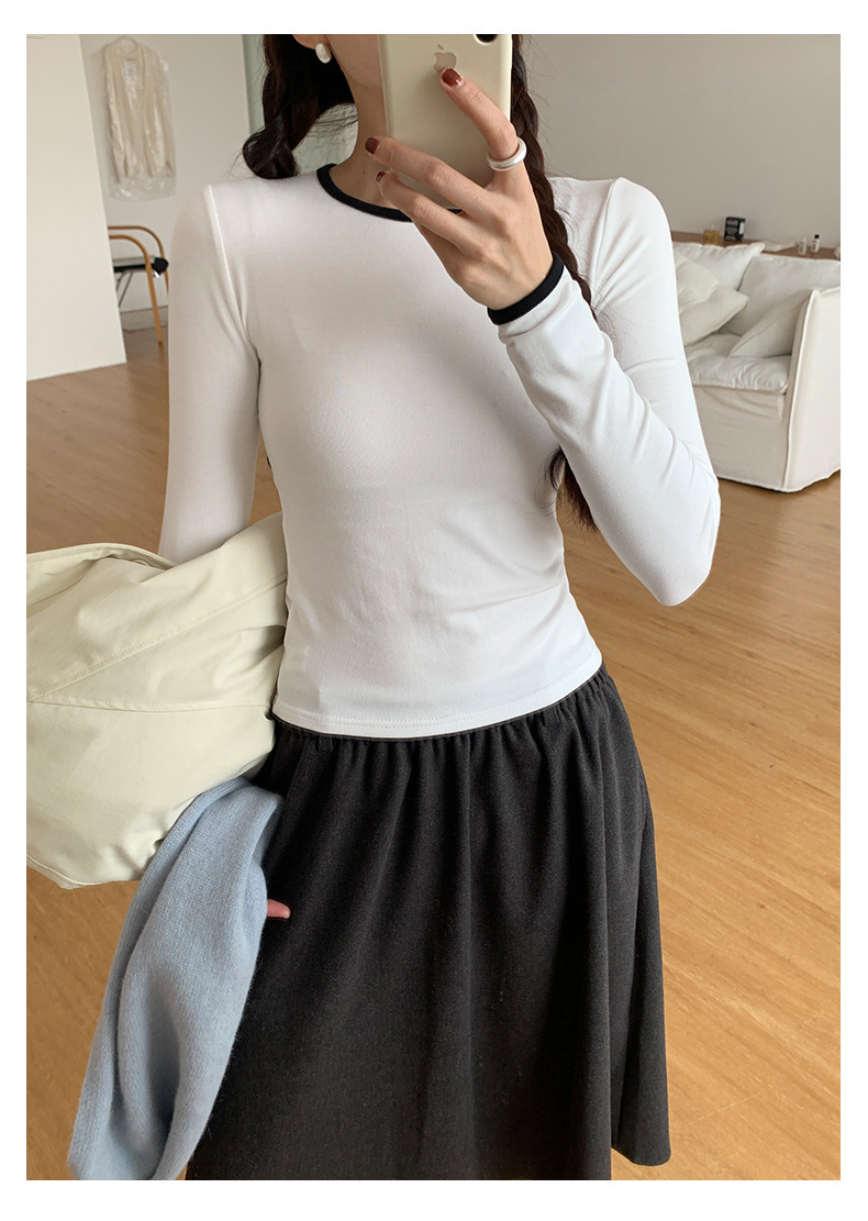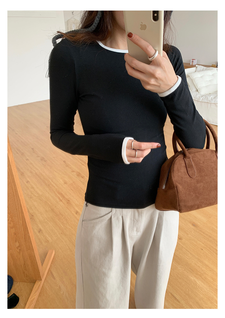 *o-ha-you*【FHZH1EE5041080】韓系磨毛圓領撞色內搭打底衫秋冬修身休閒長袖T恤上衣-2色
